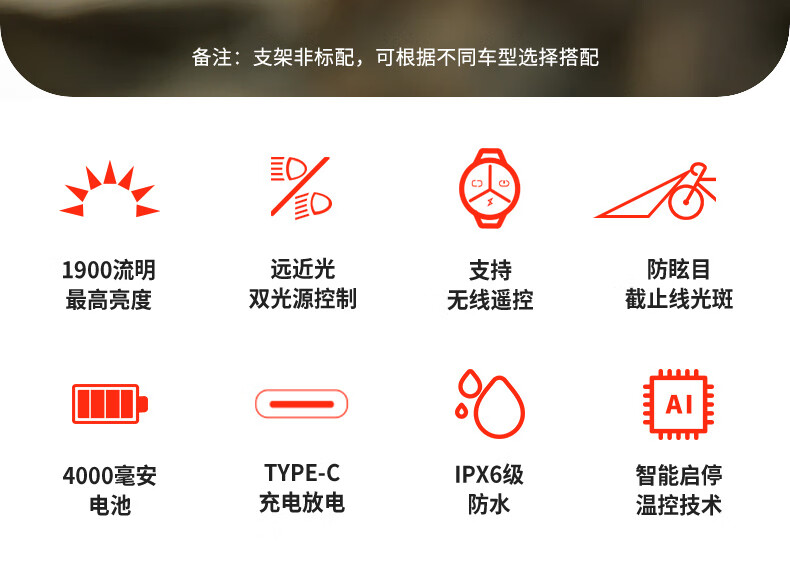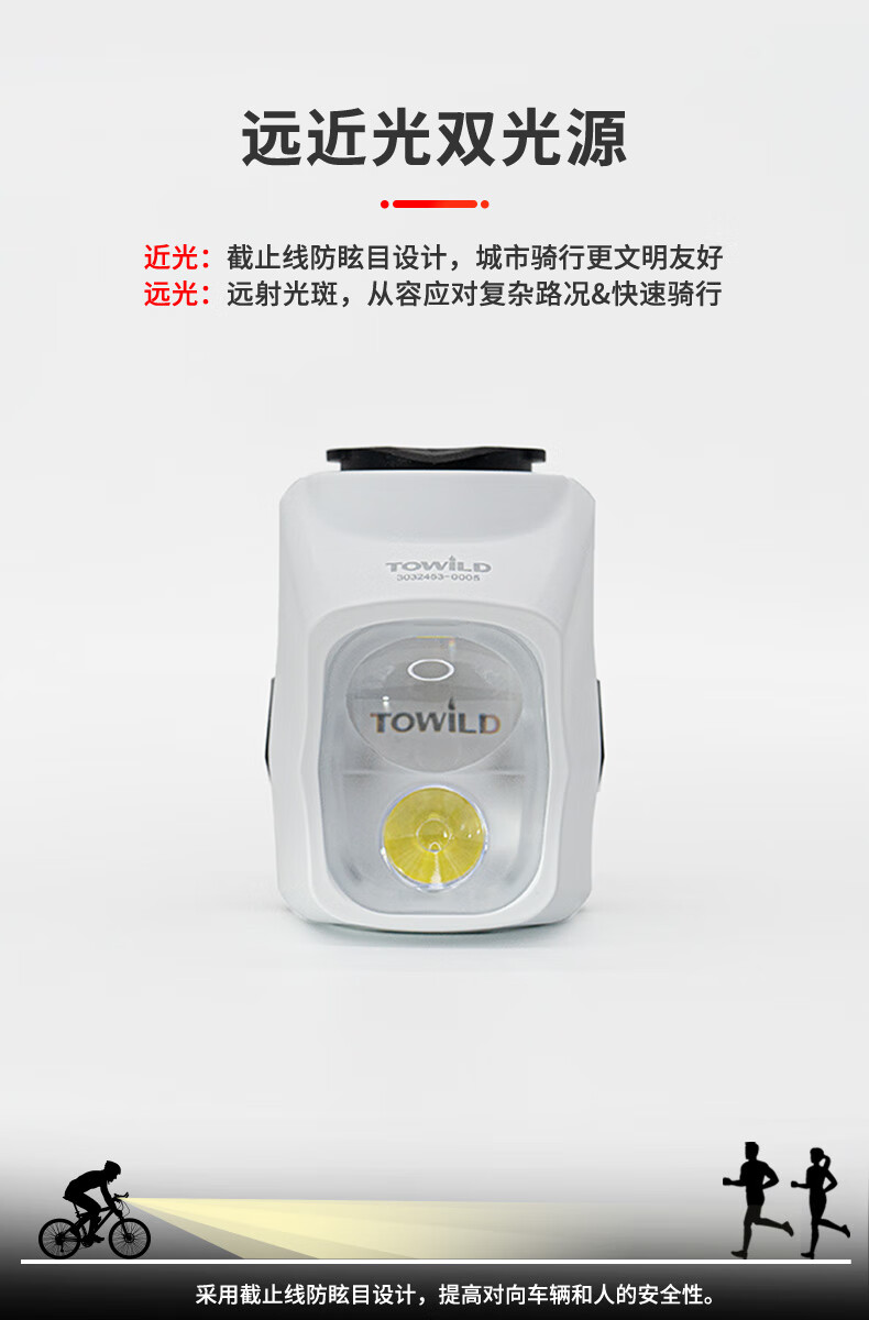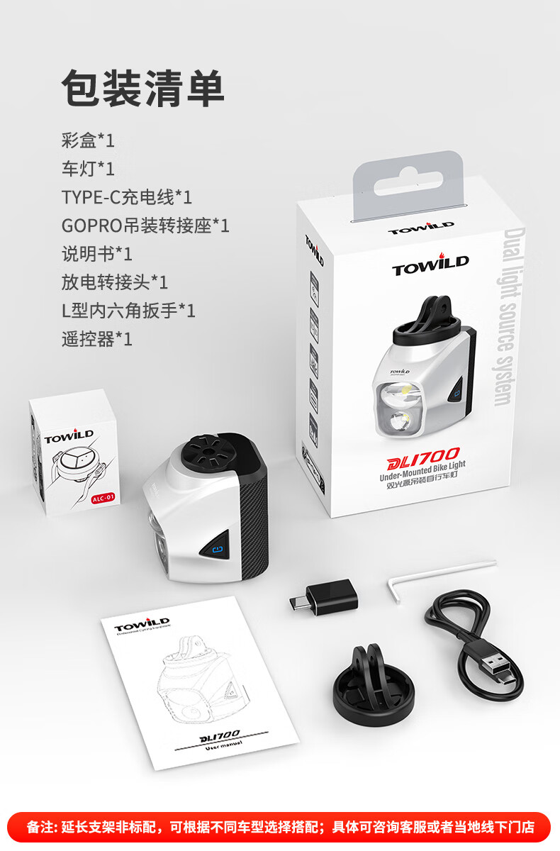 TOWILD拓野吊装截止线自行车灯夜骑公路前灯山地车防炫目DL1700 DL1700【白色】
