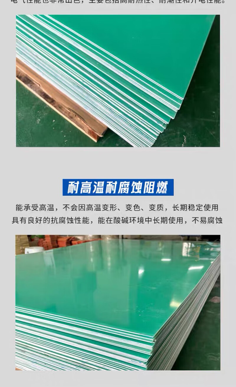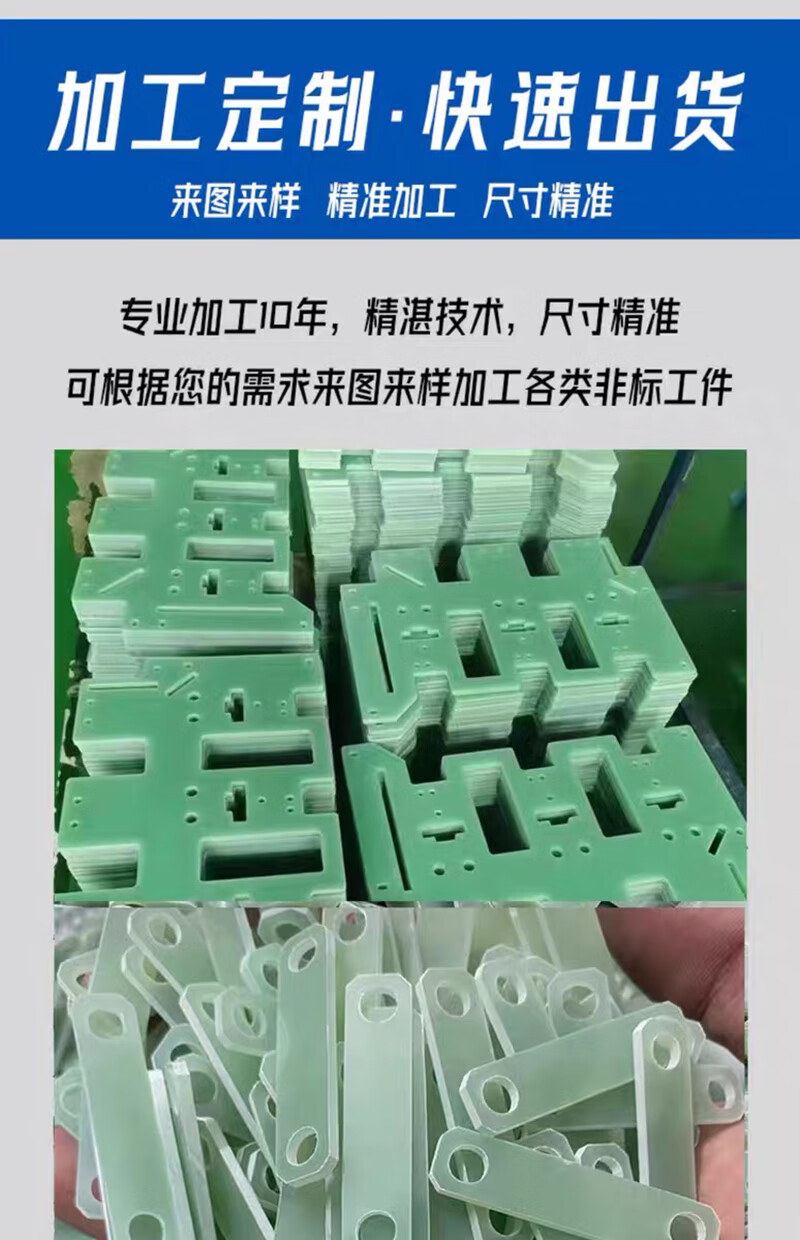 AL水绿色FR4玻纤板加工环氧树脂板G10电工绝缘板隔热黑色玻璃纤维片 水绿玻纤板500*500*10mm