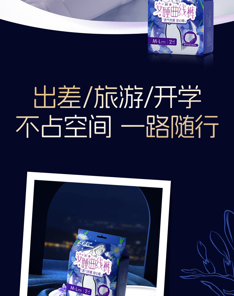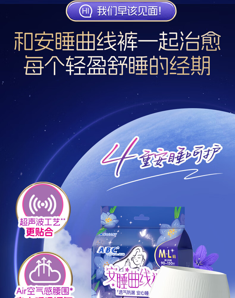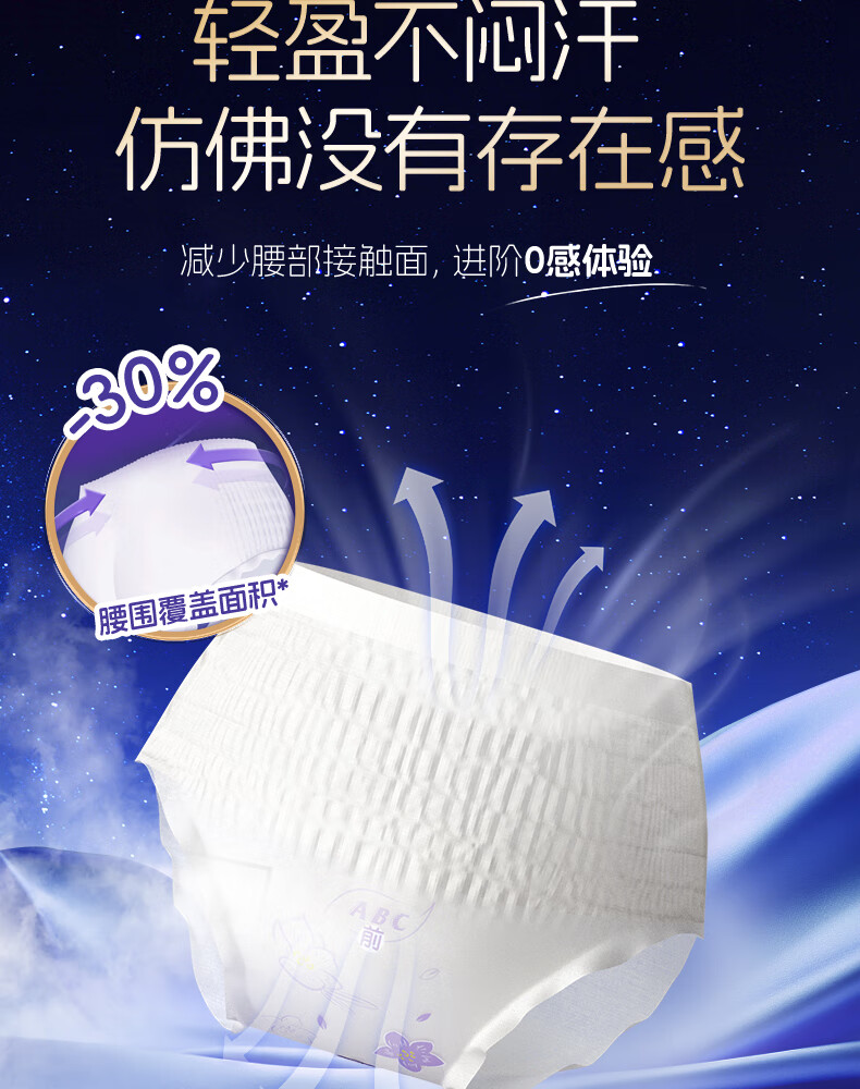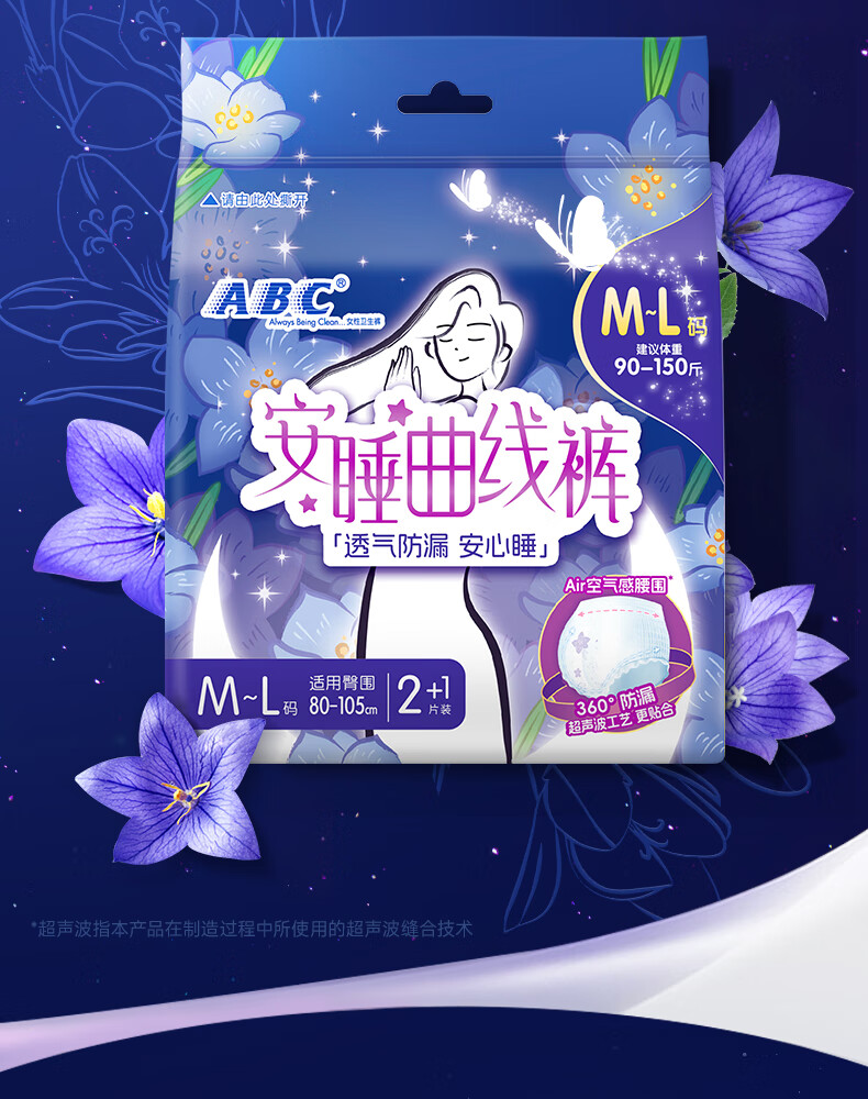 ABC安睡曲线裤透气不闷热裤型卫生巾京东自营M-L码3片