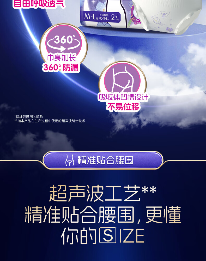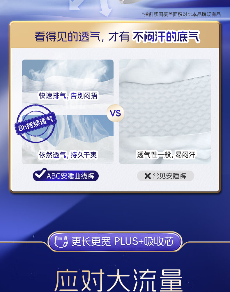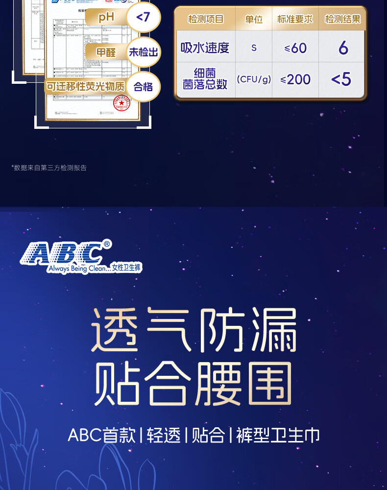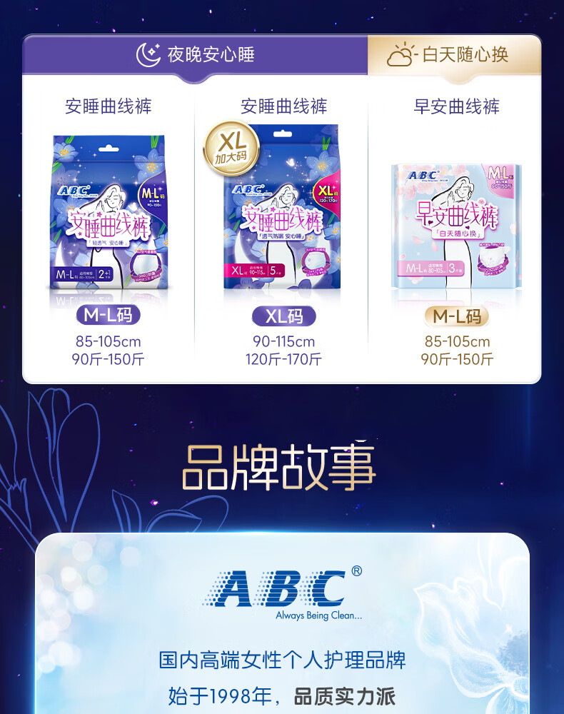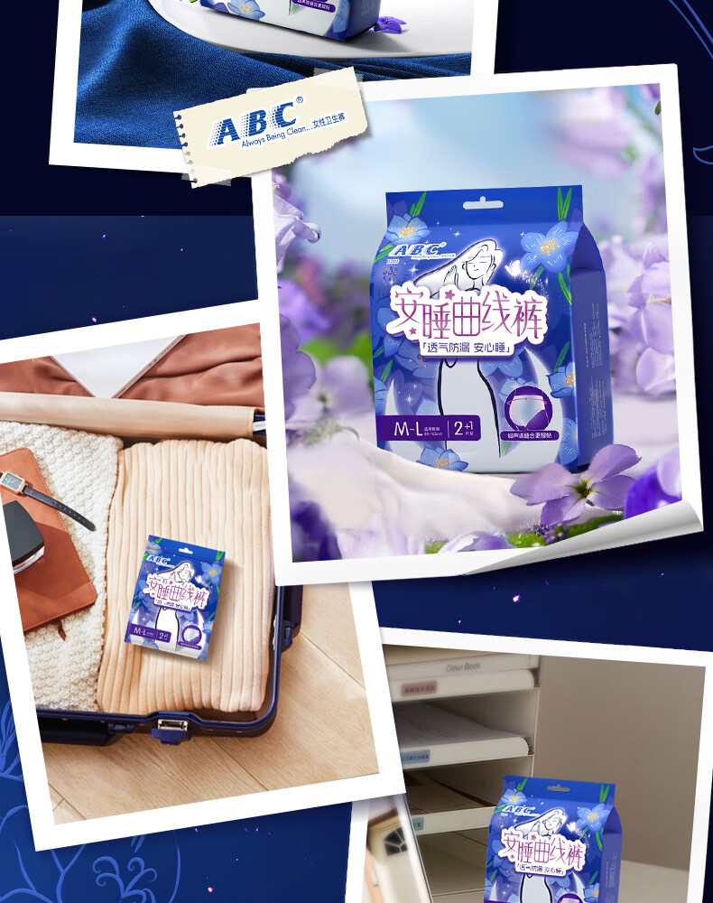 ABC安睡曲线裤透气不闷热裤型卫生巾京东自营M-L码3片