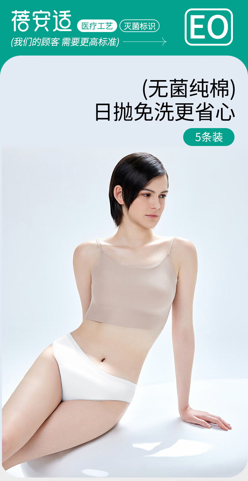 蓓安适一次性内裤女士纯棉旅行卫生免洗短裤独立包装女白五条装 XL号