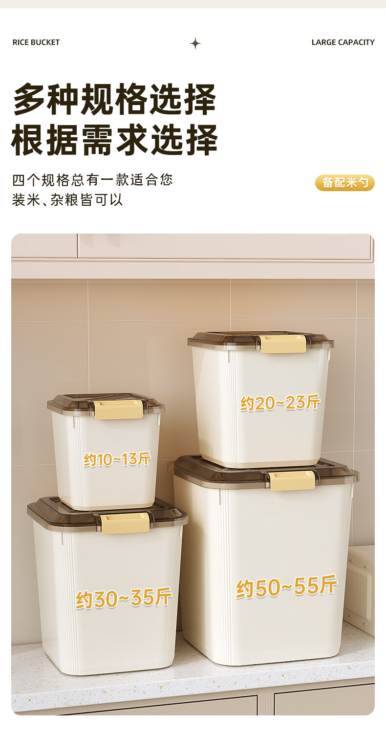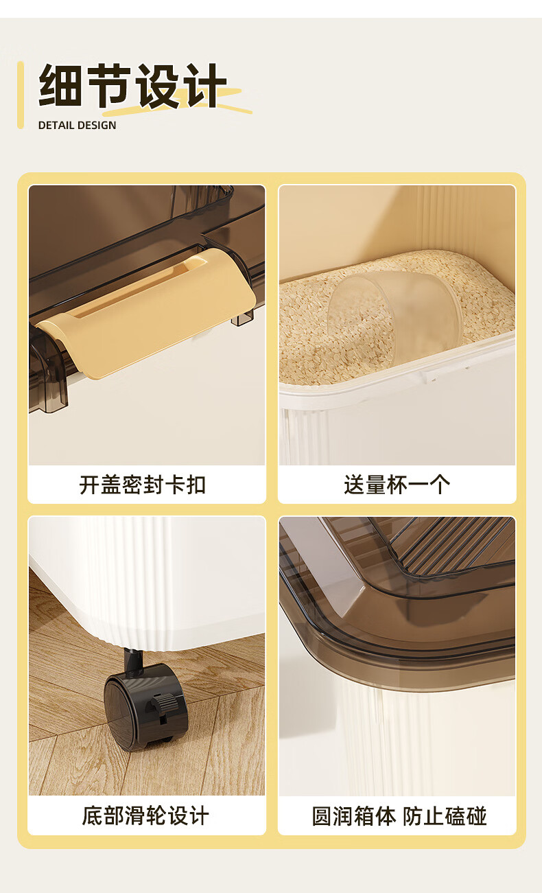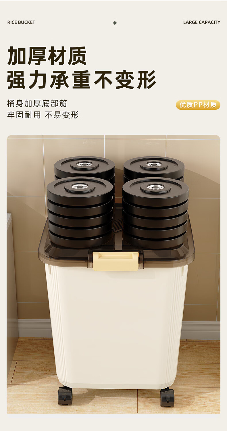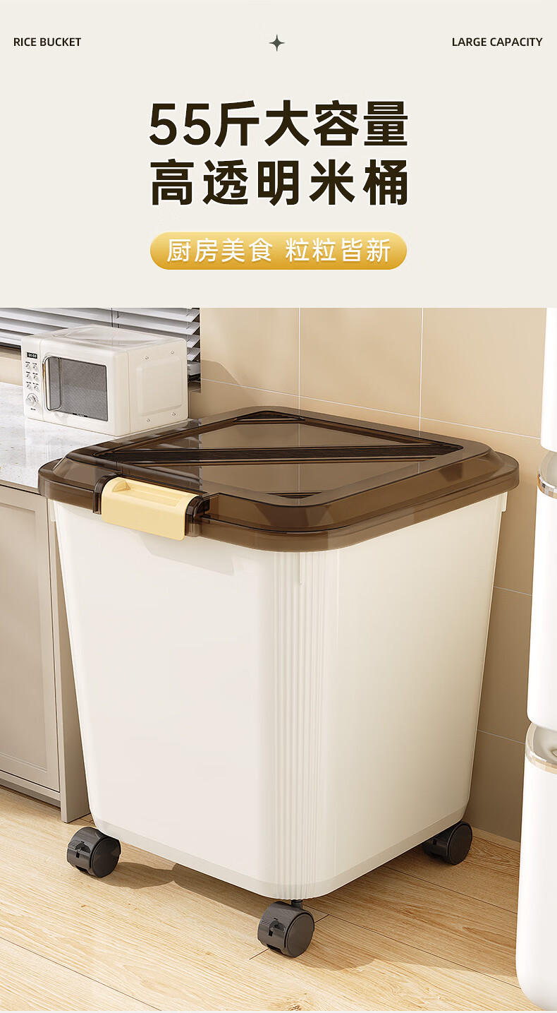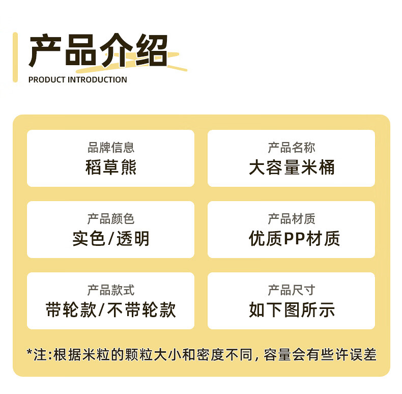 稻草熊厨房带盖桌面收纳盒米桶大米面粉五谷杂粮桶玩具小物件杂物收纳箱 不带轮-13斤