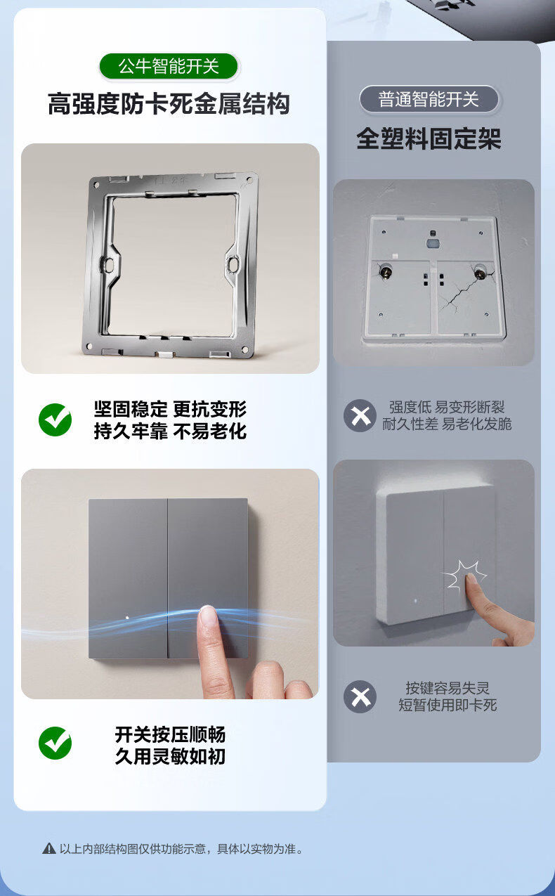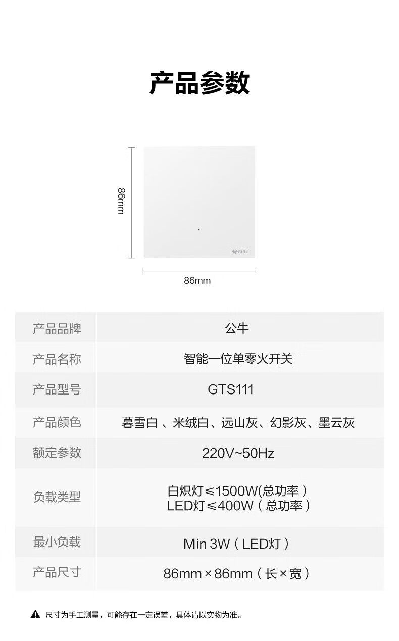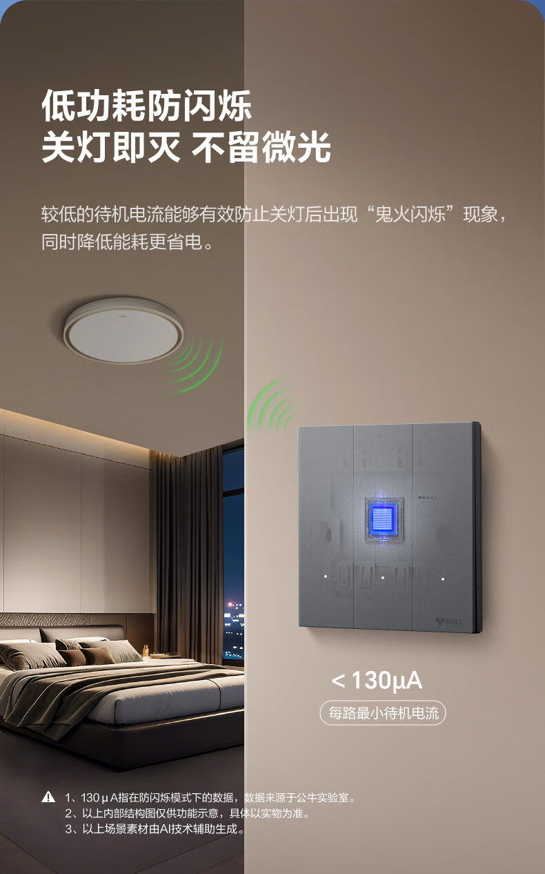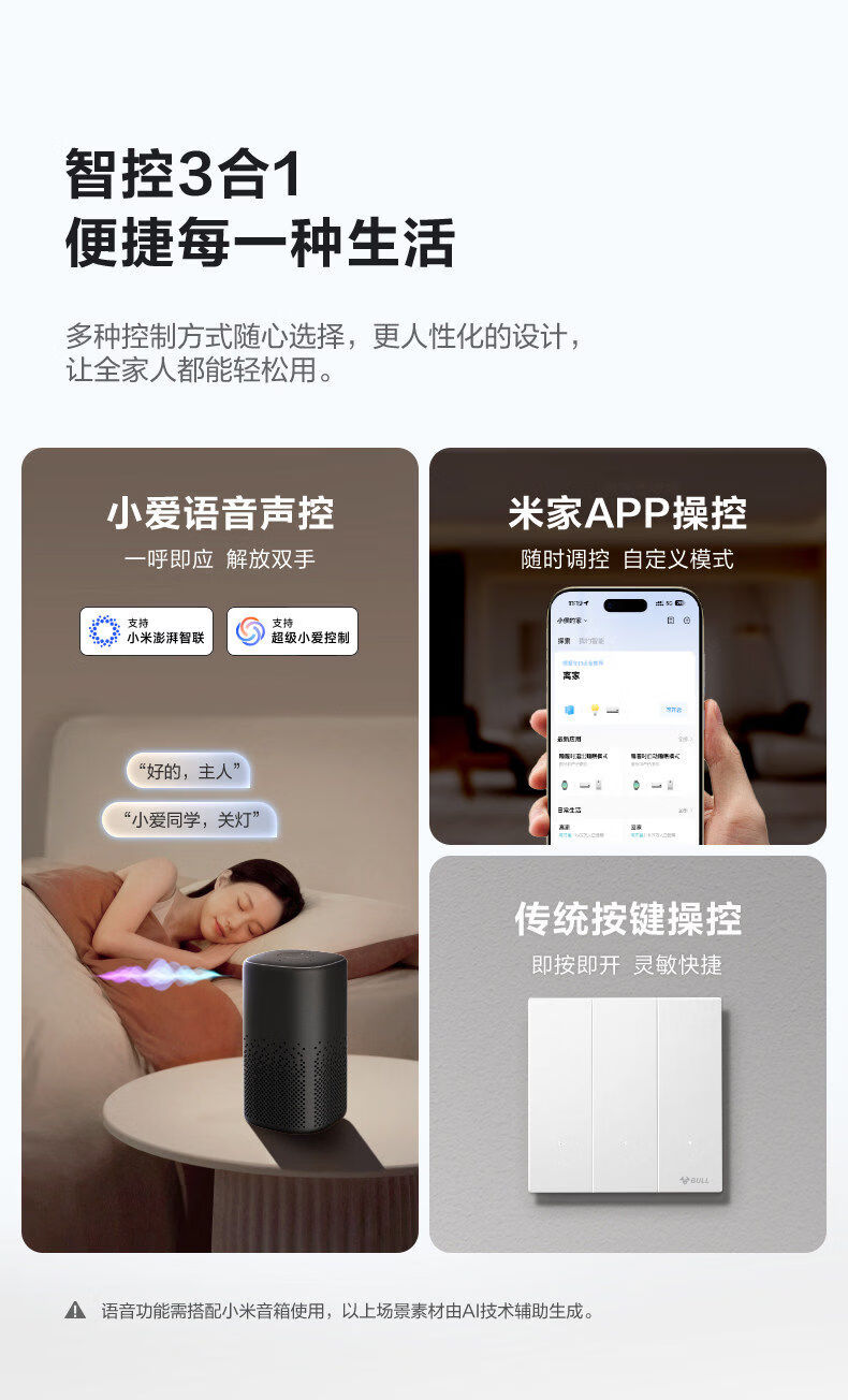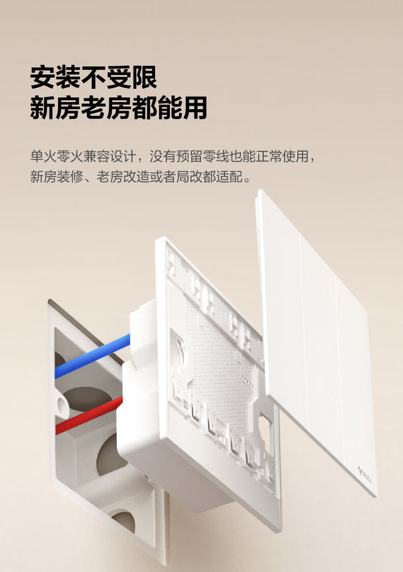 公牛(BULL)灵犀超薄智能开关单零火兼容开关控制器已接入米家APP 【零火版】智能一开 米绒白