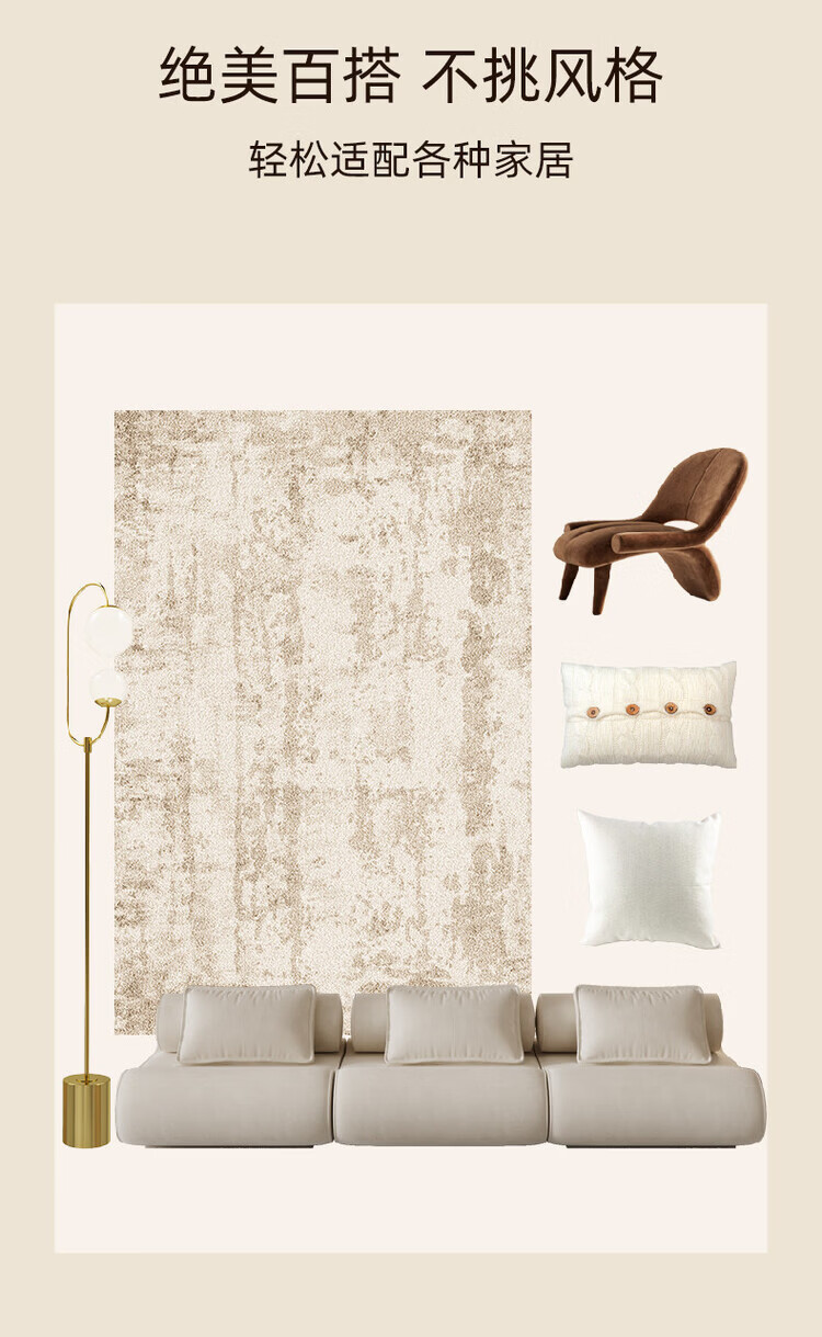 Y U-LIVE地毯客厅侘寂风2026新款轻奢高级全铺大面积免洗可擦沙发卧室 S仿羊绒-逐浪 200*300CM【客厅优选尺寸】