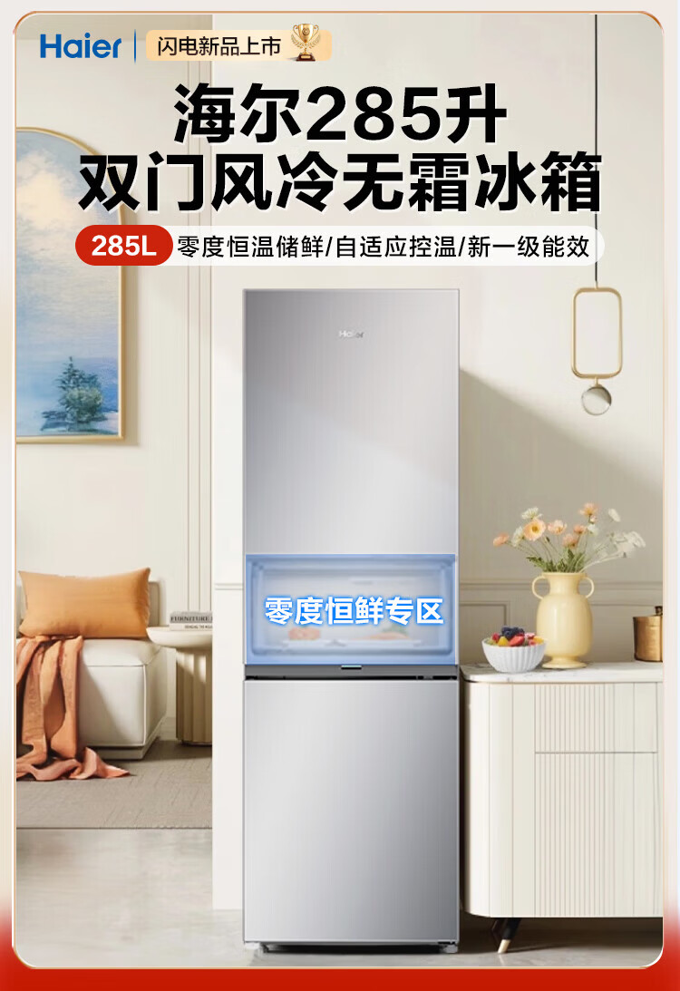 海尔冰箱285升两门双开门冰箱风冷无霜一级能效家用电冰箱零度恒鲜左右换开门以旧换新 风冷无霜+零度保鲜