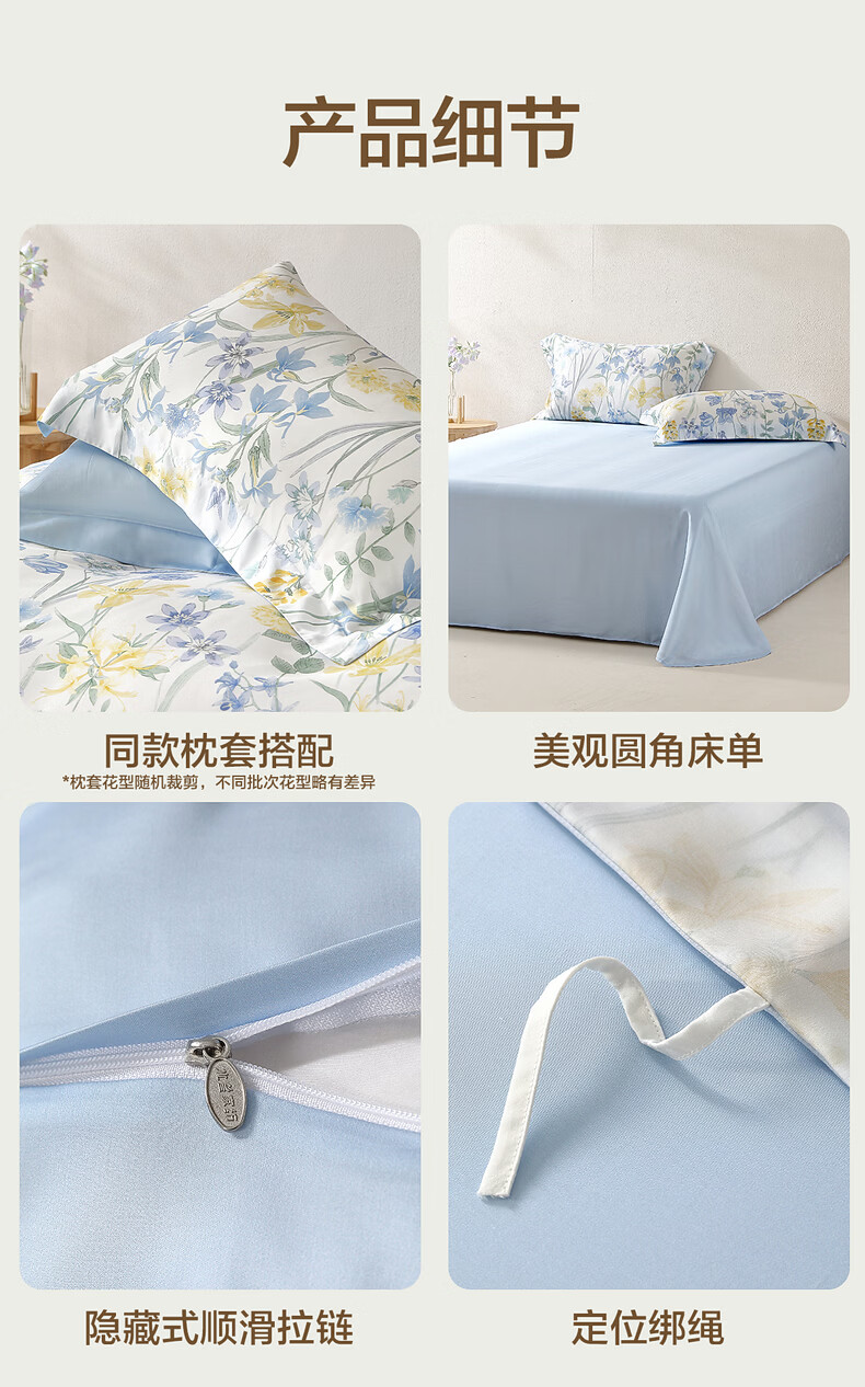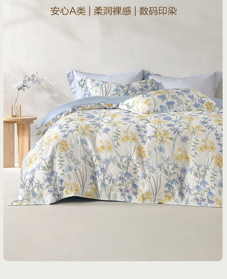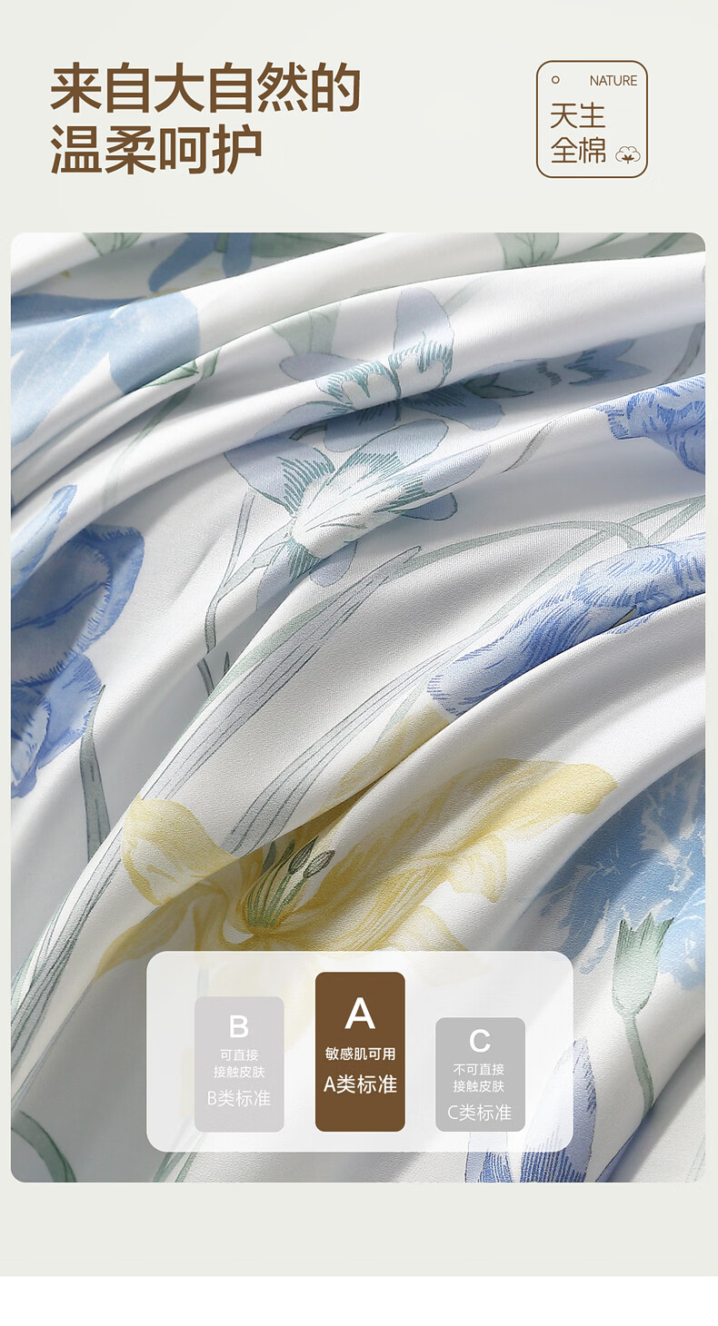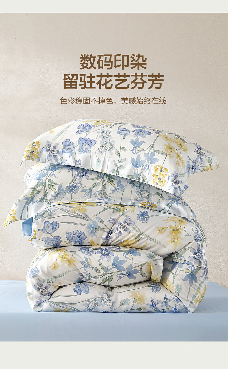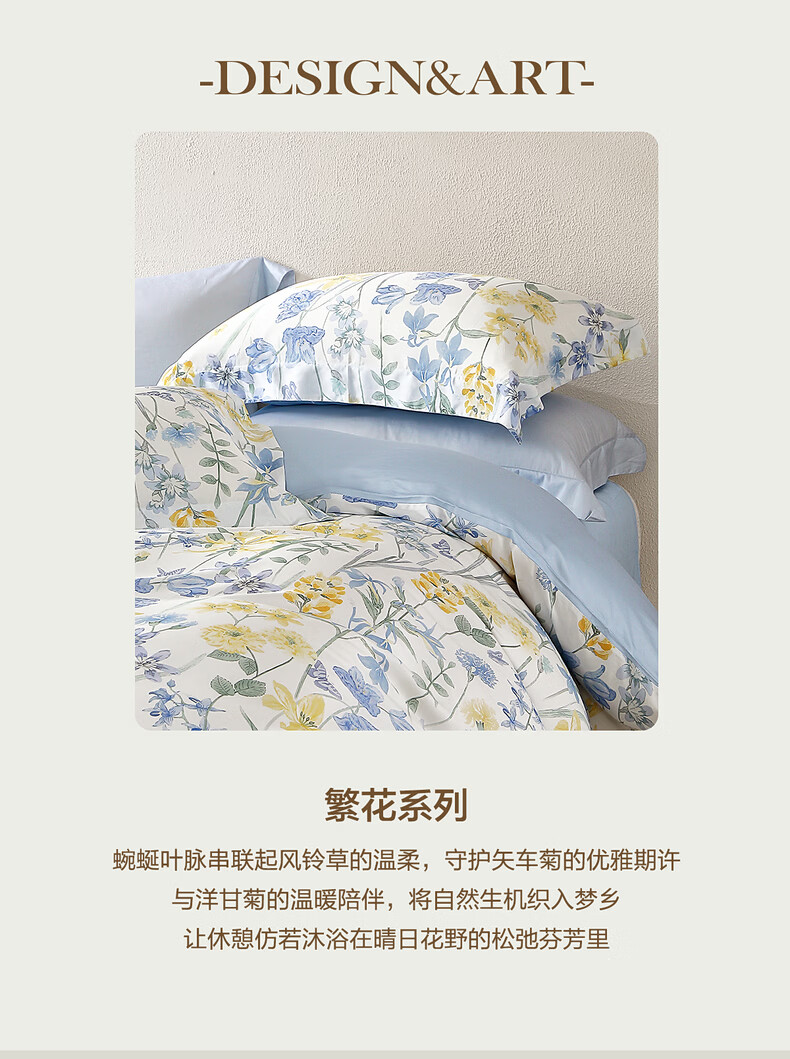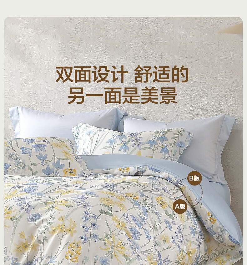 水星家纺四件套床上用品纯棉100%全棉床单被套亲肤透气26年新款套件 繁花·星绘梦 床单款 (被套150*210cm)