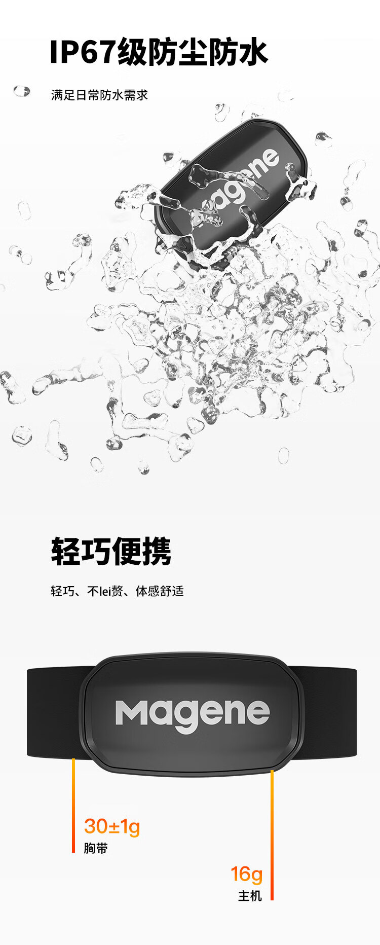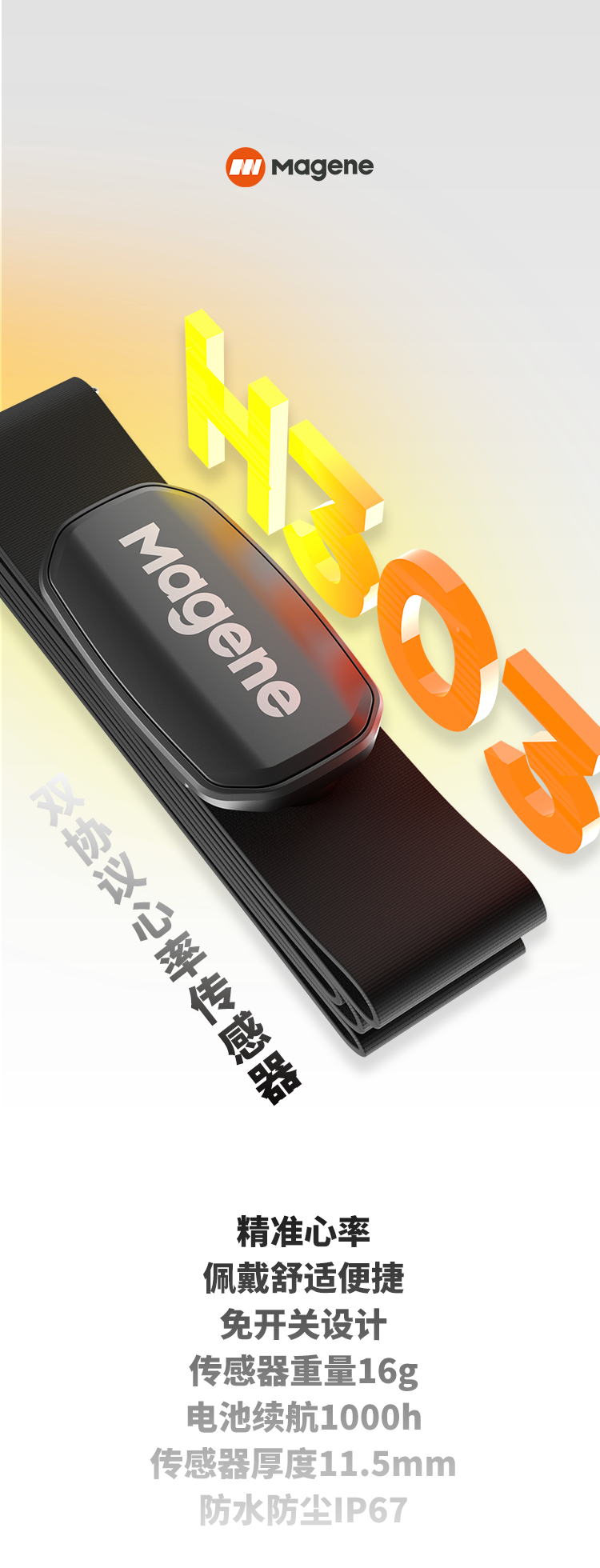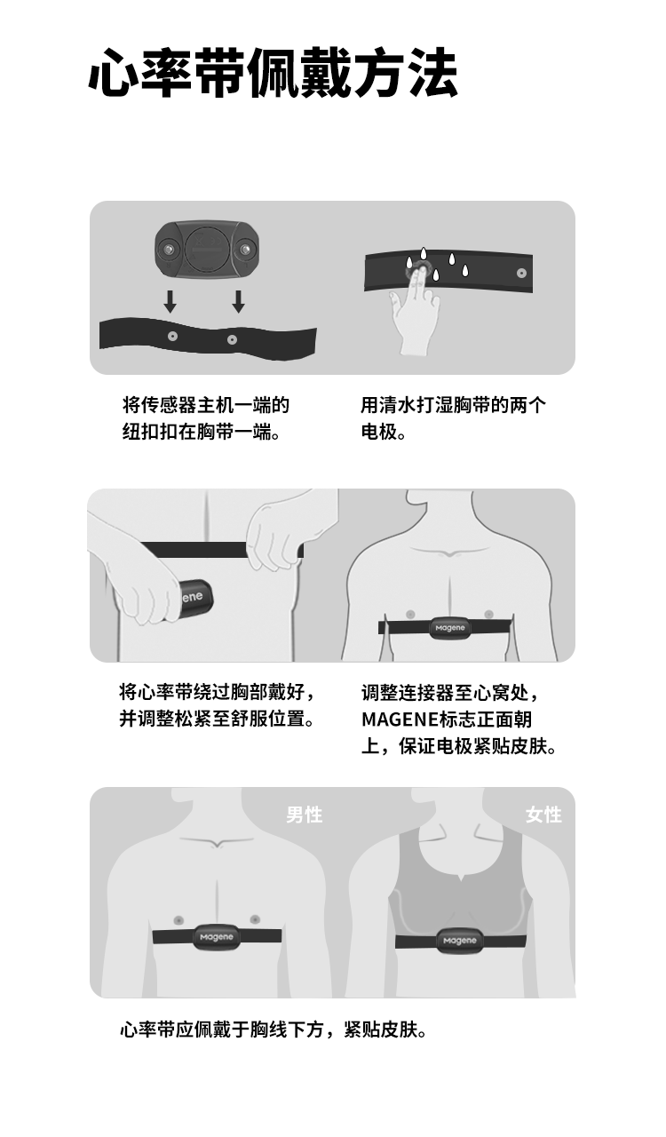 迈金(Magene)H303心率带胸带 ANT+蓝牙双协议健身跑步监测器 自行车码表配件