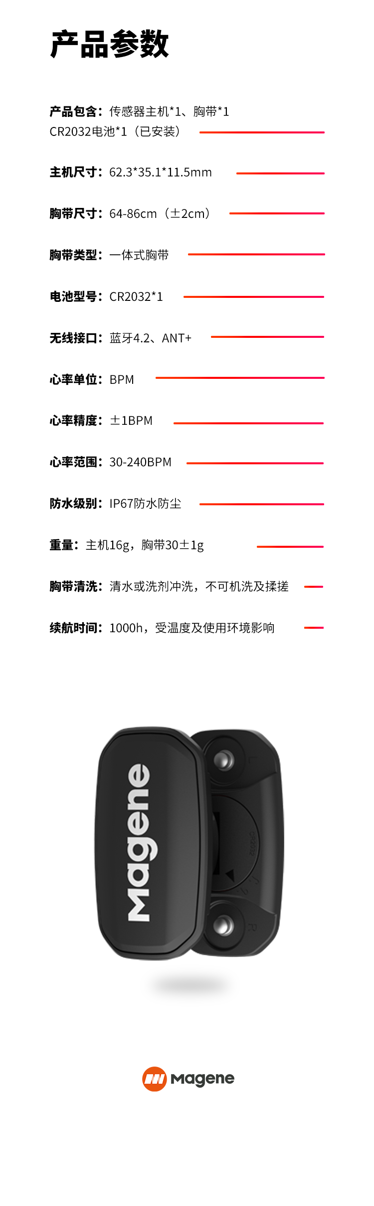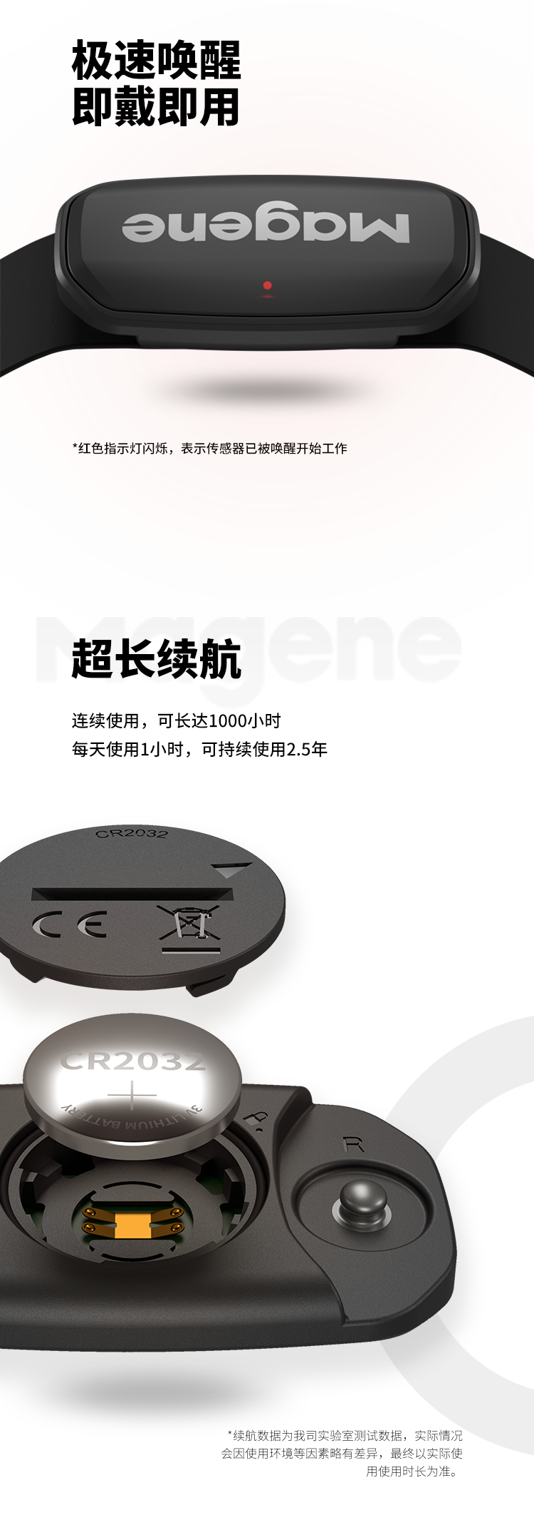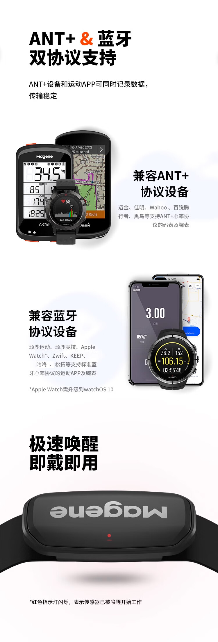 迈金(Magene)H303心率带胸带 ANT+蓝牙双协议健身跑步监测器 自行车码表配件