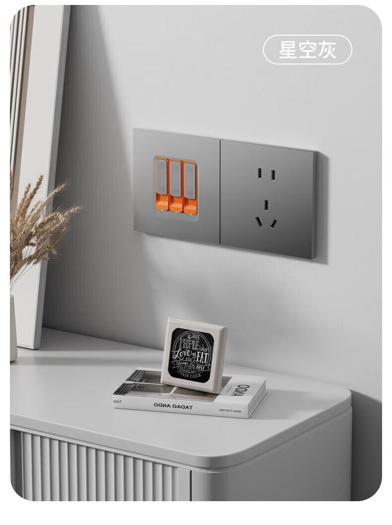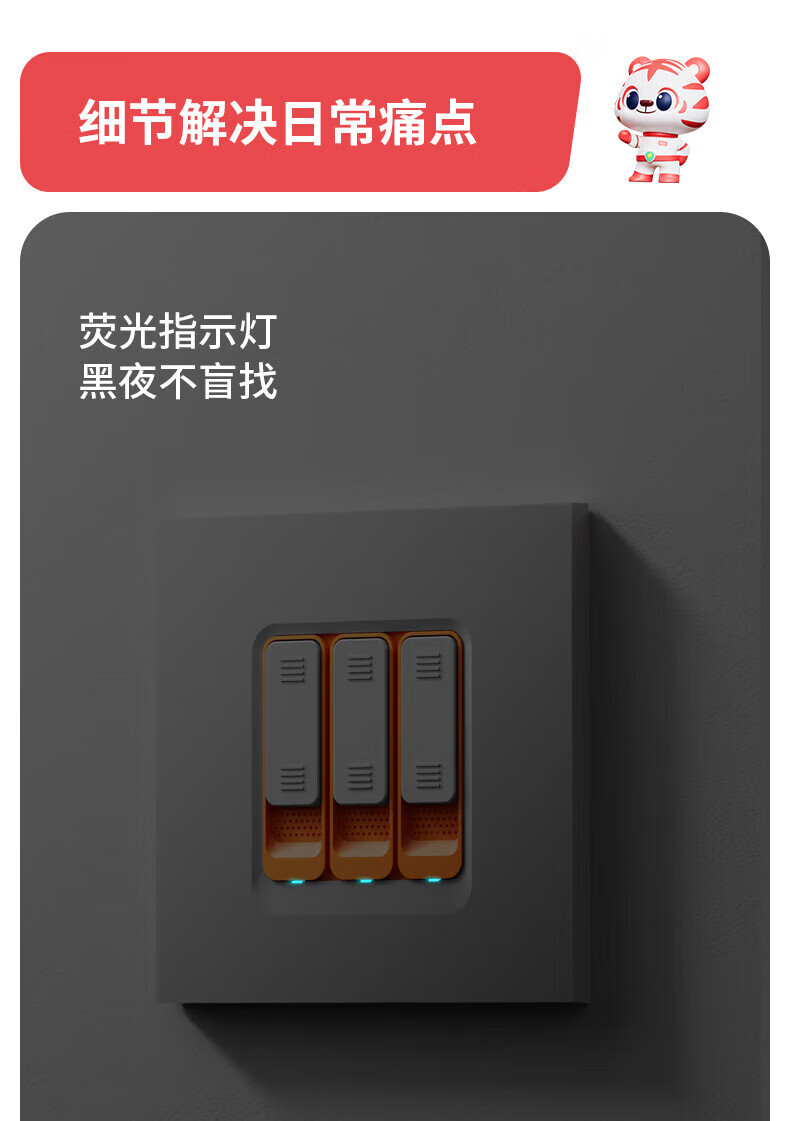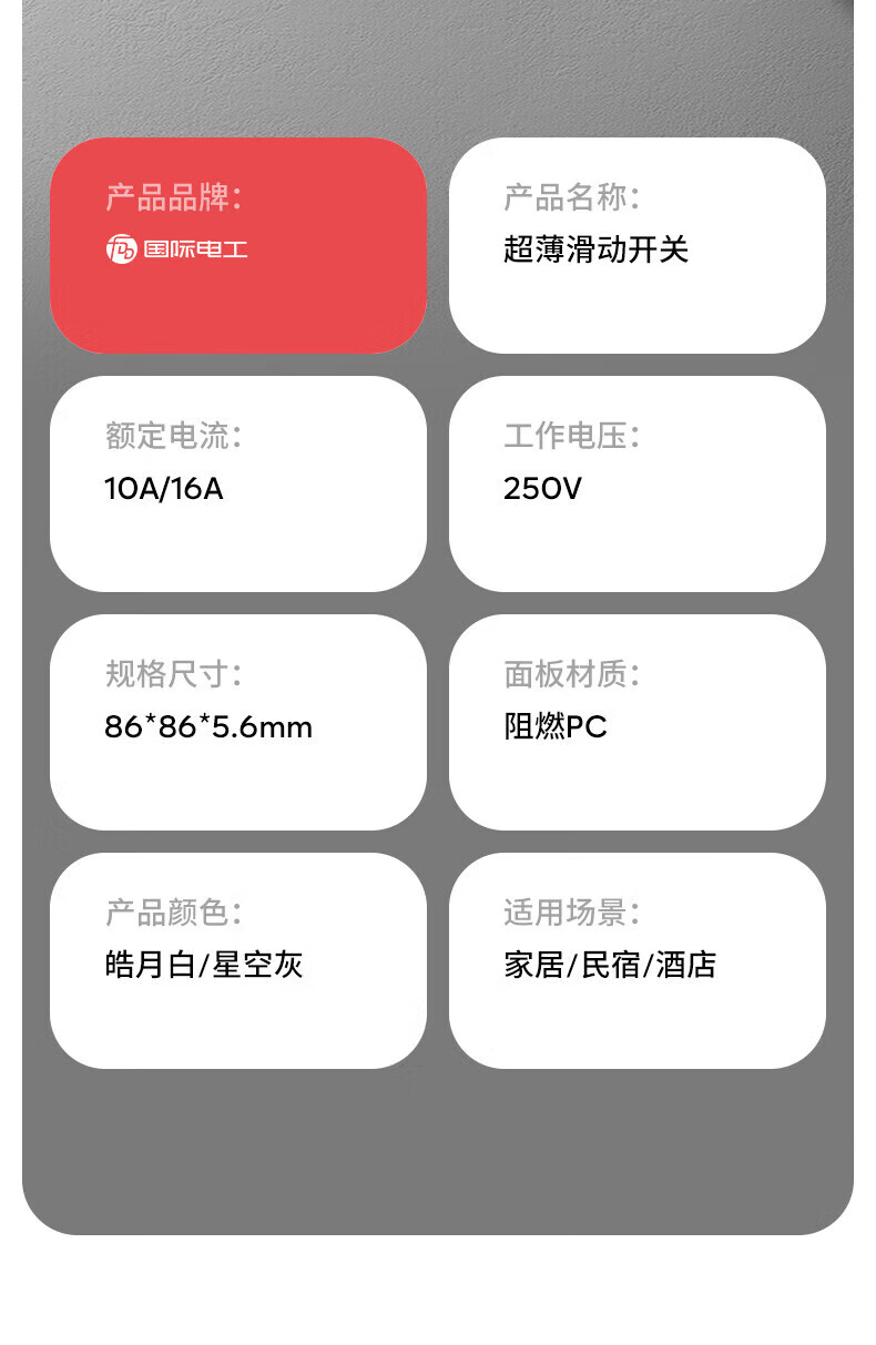 国际电工美学哑光肤感白大板家用智能滑动开关科技感带灯无框超薄电源面板 一开单控-滑动开关
