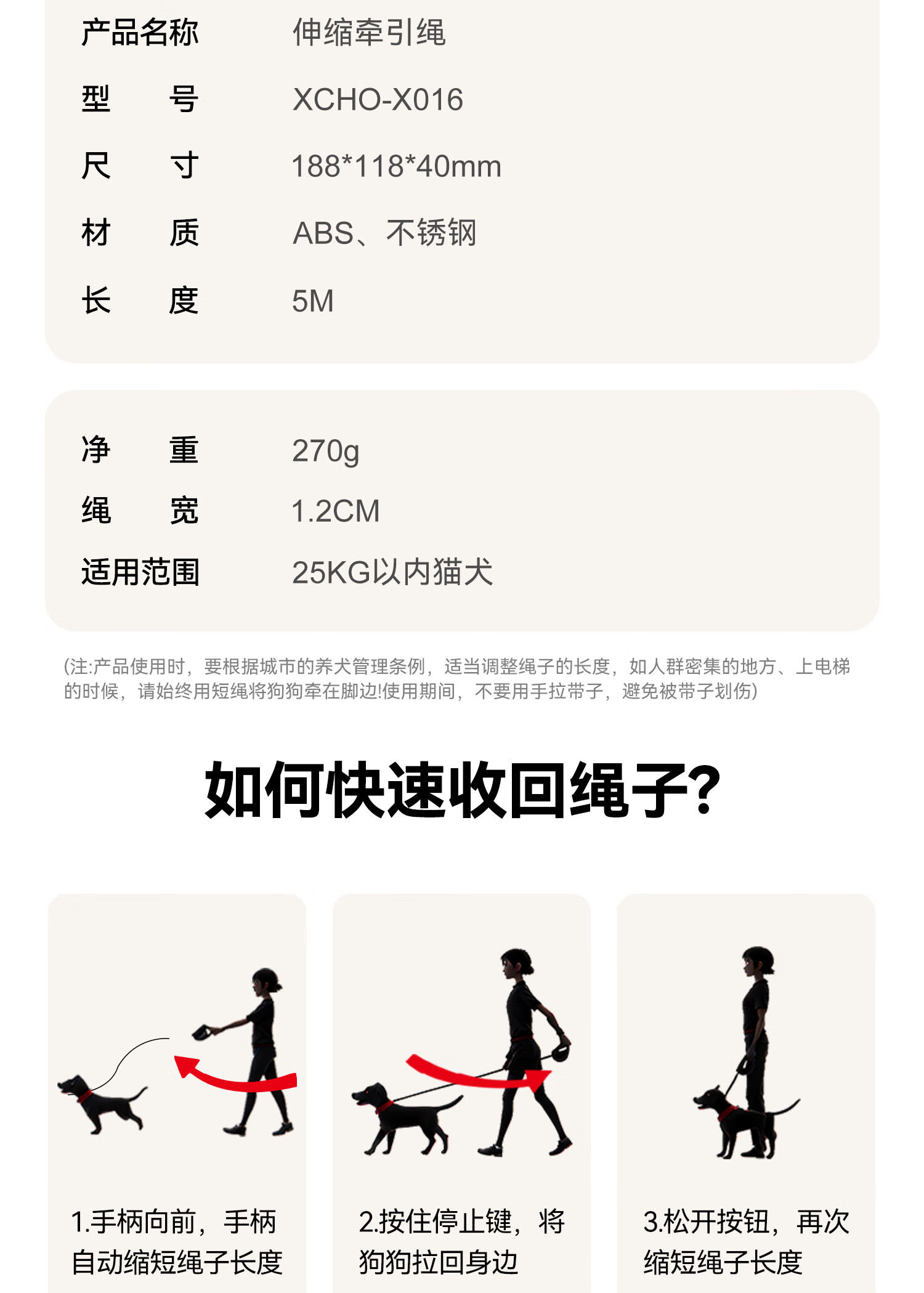 XCHO遛狗伸缩狗绳牵引绳狗狗牵引绳遛狗绳大中小型犬牵引绳自动