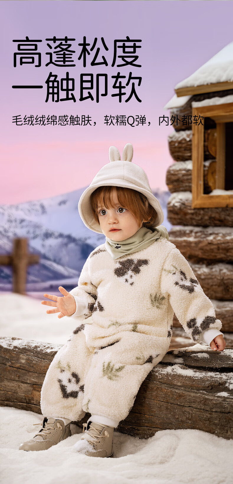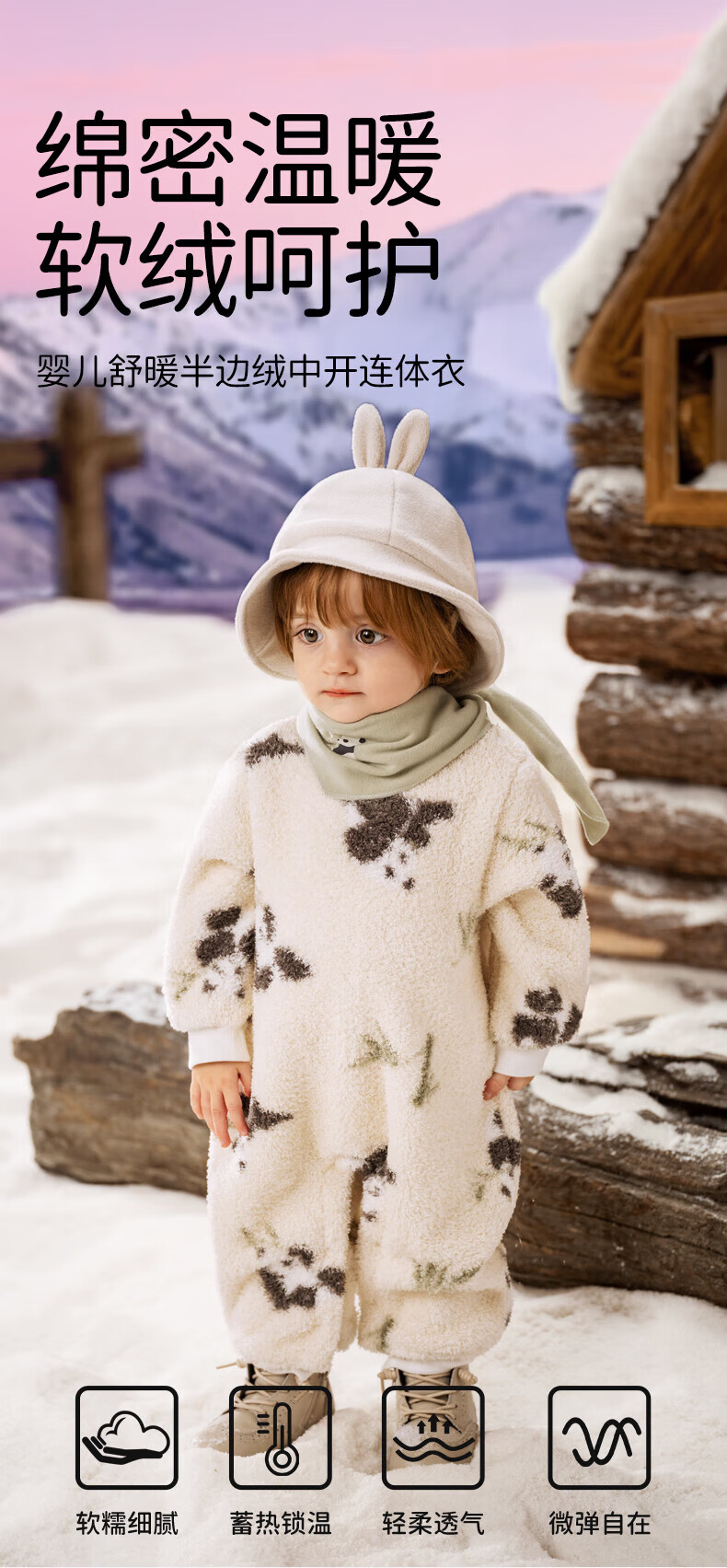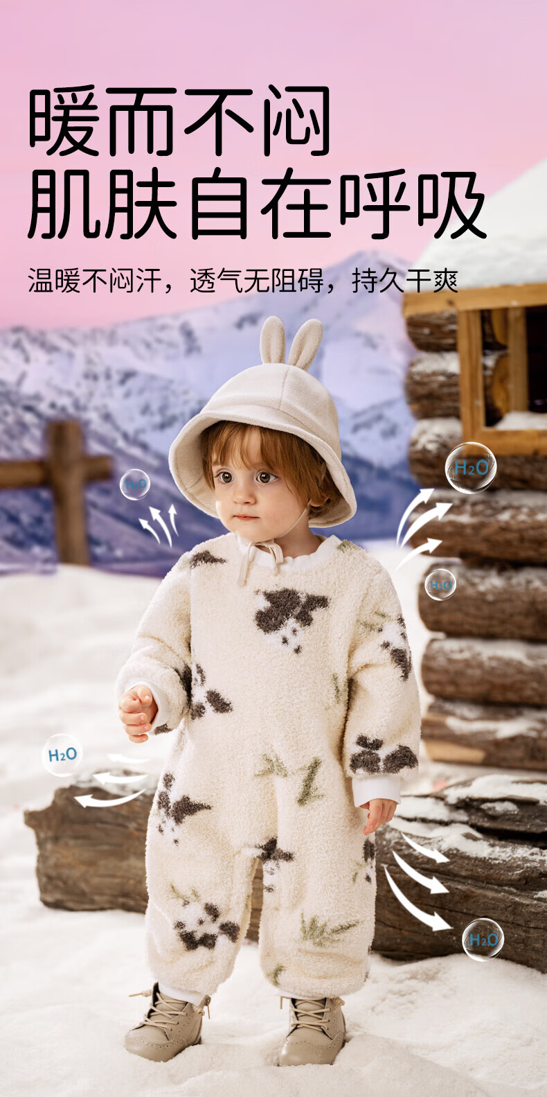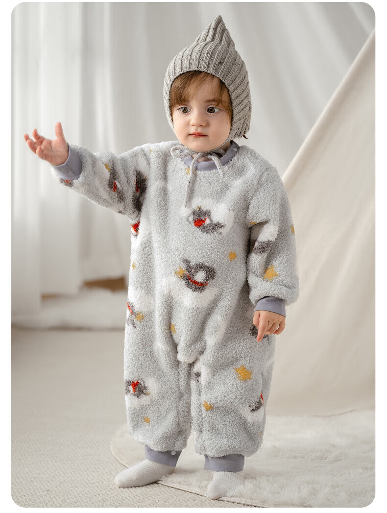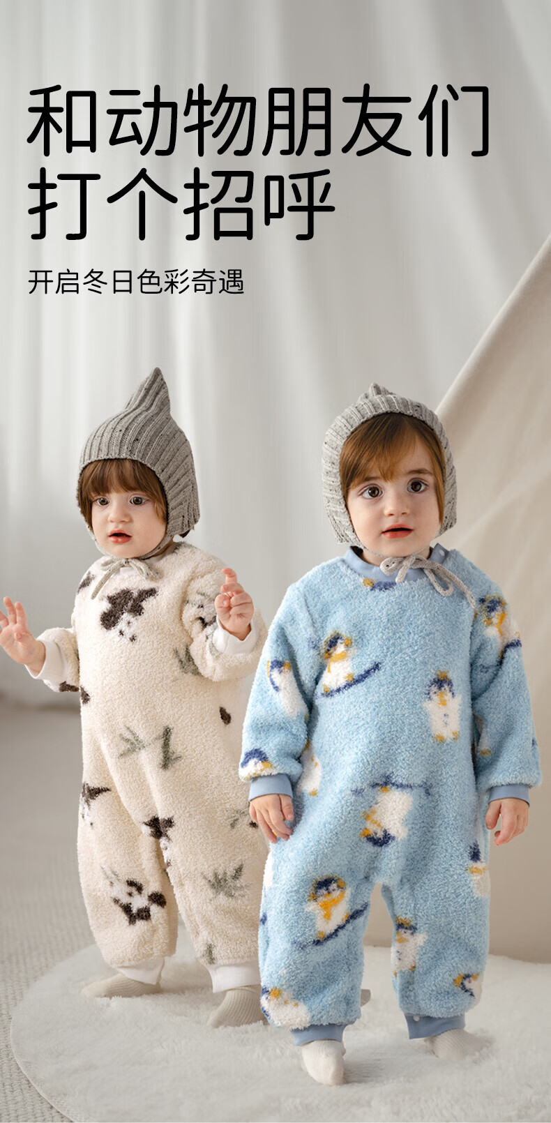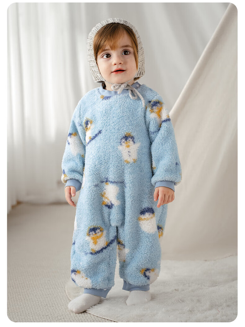 欧孕(OUYUN)半边绒婴儿秋冬衣服宝宝连体衣保暖外出服加绒哈衣爬爬服秋装 蓝企鹅【蓬松保暖―半边绒】 100cm 【建议身高90-103cm】