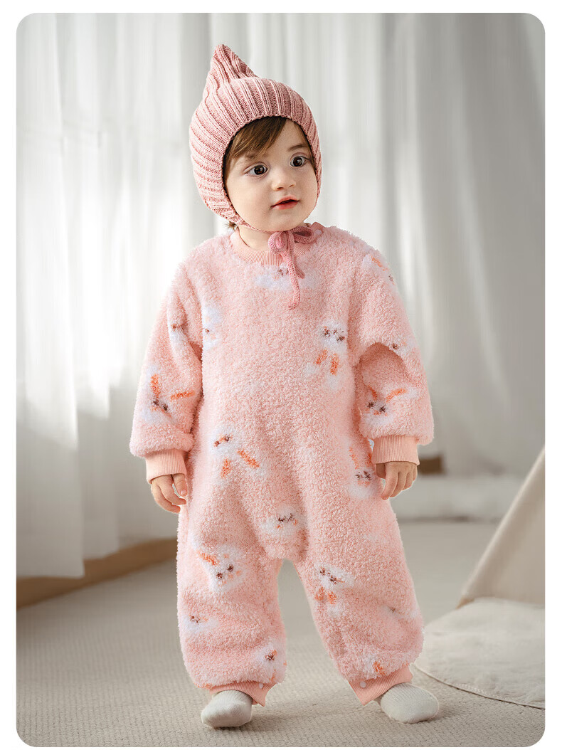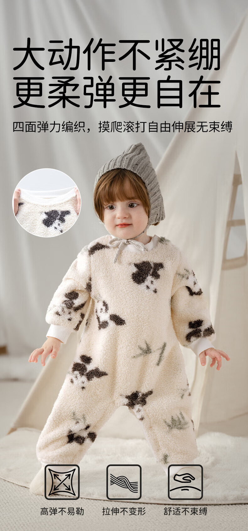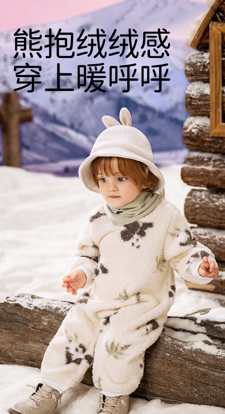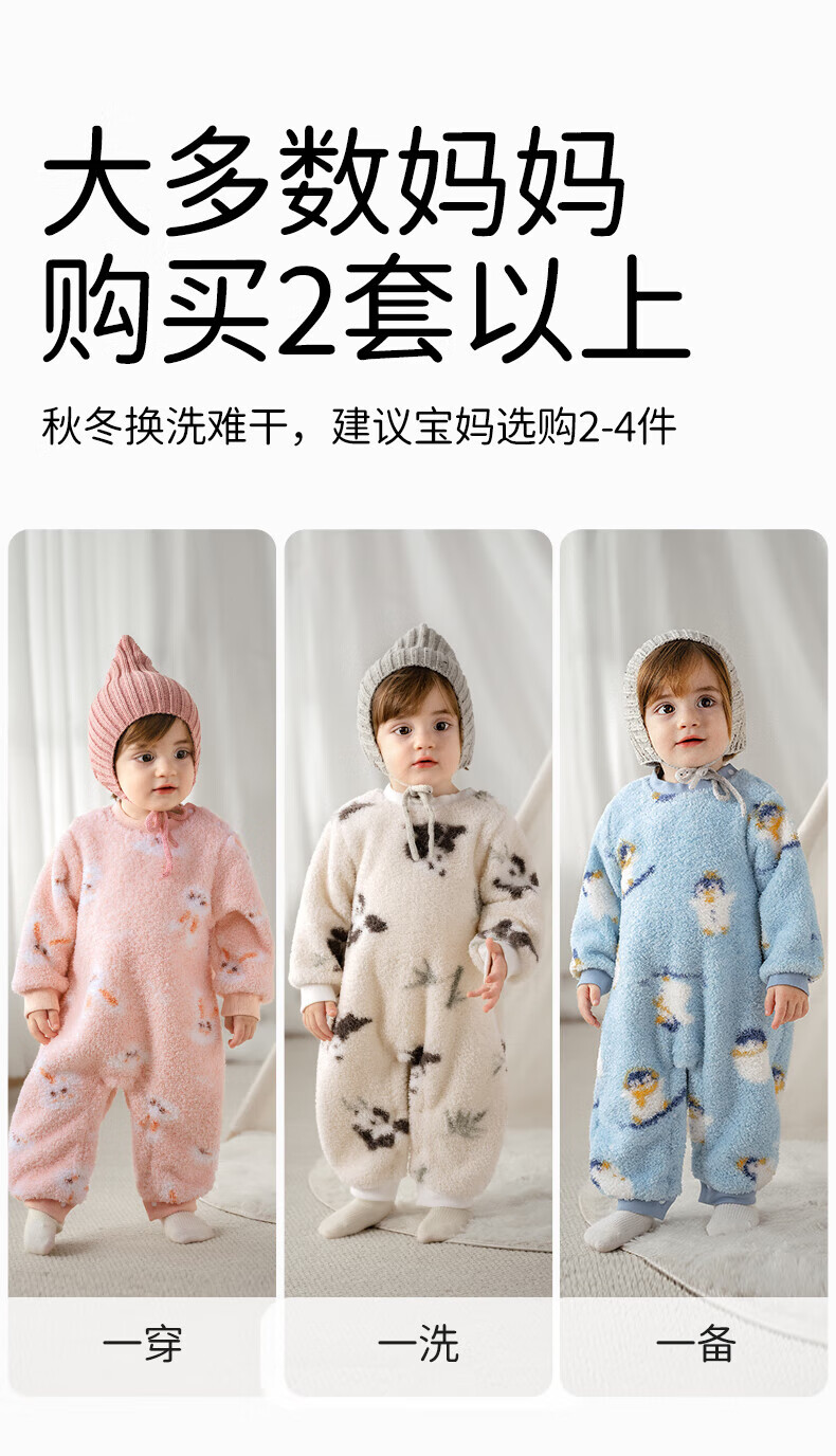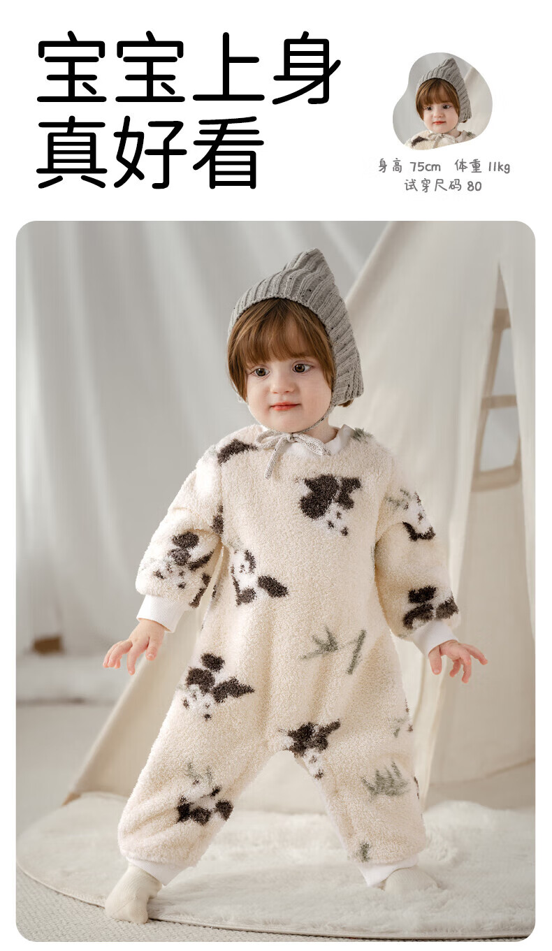 欧孕(OUYUN)半边绒婴儿秋冬衣服宝宝连体衣保暖外出服加绒哈衣爬爬服秋装 蓝企鹅【蓬松保暖―半边绒】 100cm 【建议身高90-103cm】