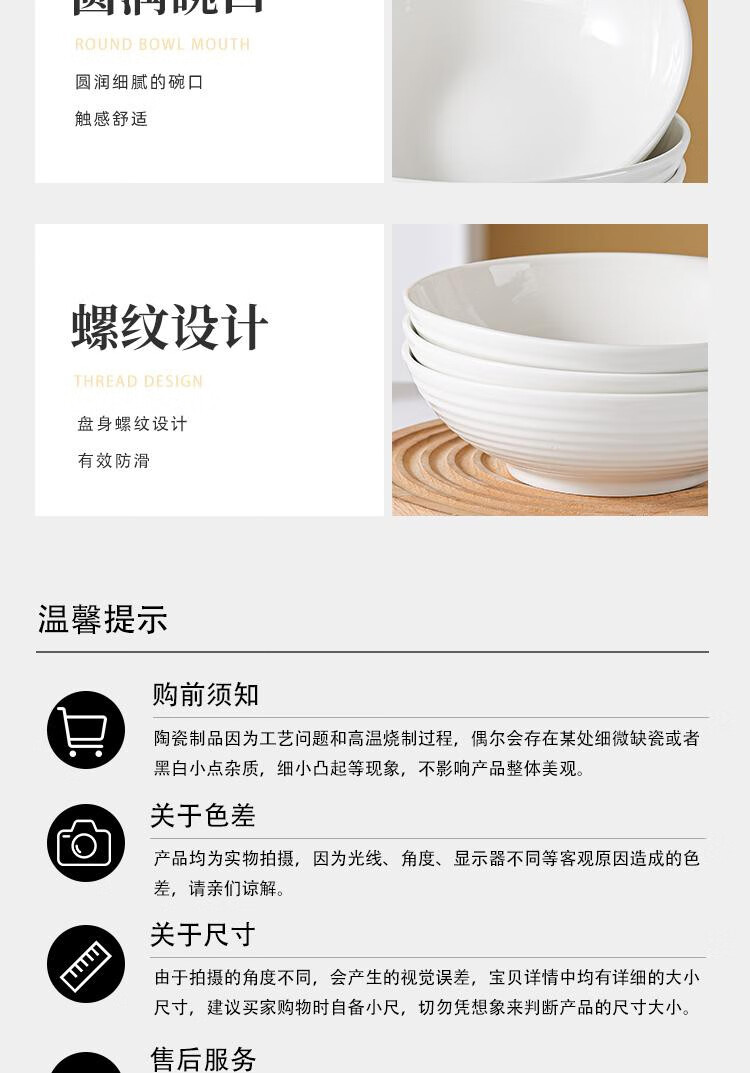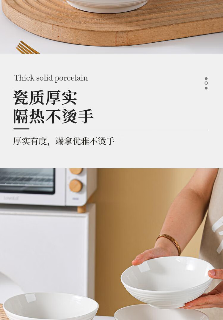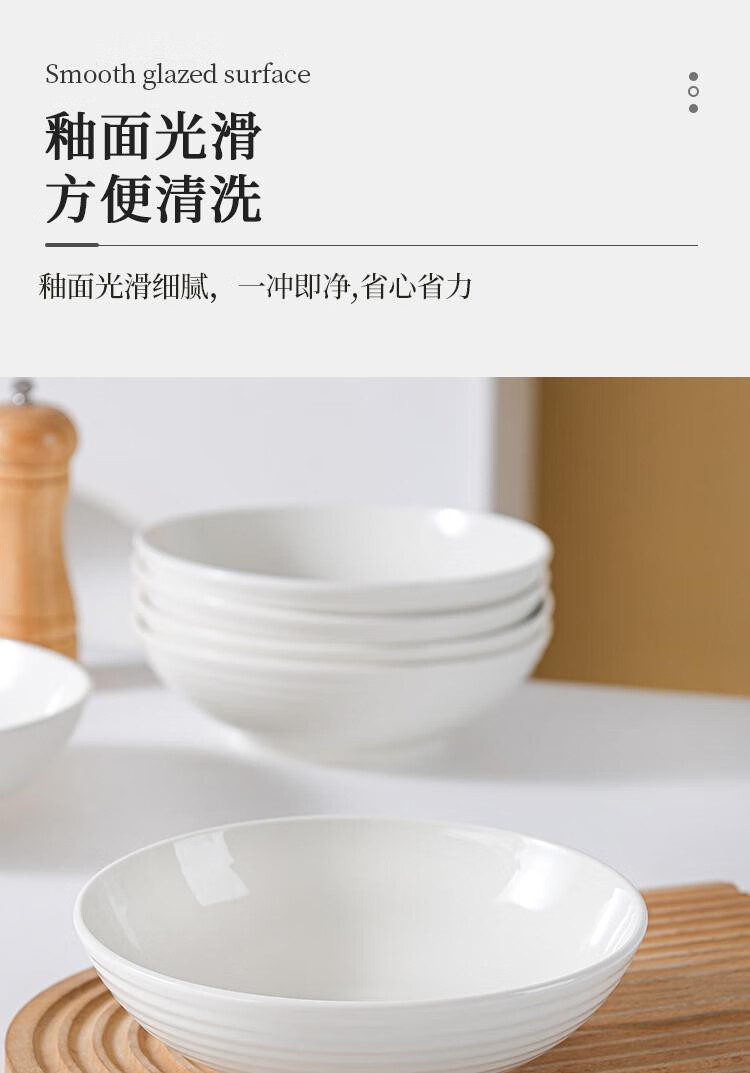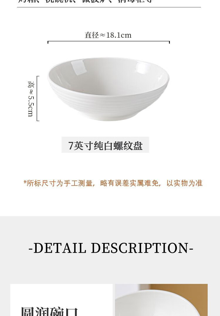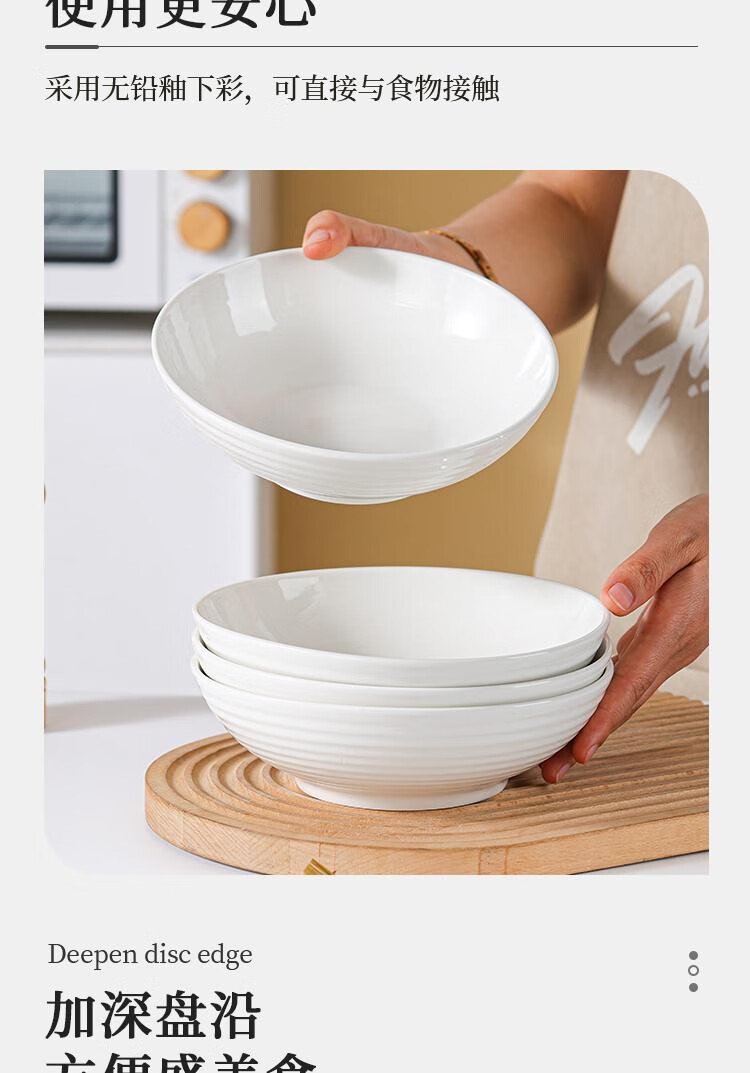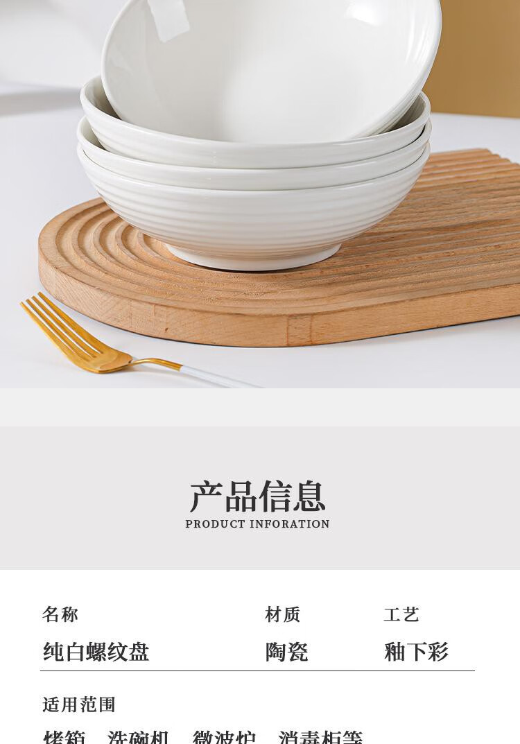 纯白7英寸螺纹深盘4/6个装家用加厚高颜值盘陶瓷餐具菜盘子汤盘 纯白螺纹深盘子4个装 7英寸
