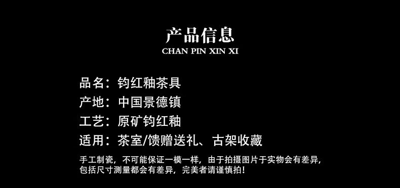 鋆钰郎窑钧红窑变景德镇陶瓷功夫茶具 公道 色釉