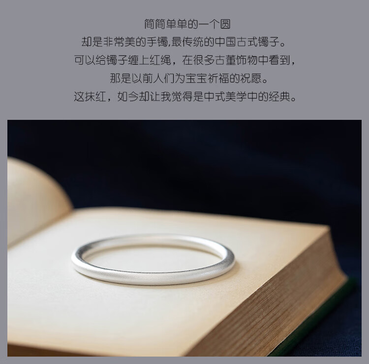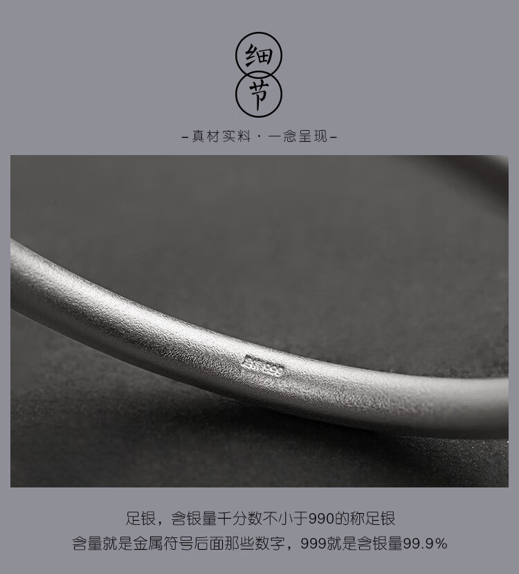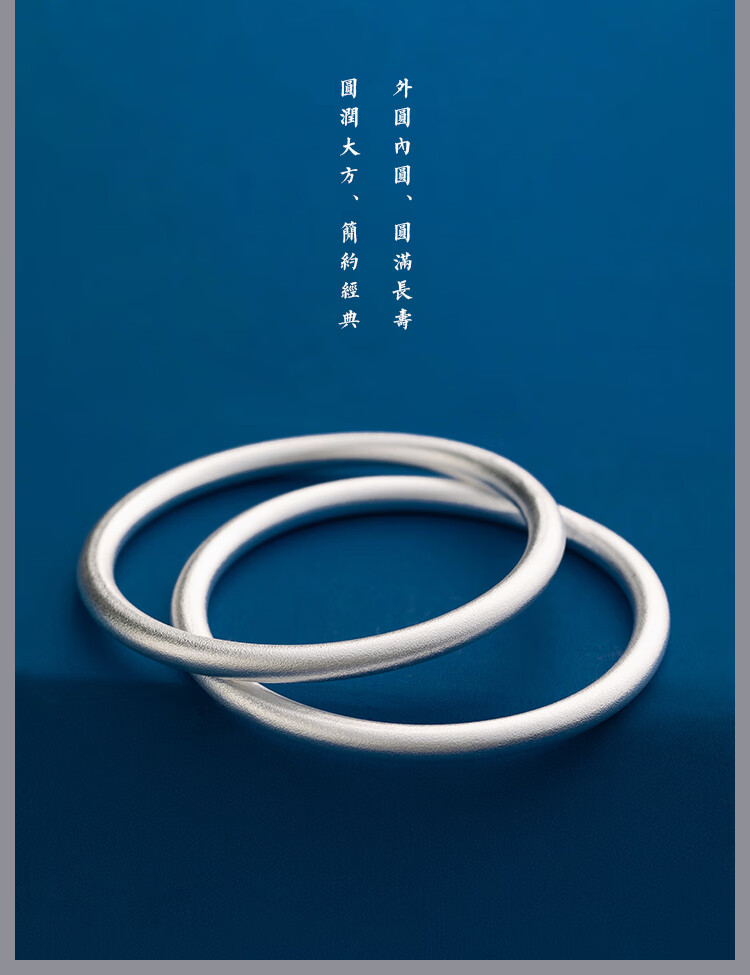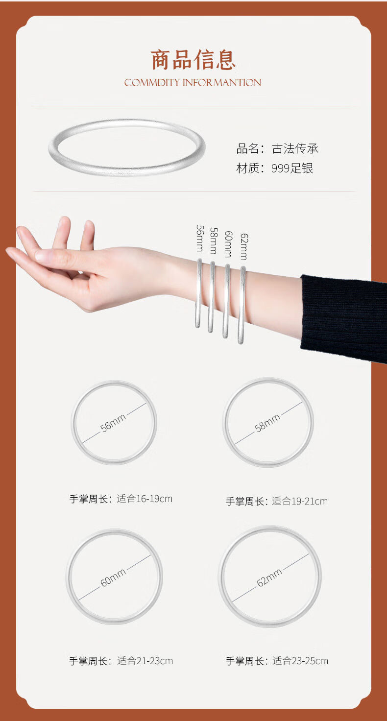 老凰祥足银9999古法传承素圈纯银手镯实心闭口镯子哑光送女友礼物 传承古法手镯40克 手镯内直径60mm 建议体重121-135斤