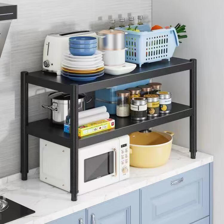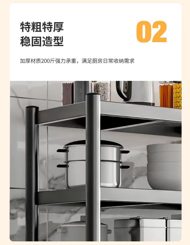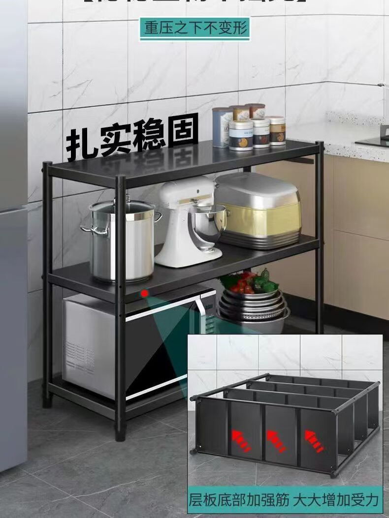 忆思减加厚厨房架子置物架落地多层收纳架锅架三层储物杂物架子微波炉架 三层80厘米高 长80*宽25【加厚防锈】