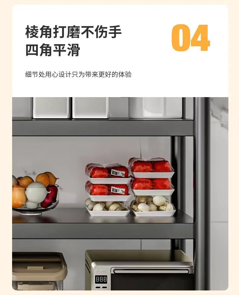 豪利邦厨房钢制餐边柜家用落地大容量多层置物架加厚防尘收纳储物柜碗柜 【枪灰色】加厚碳钢 42深 三层【长60*高80cm】加厚防尘