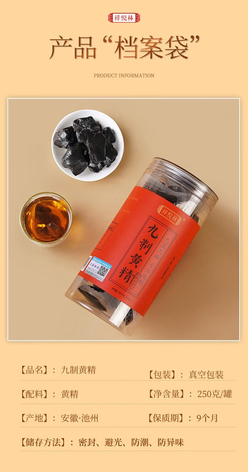 祥悦林九华黄精九蒸九晒九制九华山多花黄精独立包装 250g*2罐 家庭装(送手提袋) 九蒸九晒黄精