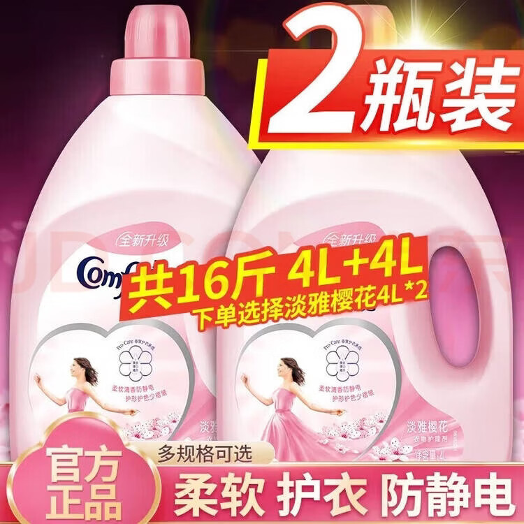 联合利华金纺衣物柔顺剂护理剂8斤4L薰衣草樱花温和清新护衣增柔持久留香 (8斤1瓶)薰衣草香紫色