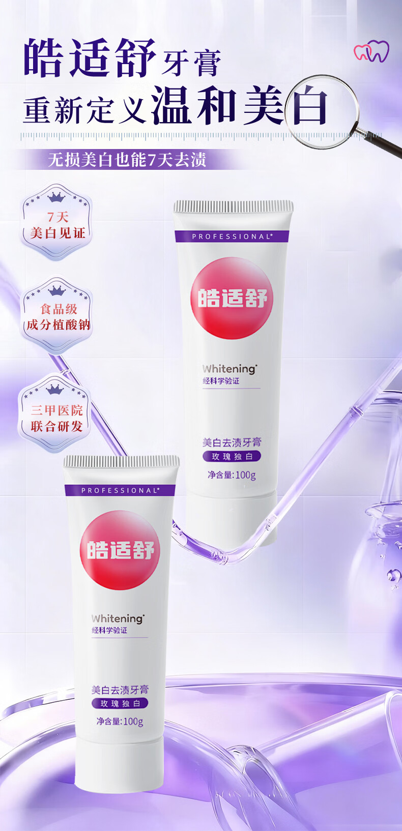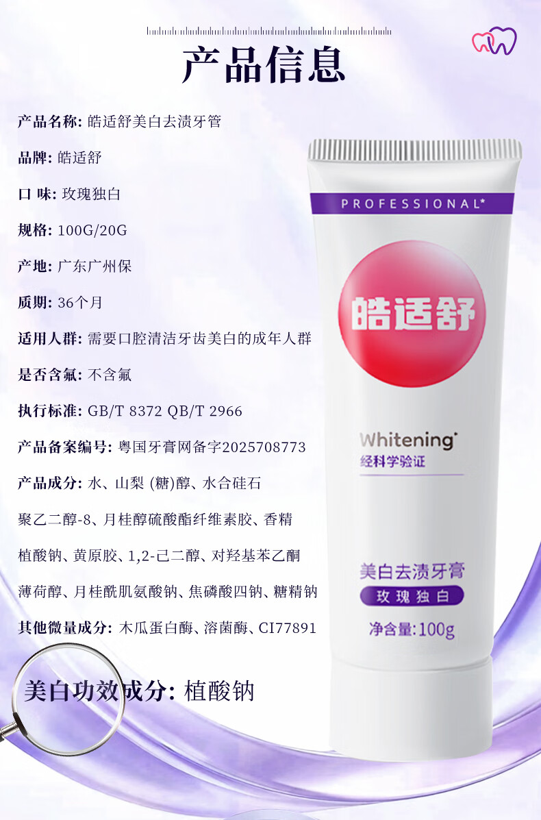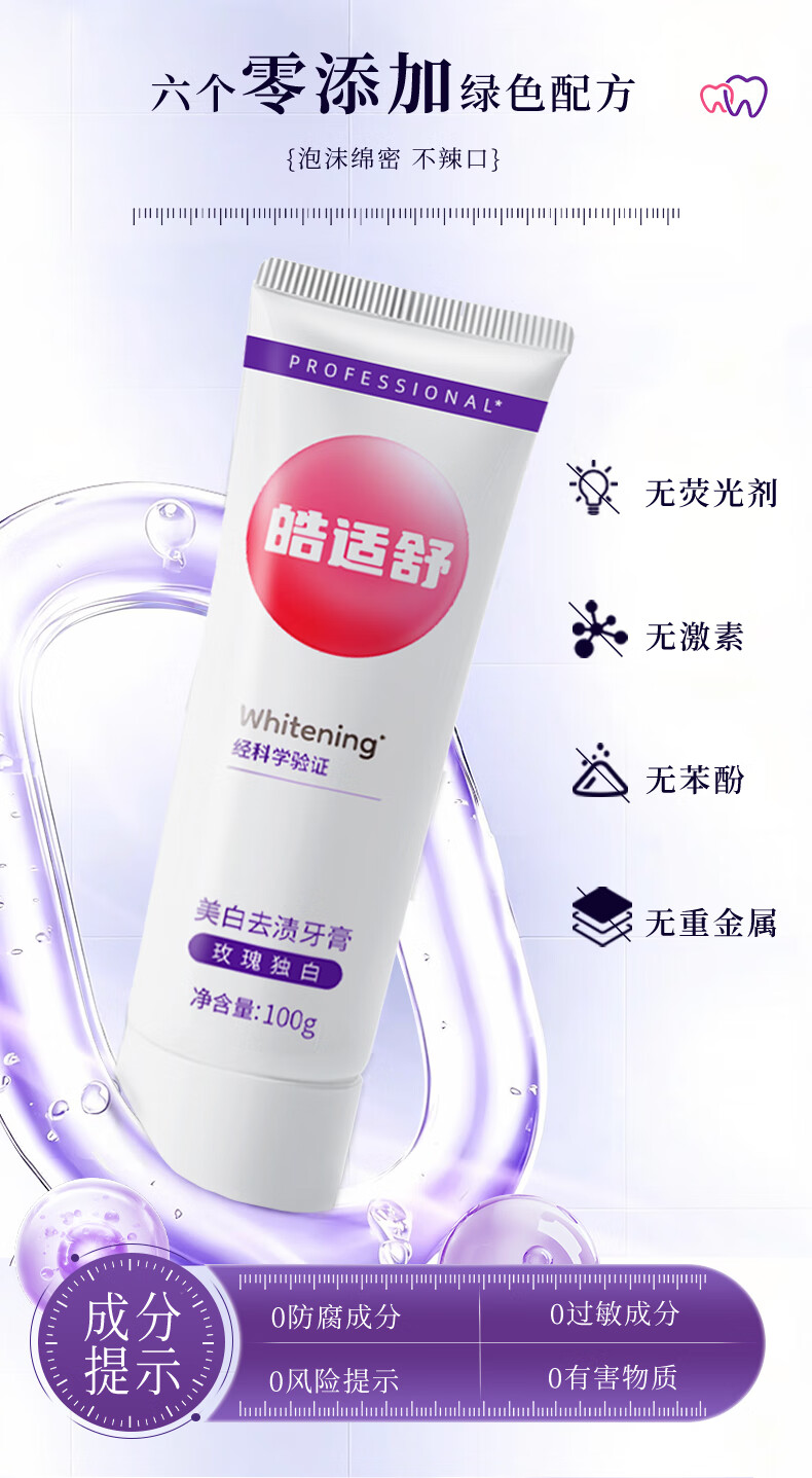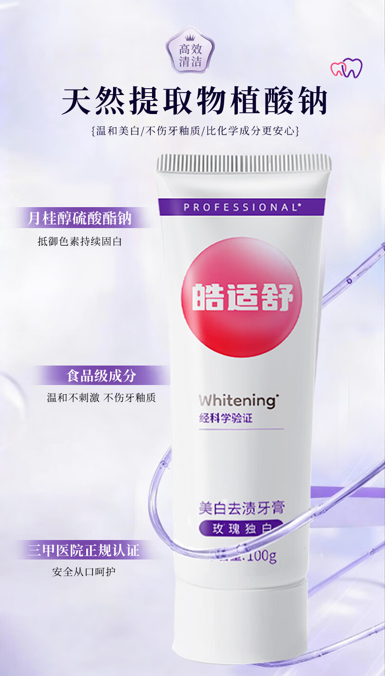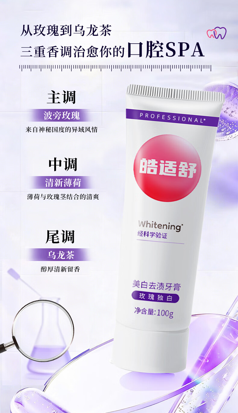 皓适舒美白牙膏去黄去渍去口臭去牙渍去烟渍牙垢官方旗舰正品2支装 玫瑰独白 200g