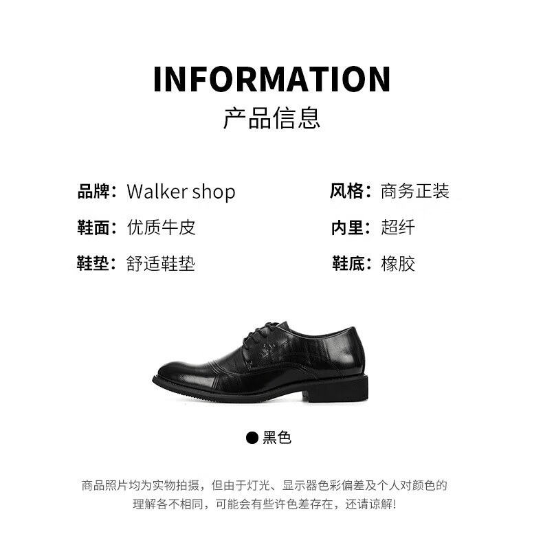 Walker Shop【品牌精选】皮鞋男新款简约百搭商务正装鞋男透气休闲鞋子男 黑色 44
