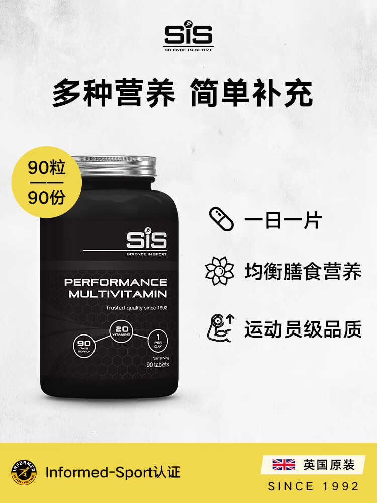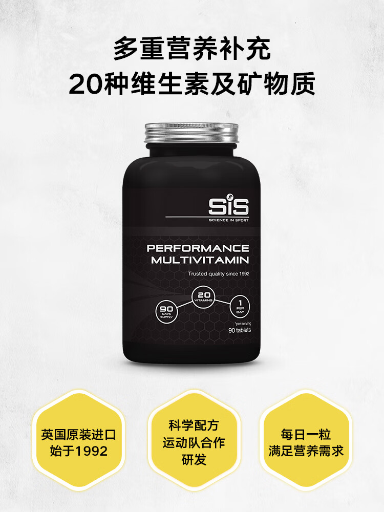 SCIENCE IN SPORT英国进口SIS复合维生素矿物质 20种营养维生素B族维生素C维E维D 复合维生素 90粒*1瓶