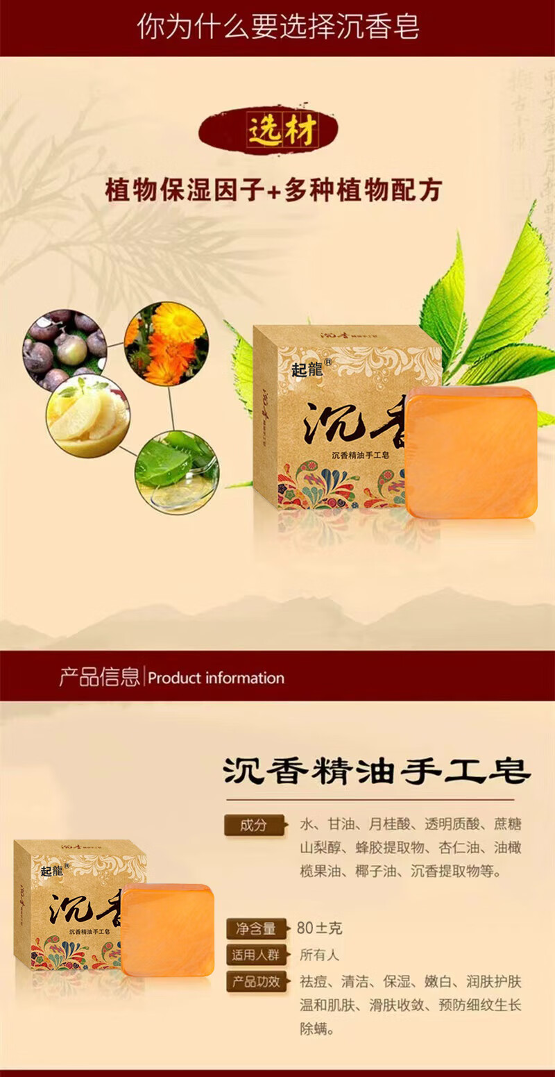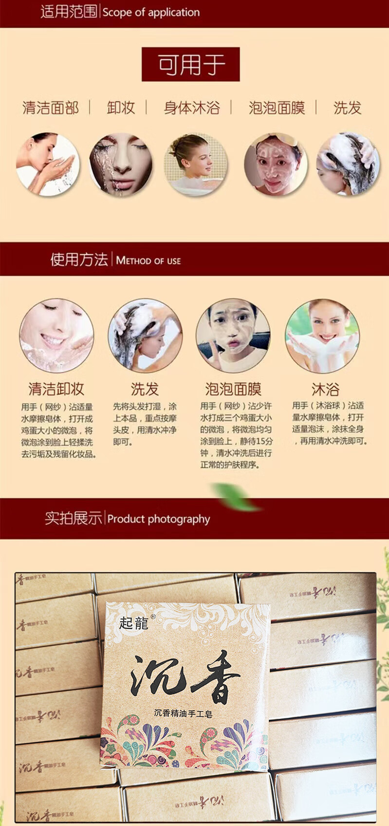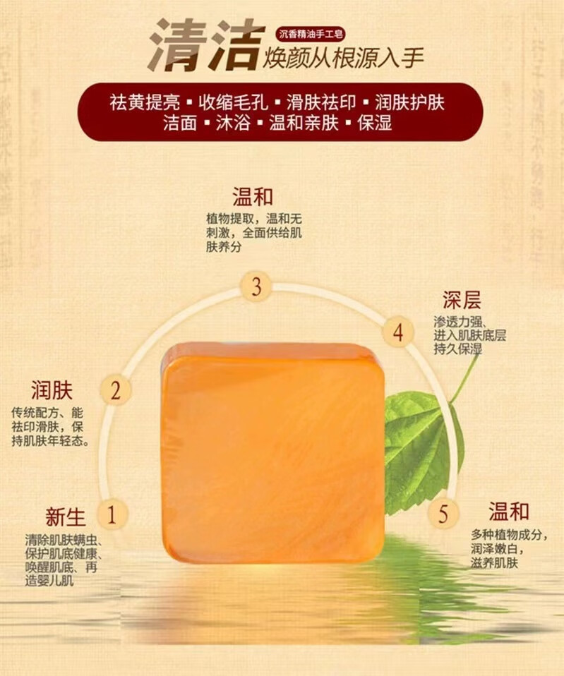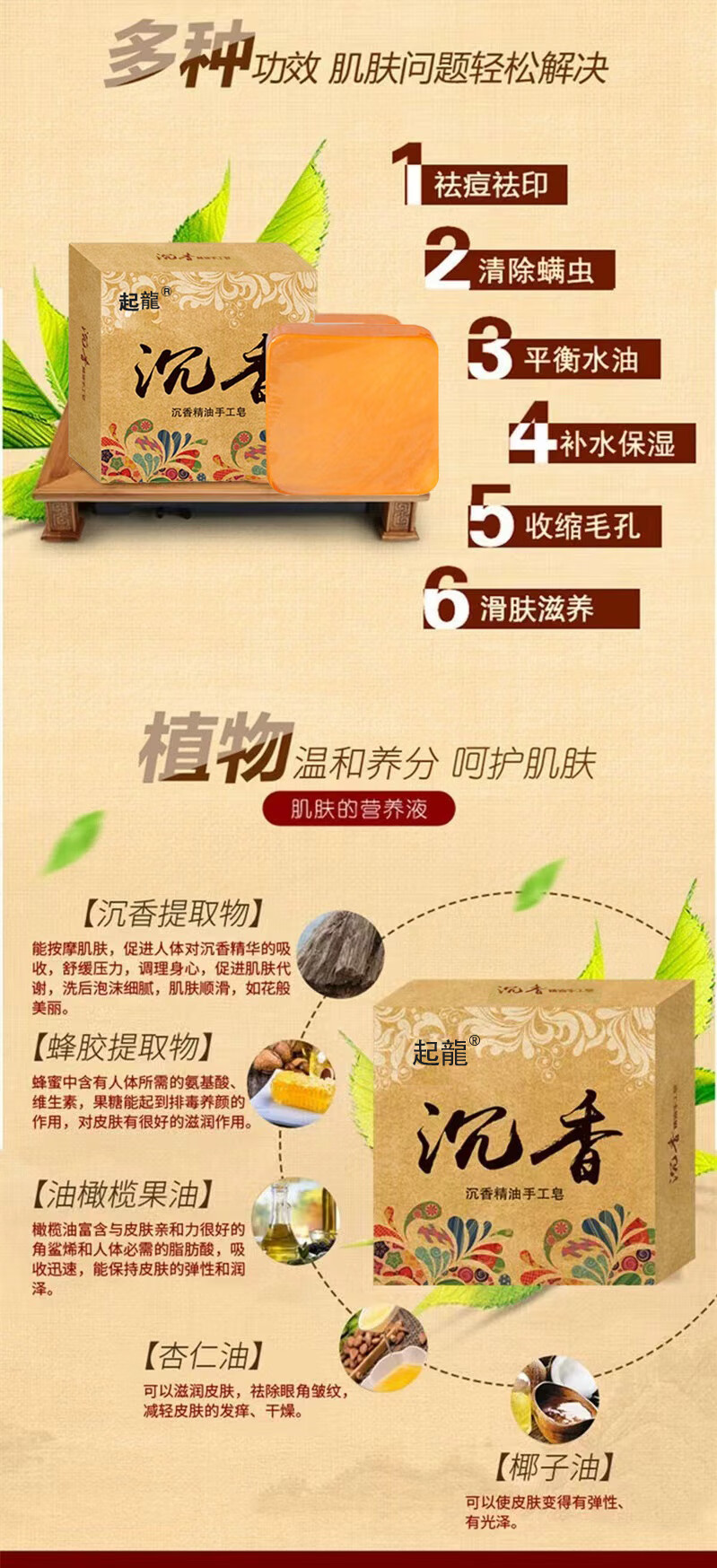 起龙沉香精油手工皂檀香滋润除螨洁面沐浴留香深层清洁润肤香皂 沉香皂【5盒】