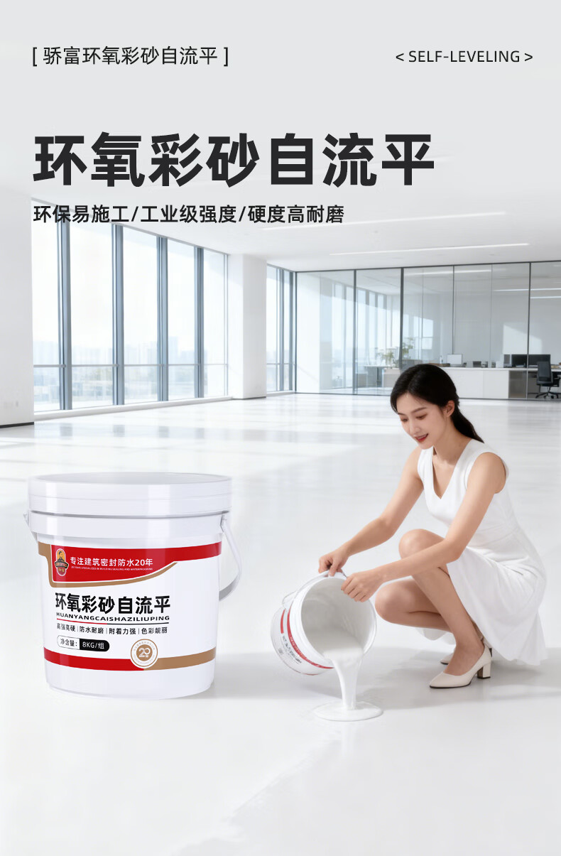 骄富环氧彩砂自流平水泥地面地坪漆仿大理石瓷砖防滑耐磨家用树脂油漆 蓝色 24kg