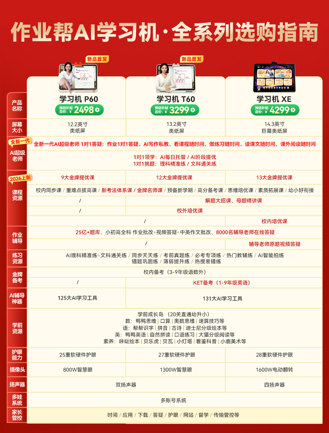 作业帮学习机T60 8+256G 全新一代AI超级老师 1对1名师大招课平板电脑小学到高中学练辅导家教