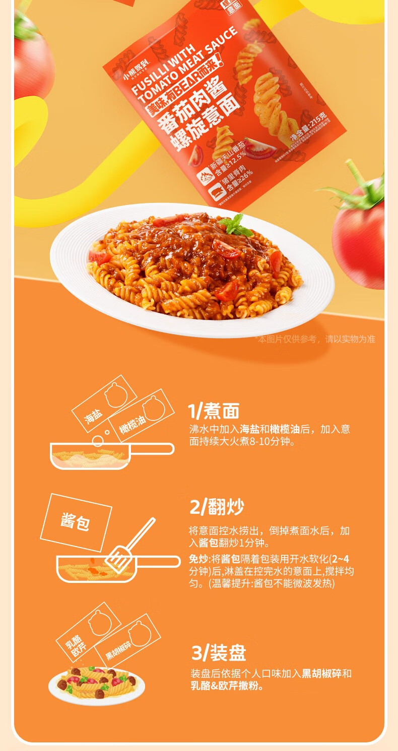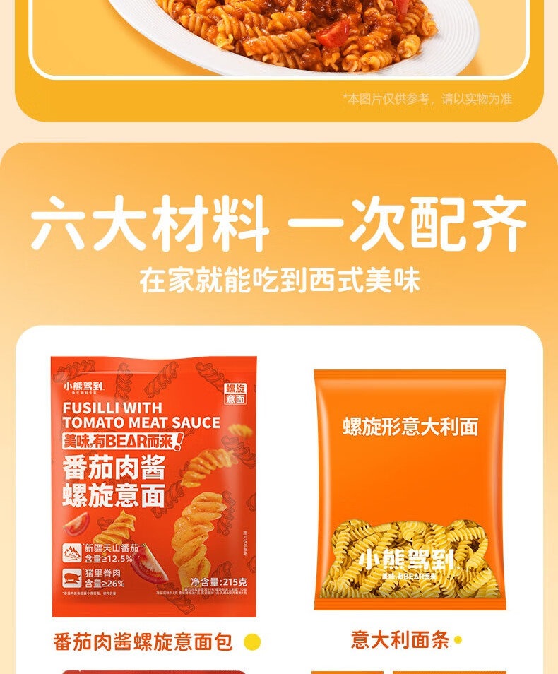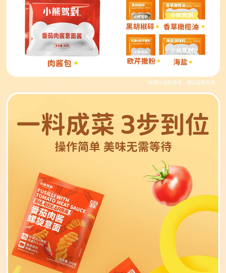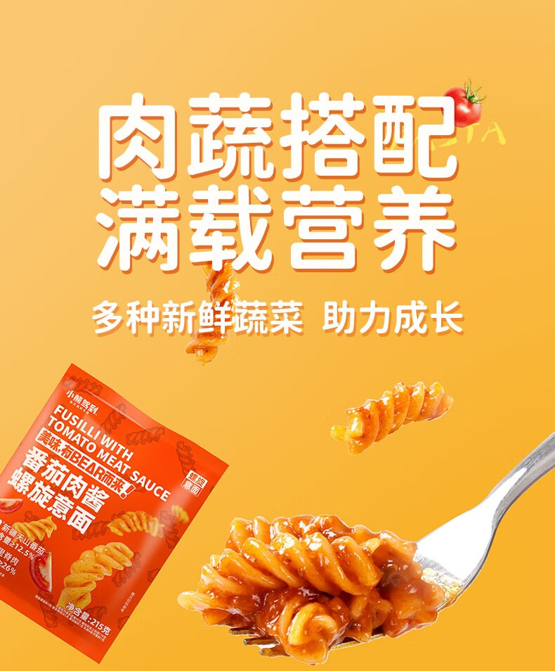 小熊驾到番茄肉酱螺旋意面215g 儿童意面方便面通心粉速食意大利面