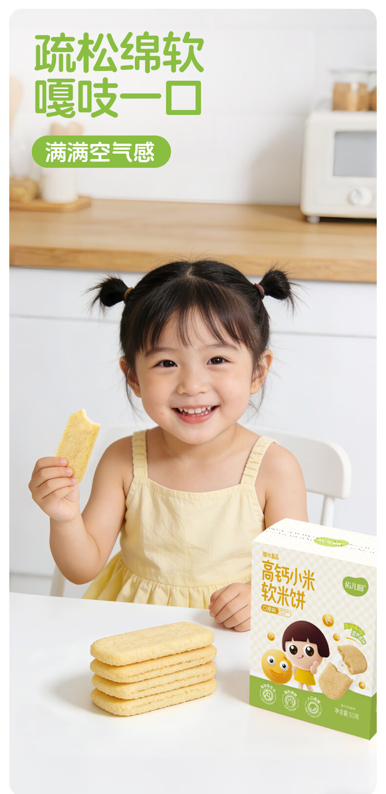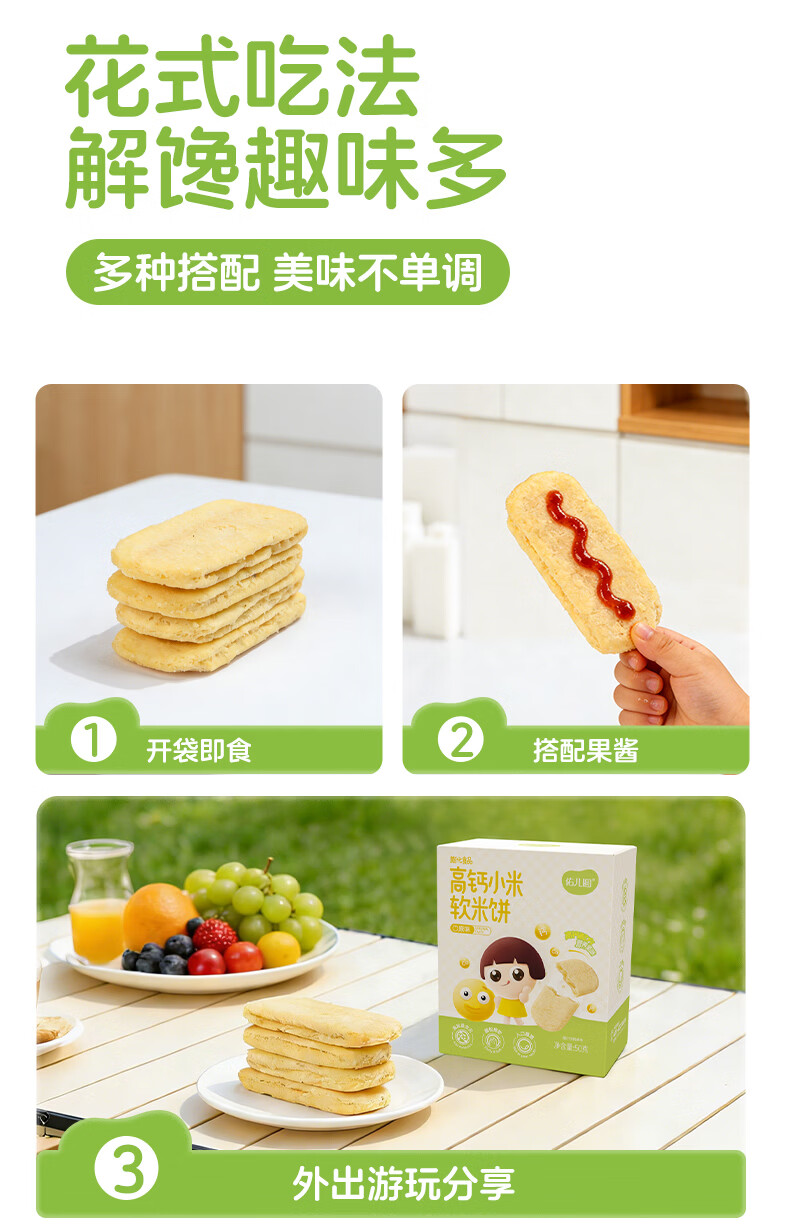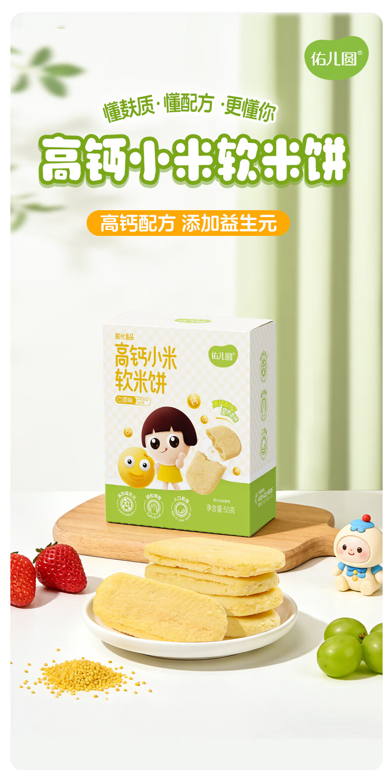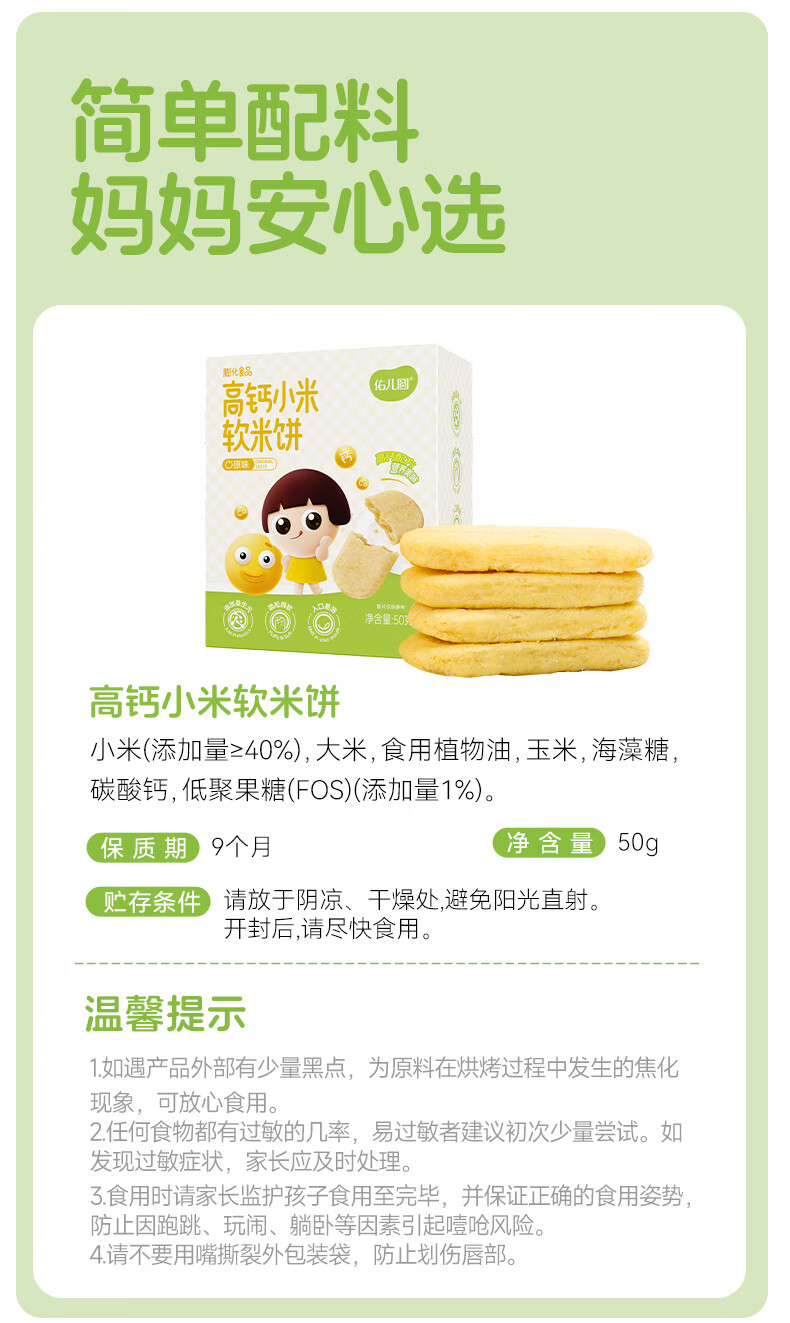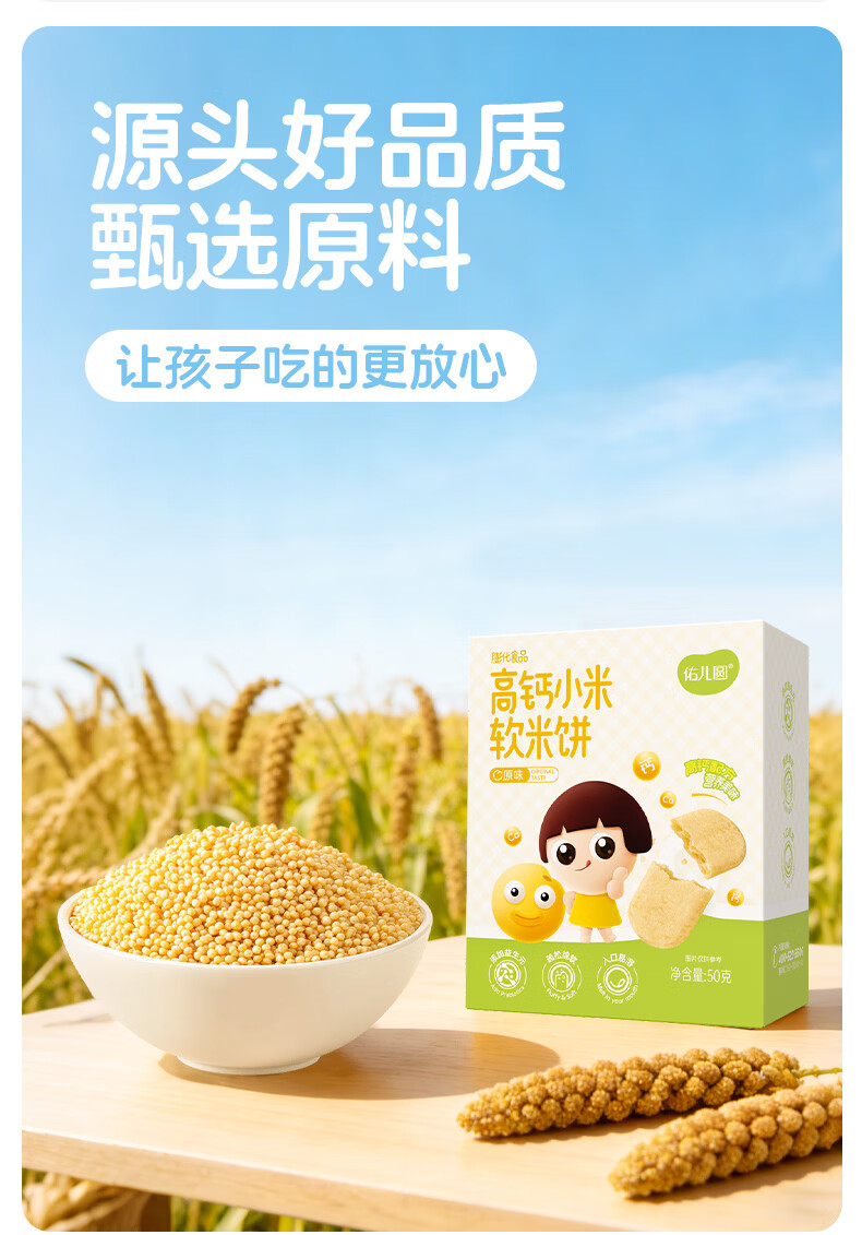 佑儿圆高钙小米软米饼50g儿童零食无添加小麦蛋奶送敏宝电子辅食食谱