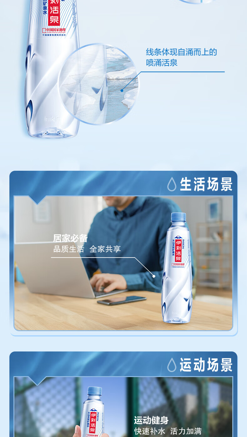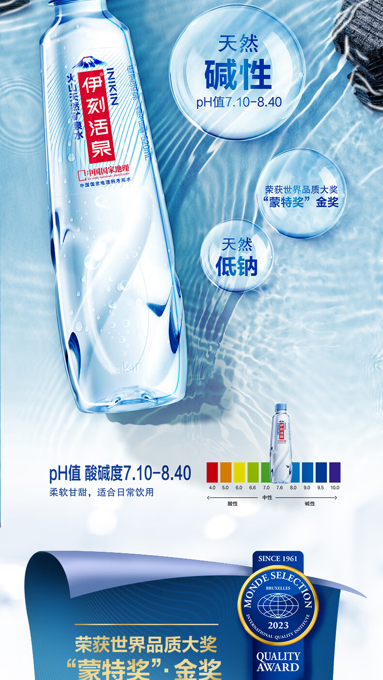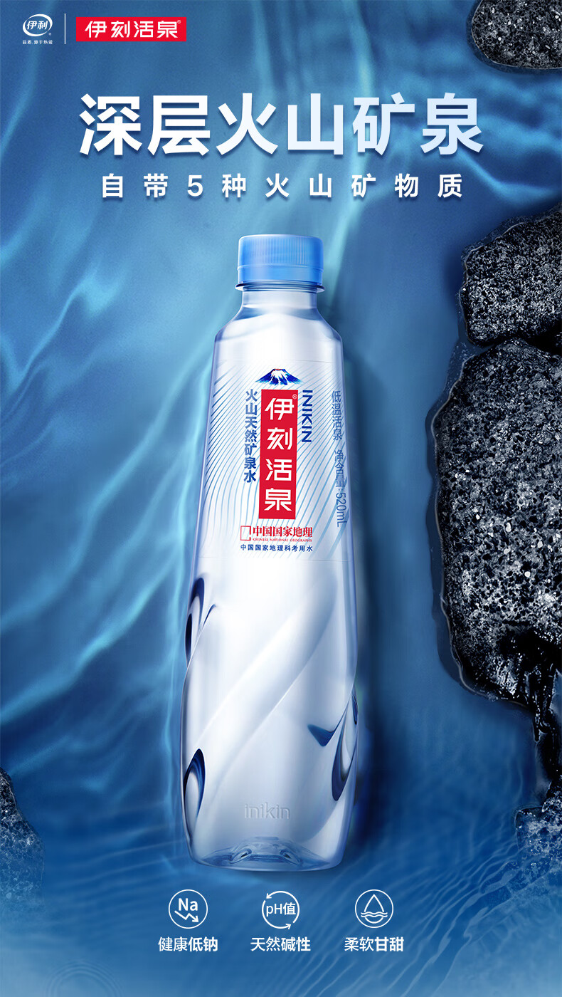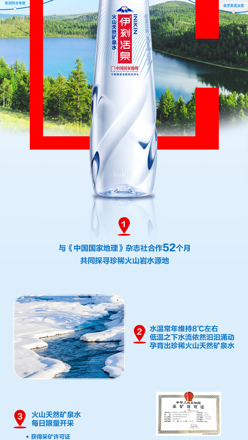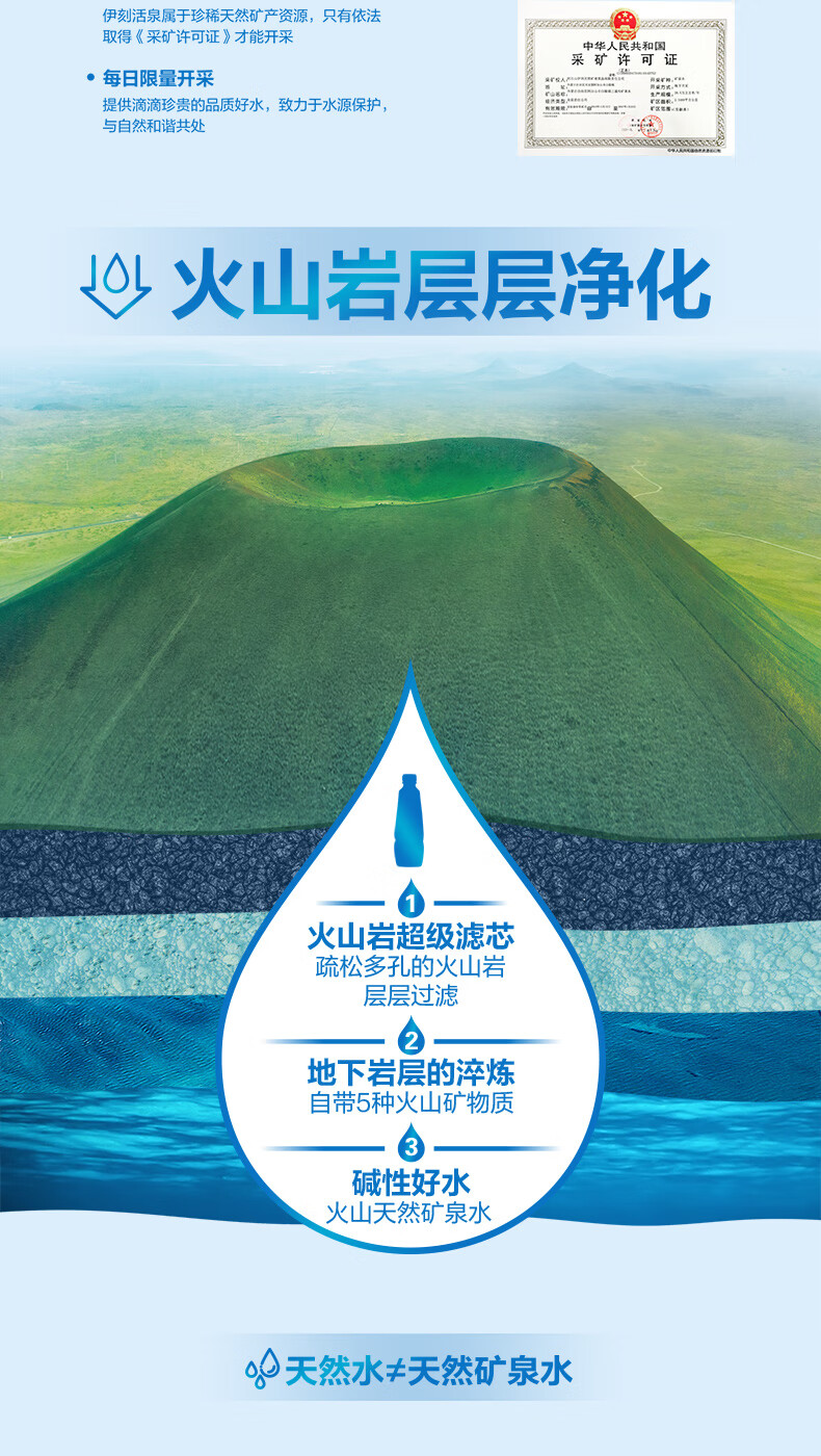 伊利伊刻活泉火山天然矿泉水 520ml*24瓶整箱装天然弱碱【热门商品】