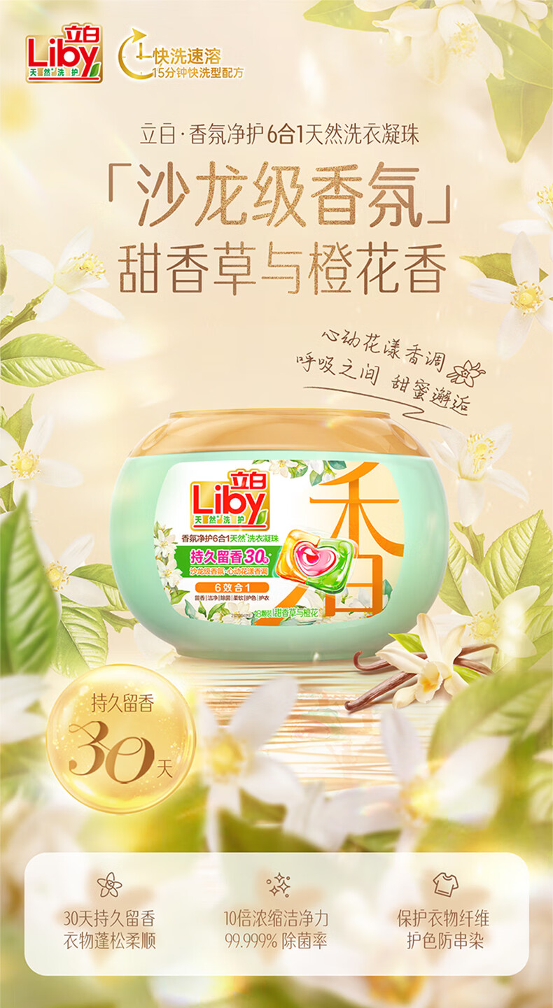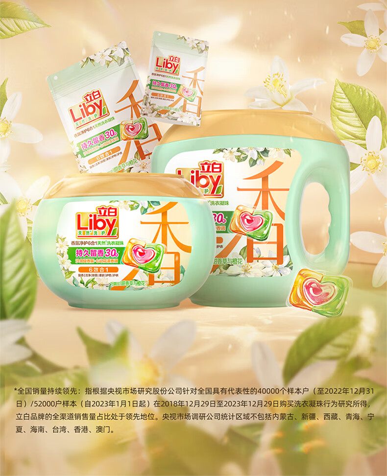 立白香氛净护洗衣凝珠心动花漾沙龙级香氛洁净柔顺除菌家庭学生宿舍 400g香氛洗衣凝珠组合装