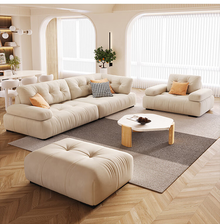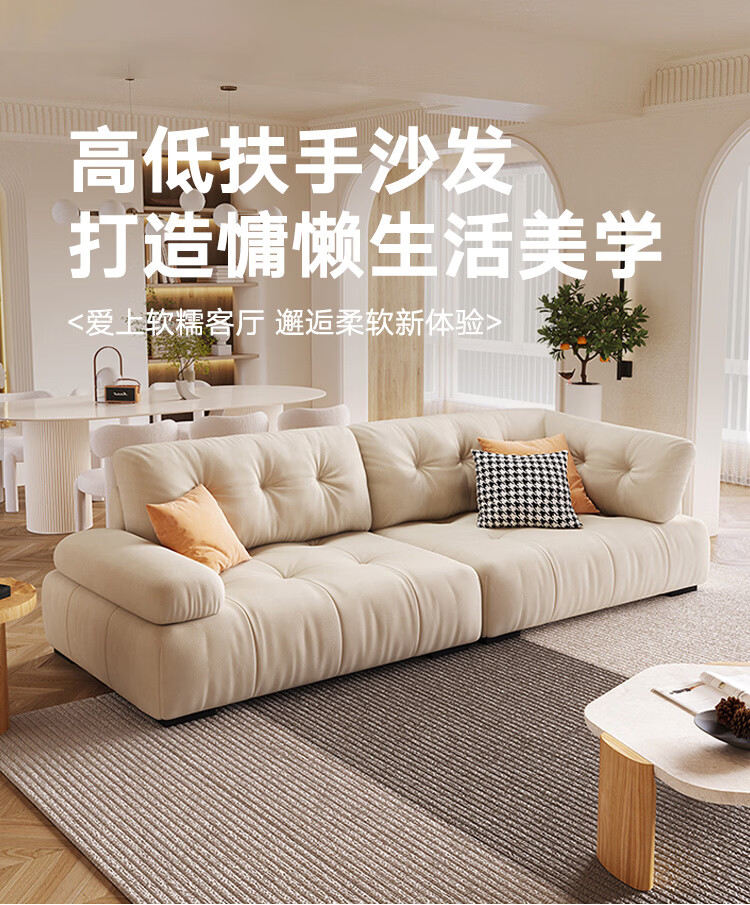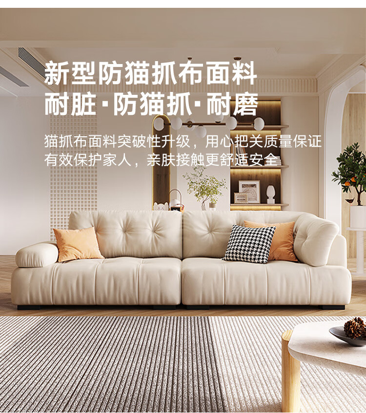 恋尚舒奶油风猫抓布沙发客厅简约现代小户型直排三人位网红布艺云朵沙发 3.2米多人位 【667伯爵系列雪尼尔】空气棉+海绵+硅胶棉