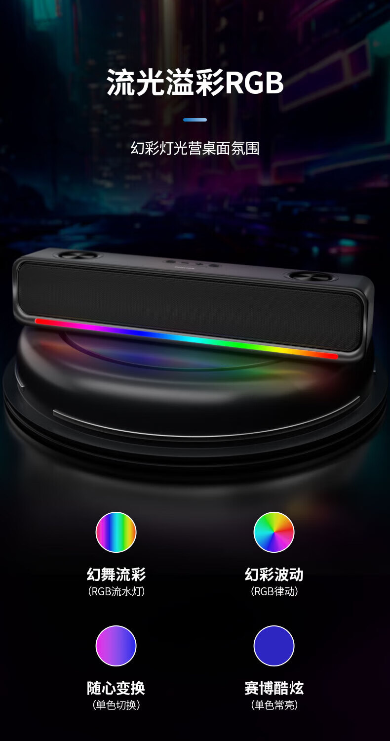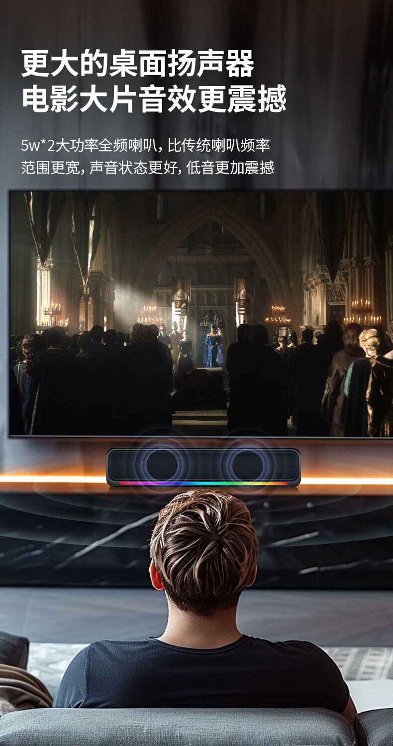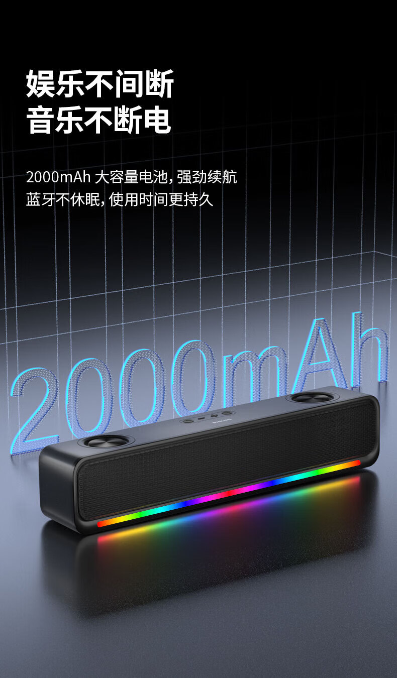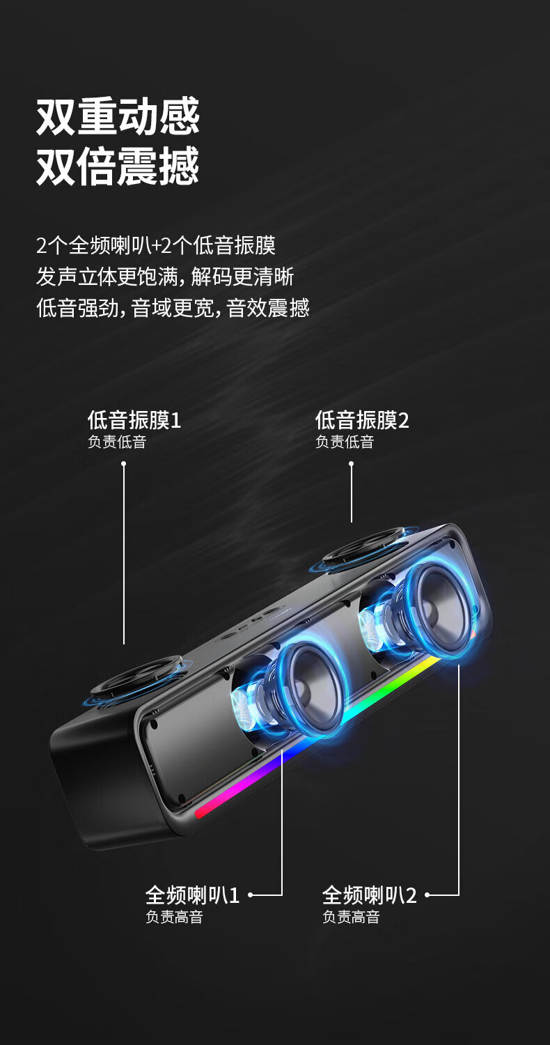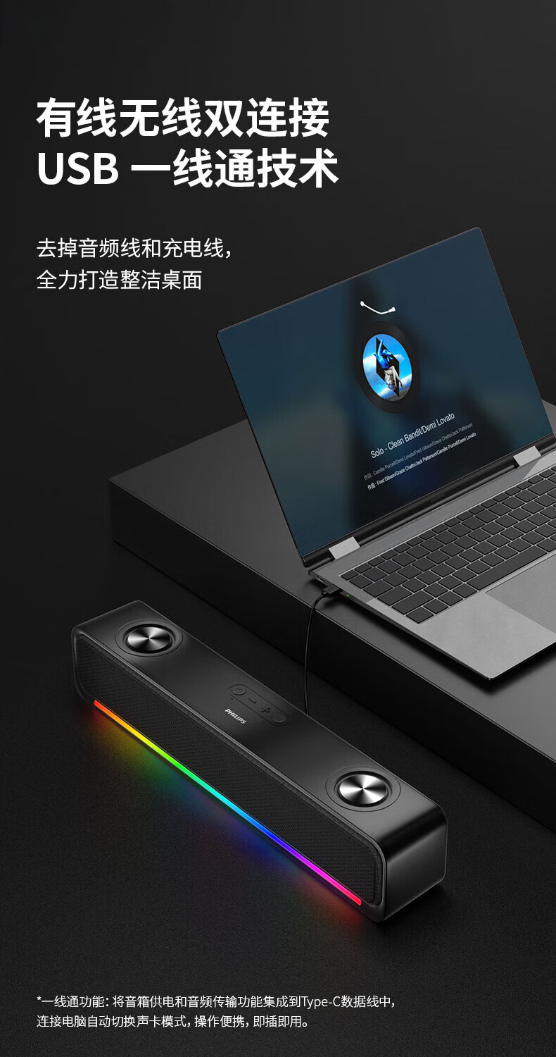 飞利浦(PHILIPS)蓝牙音响 SPA6209 电脑音响 HiFi音质重低音炮RGB炫彩氛围灯笔记本台式双模双喇叭立体音便携音箱 木制音响音响有线/蓝牙双模