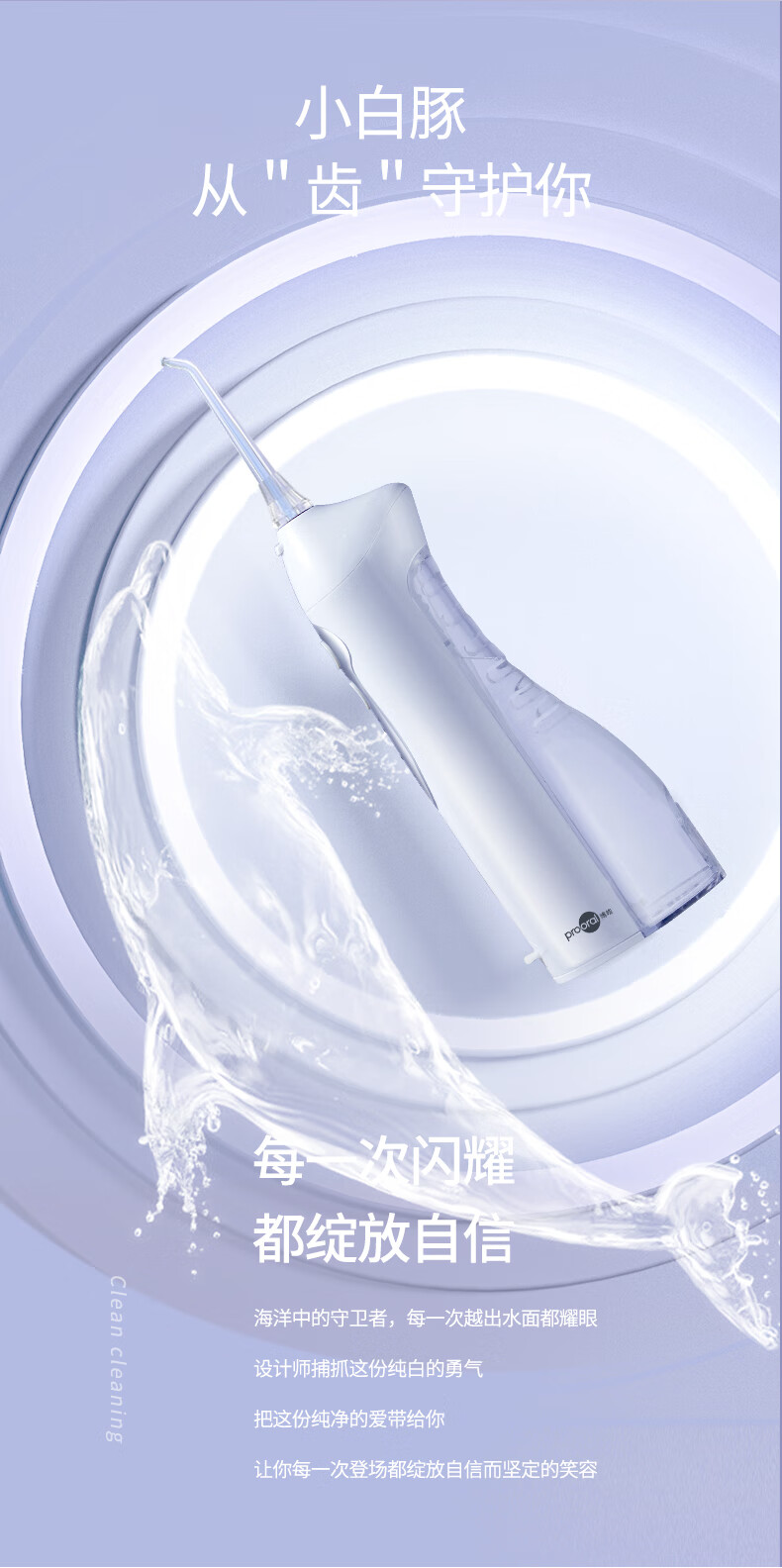 博皓(prooral)冲牙器便携式洗牙器家用洁牙器水牙线正畸牙垢去除器牙齿冲洗器 牙医推荐口腔护理器 5012 白色