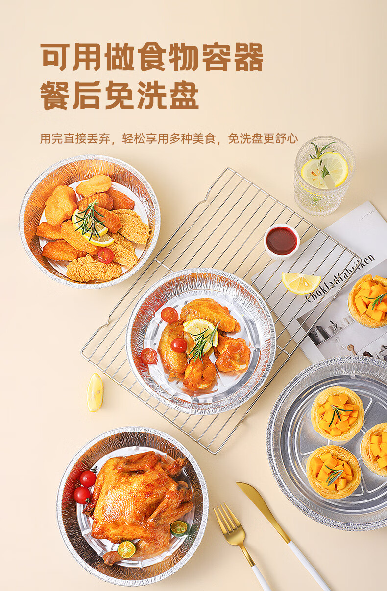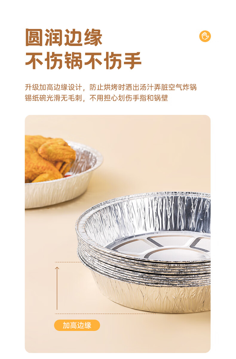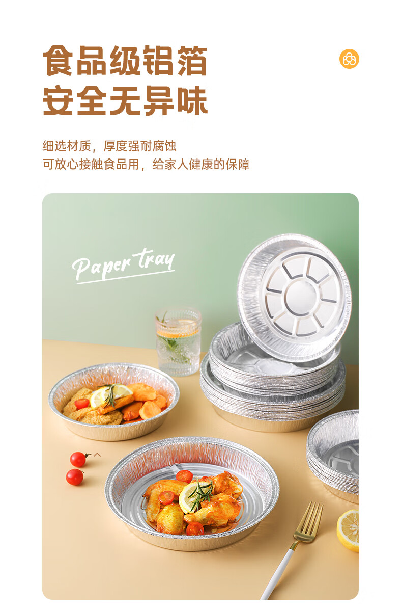 锡纸空气炸锅专用纸家用食品级加厚烧烤锡箔纸盘圆形铝箔纸锡纸碗 圆形锡纸盘7寸55只
