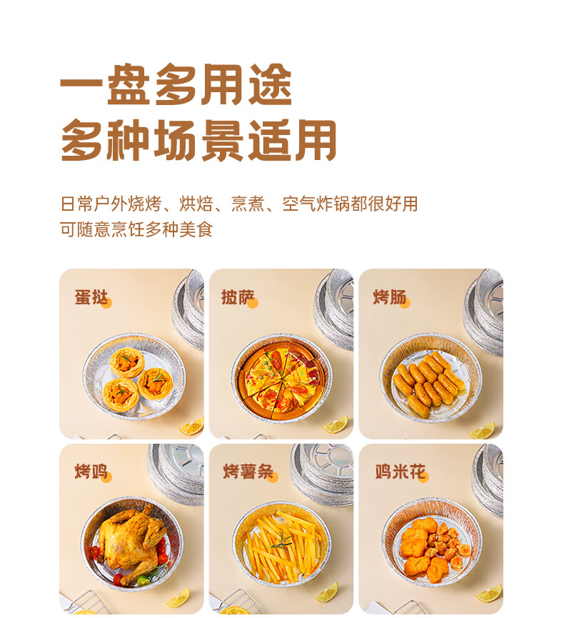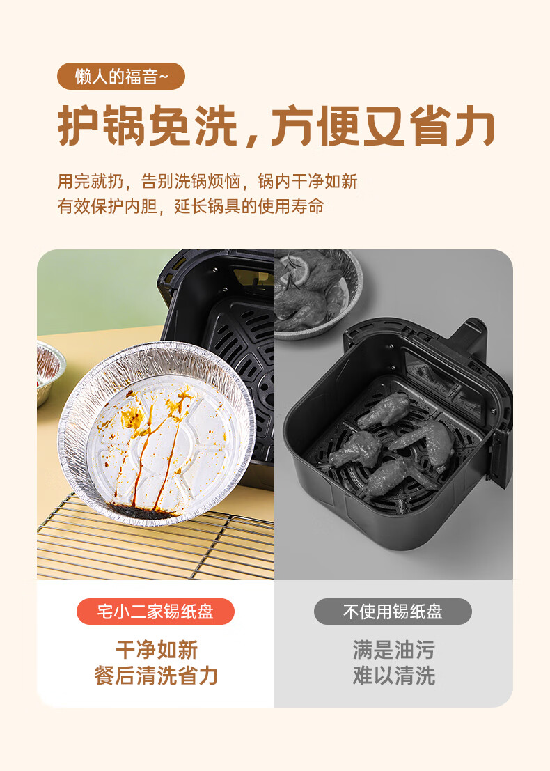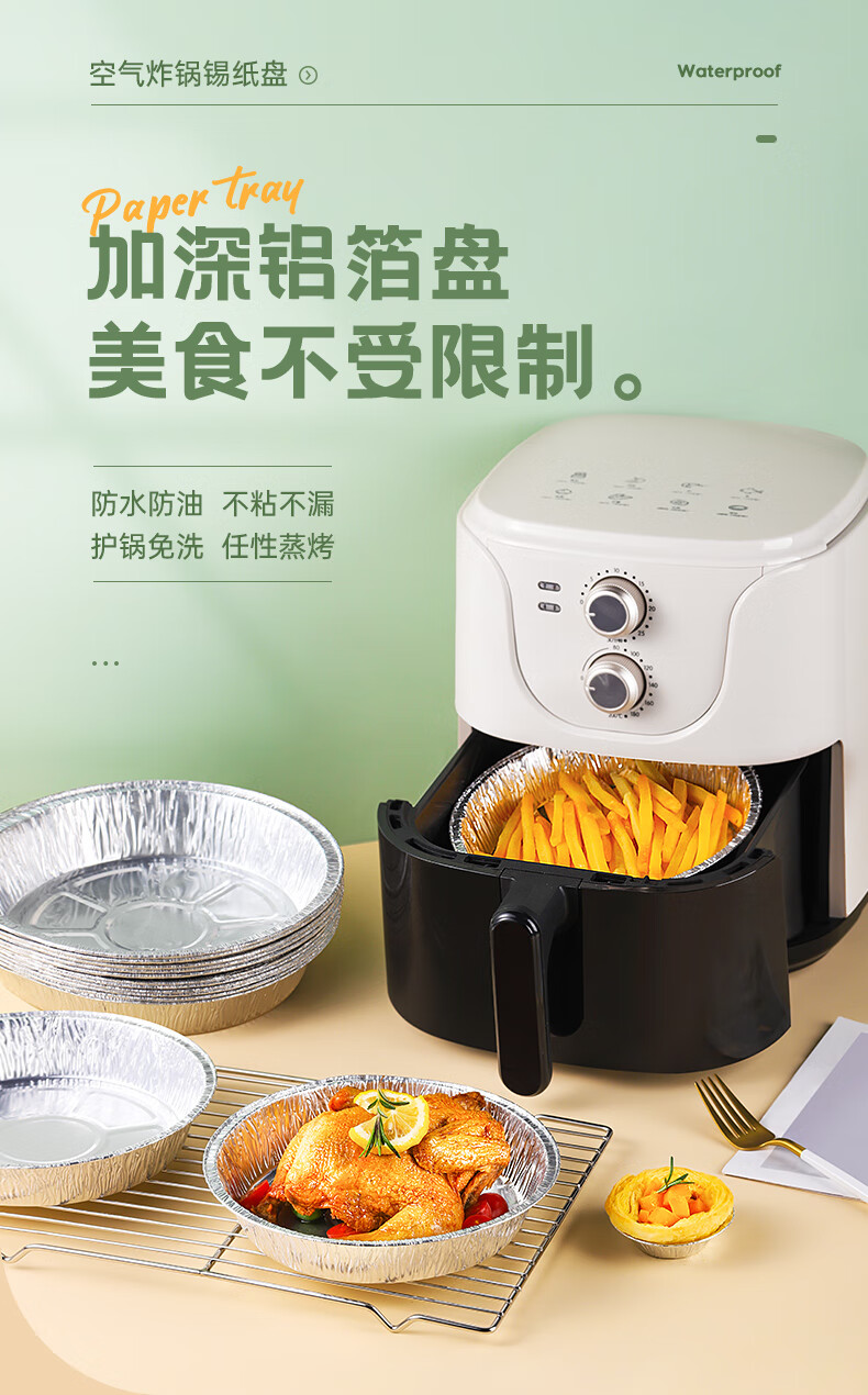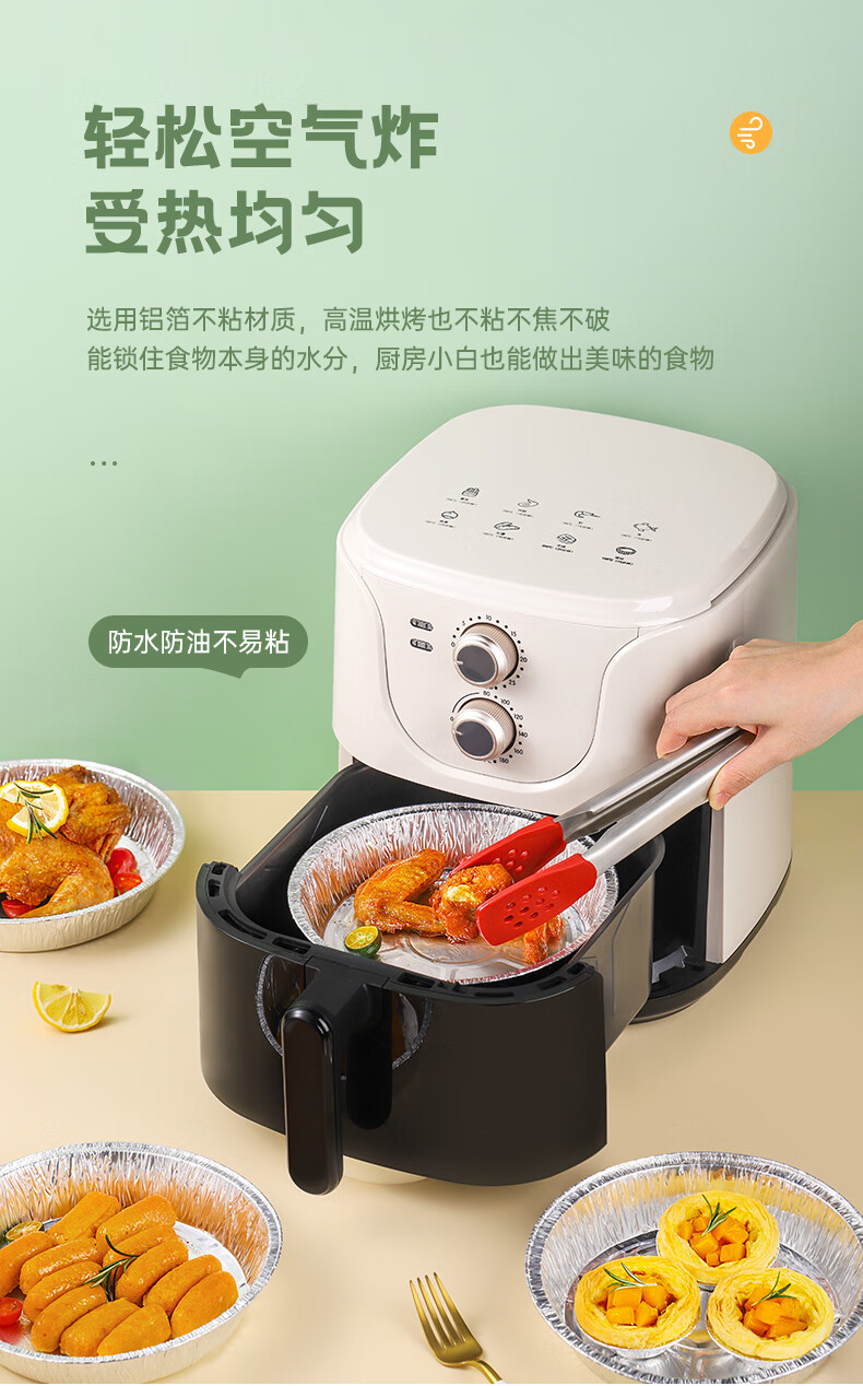 锡纸空气炸锅专用纸家用食品级加厚烧烤锡箔纸盘圆形铝箔纸锡纸碗 圆形锡纸盘7寸55只