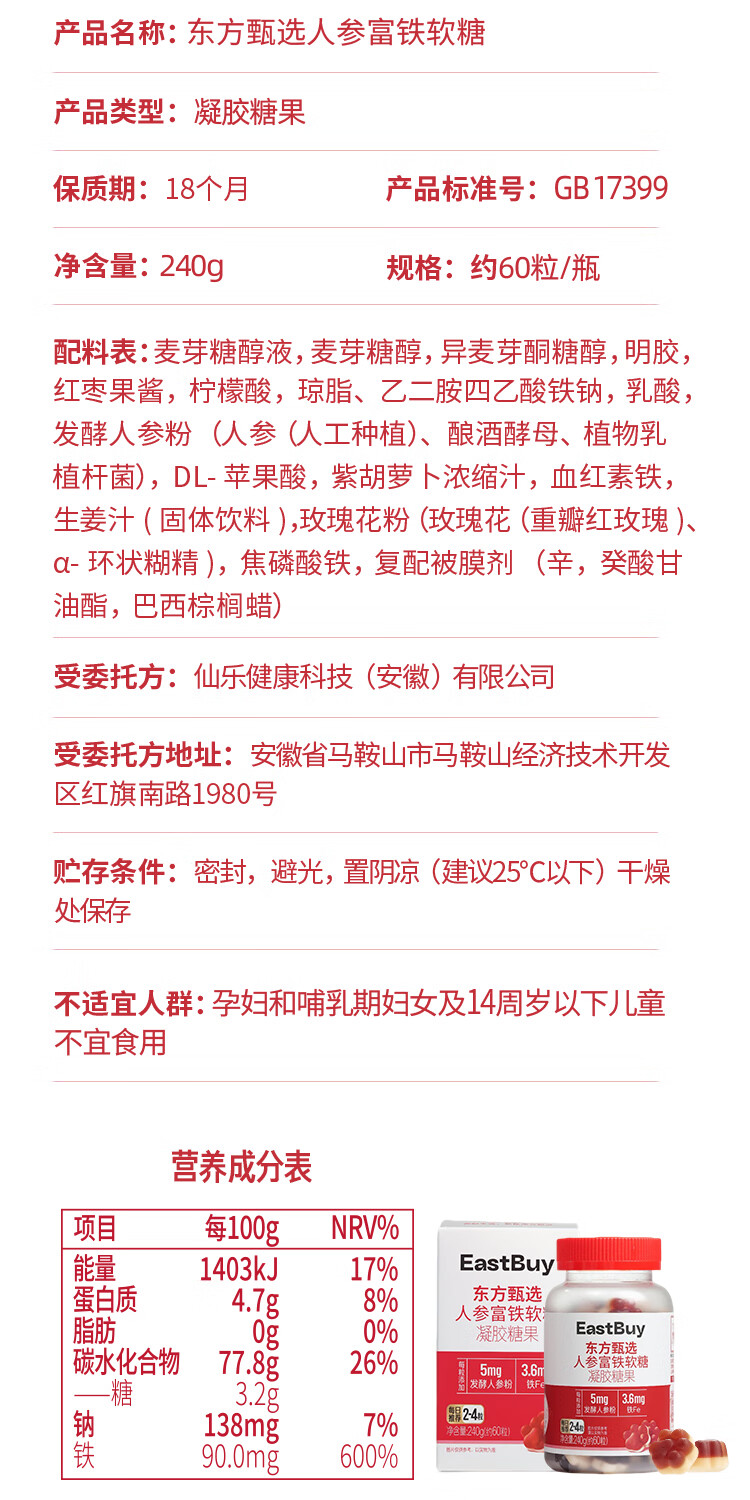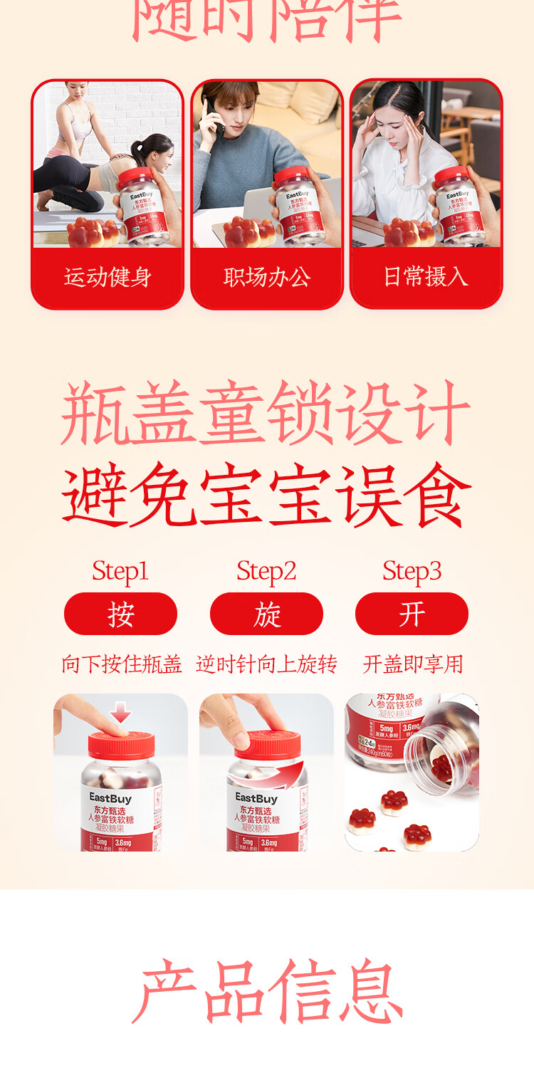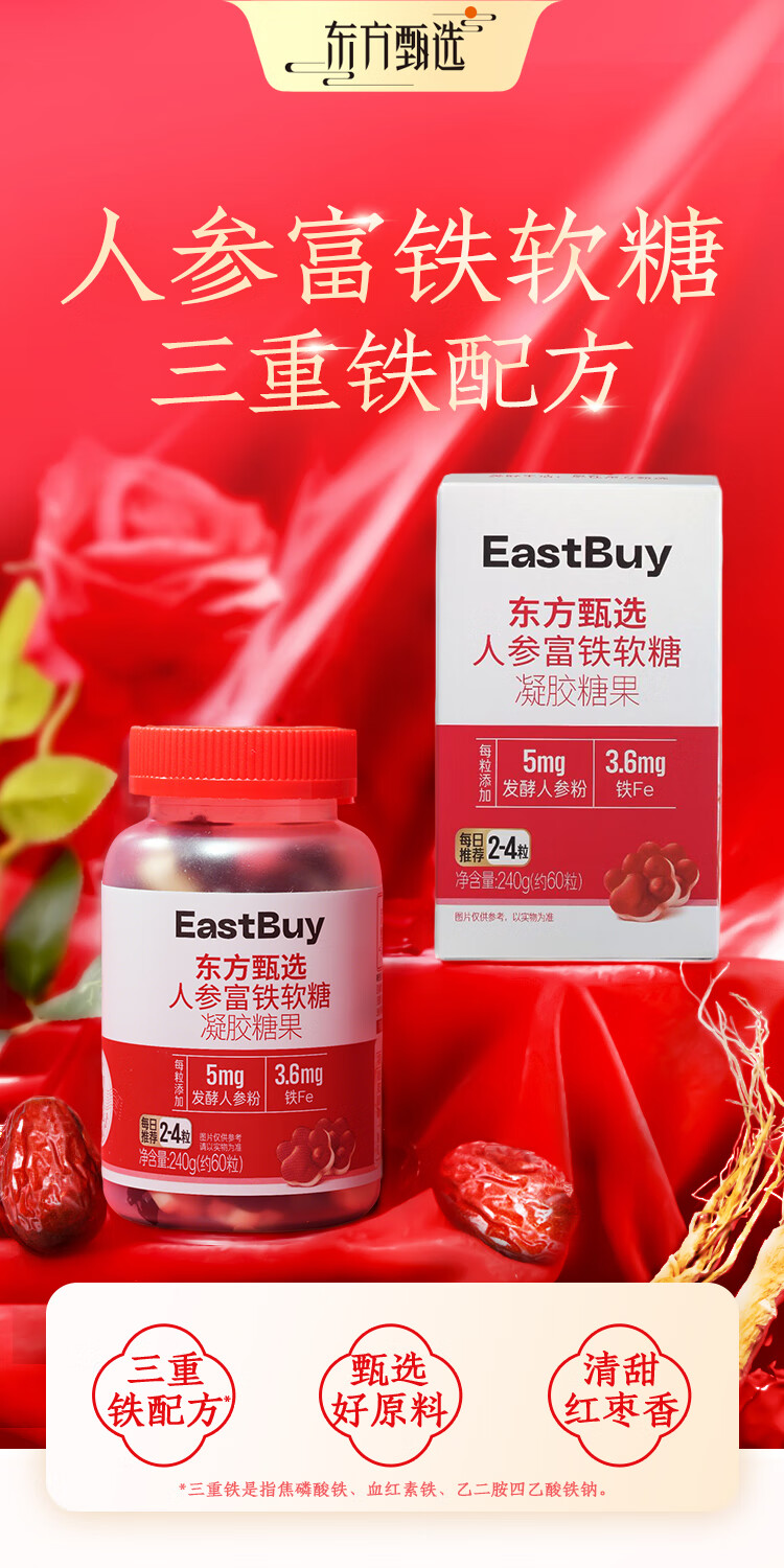东方甄选人参富铁软糖红枣味女性铁元素营养健康送女朋友 【4瓶装】富铁*4瓶 4g*60粒/瓶