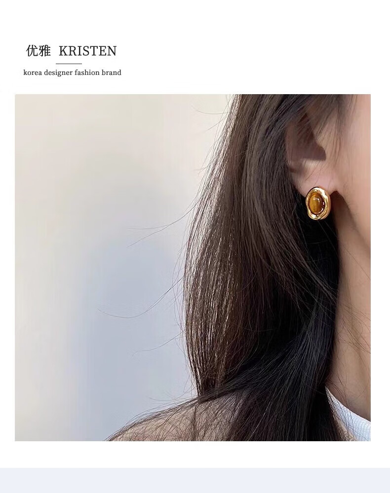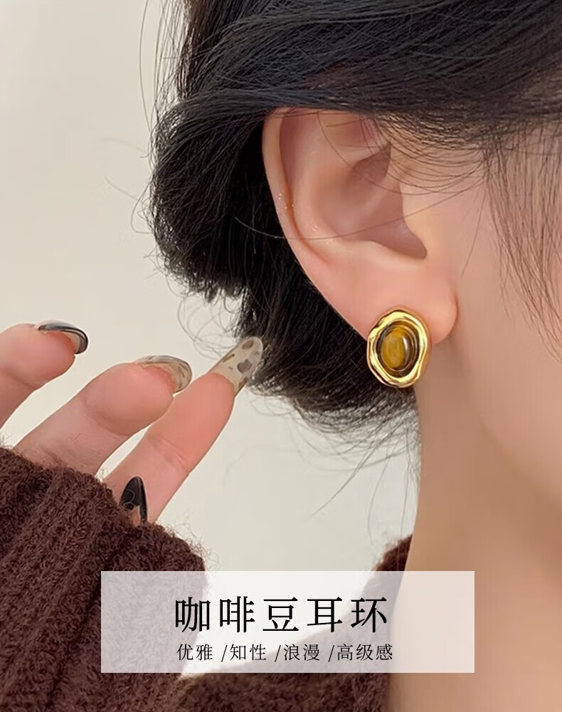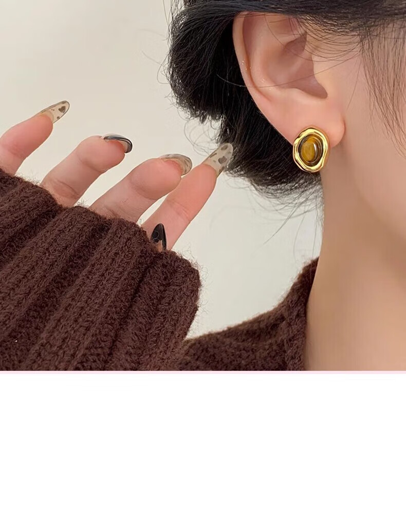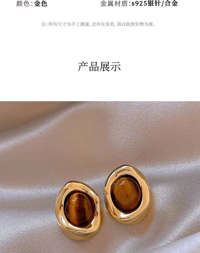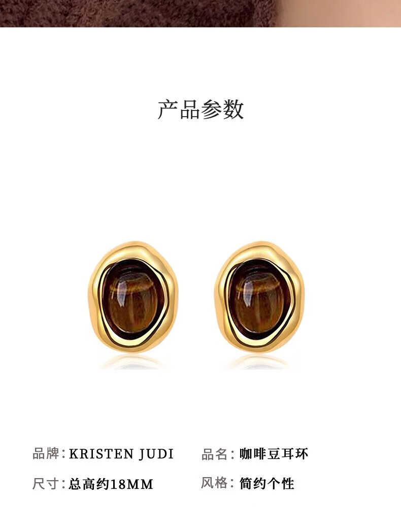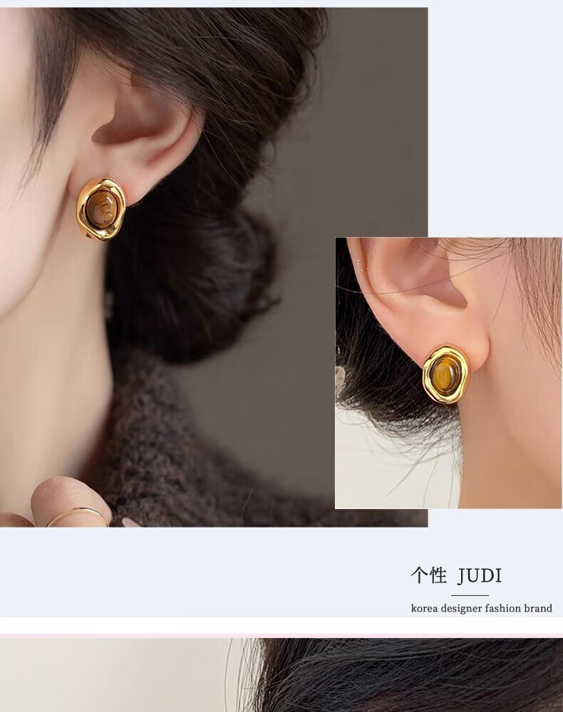 KRISTEN JUDI美拉德虎眼石耳环女银针耳钉新款几何椭圆复古轻奢耳饰品生日礼物 耳环女友老婆闺蜜生日实用礼盒 金色纪念日礼盒包装