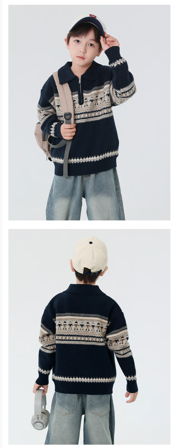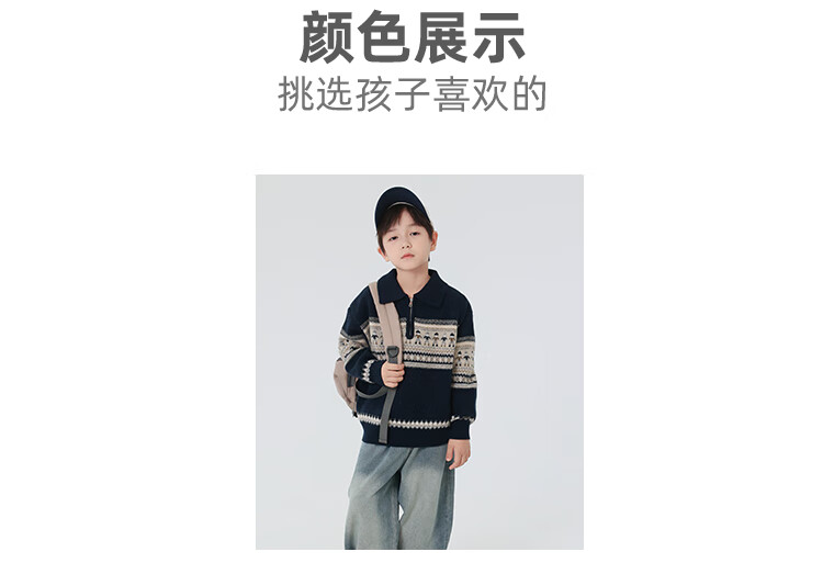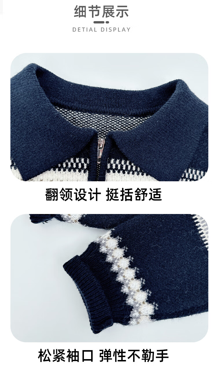 悠悠童话秋冬男童毛衣加厚针织打底衫儿童毛线衣中大童保暖拉链内搭上衣潮 藏青色 140 68