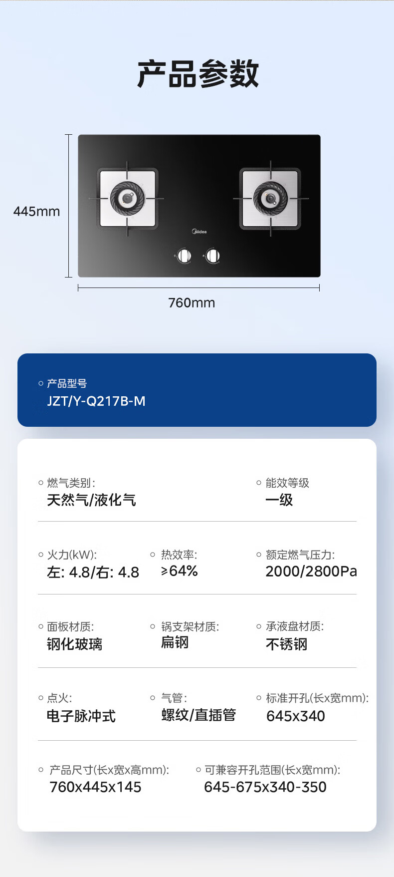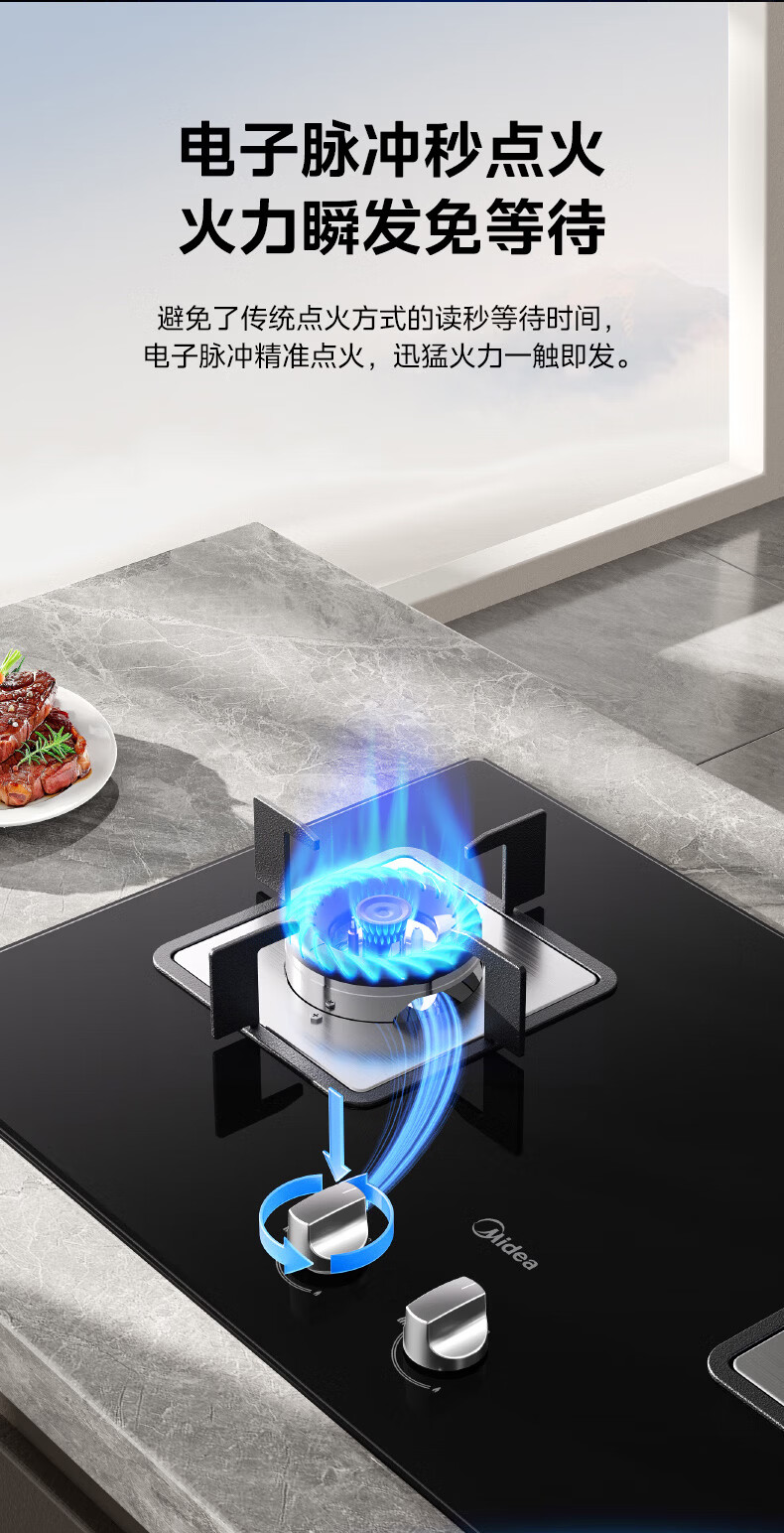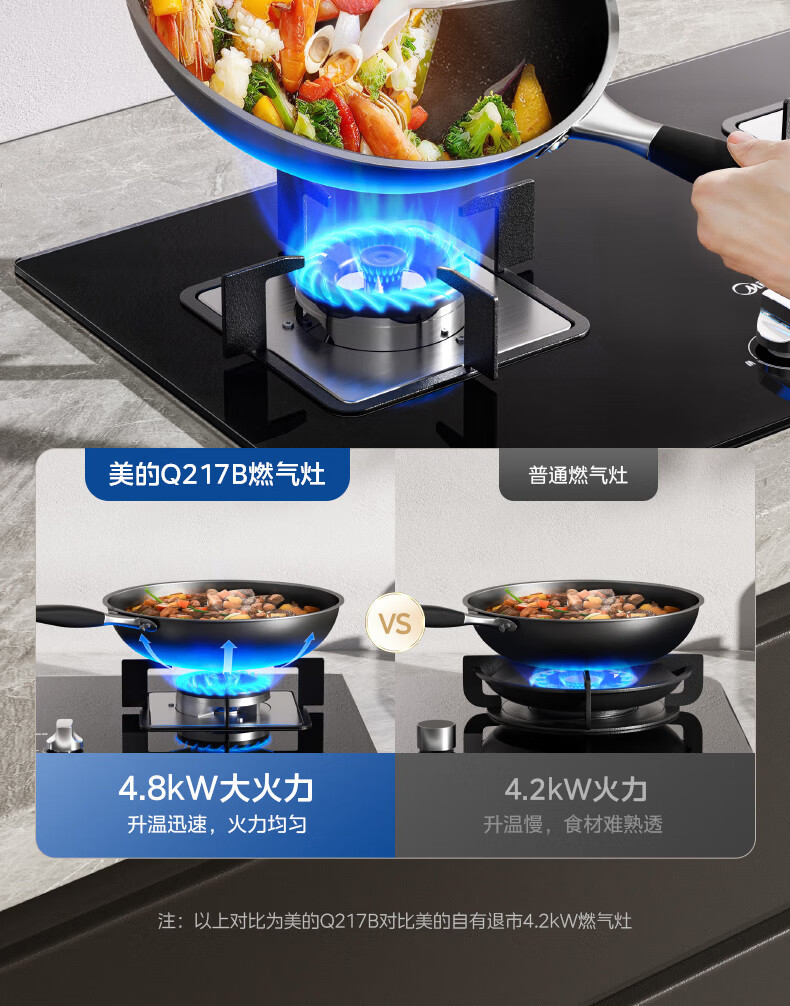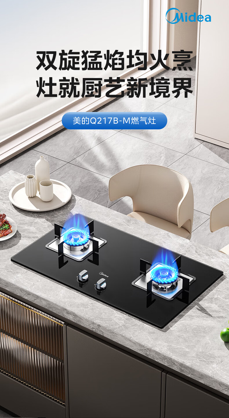 美的(Midea)家用燃气灶 双眼灶4.8kW大火力天然气灶液化气灶台嵌两用式双灶台猛火灶 钢化玻璃燃气灶具Q217B-M 【JZY-Q217B-M液化气】 新升级64%热效率