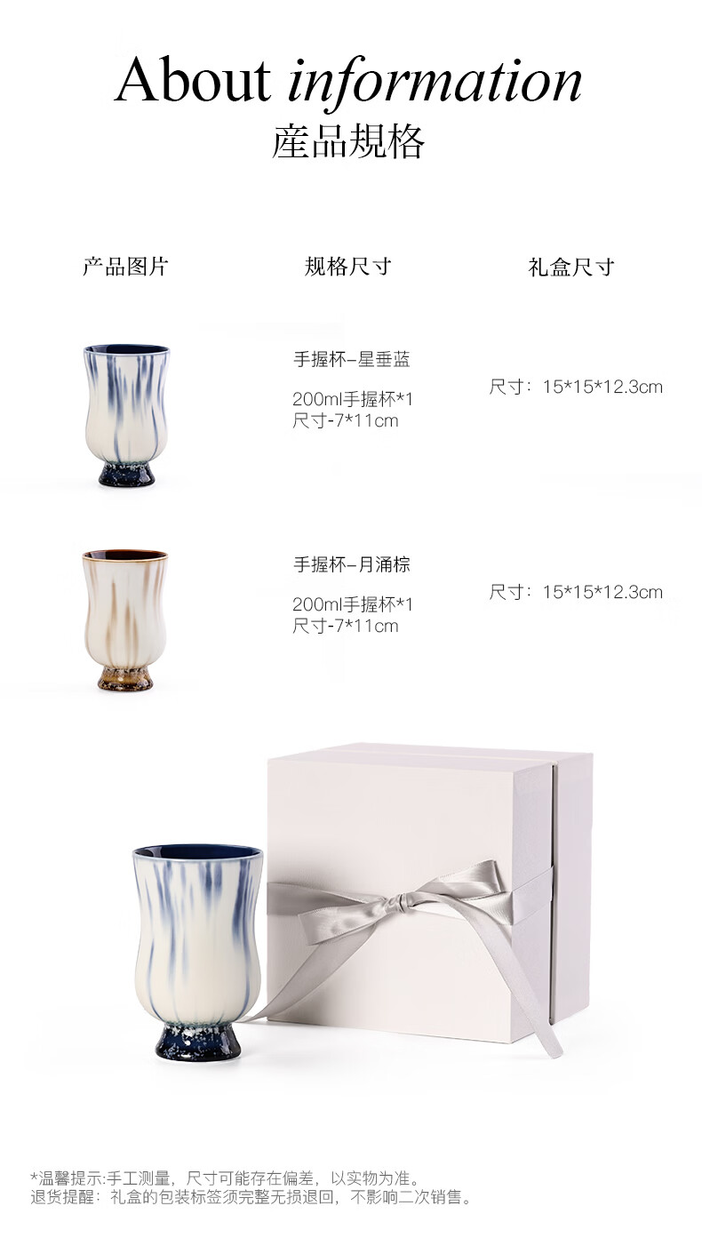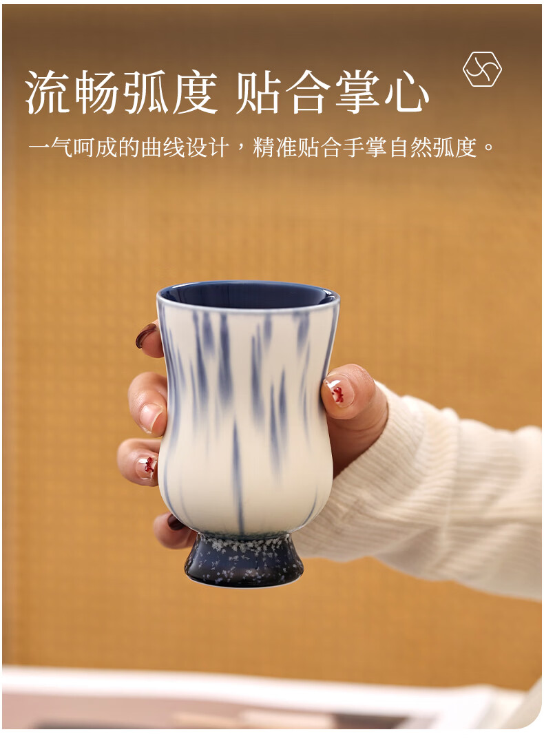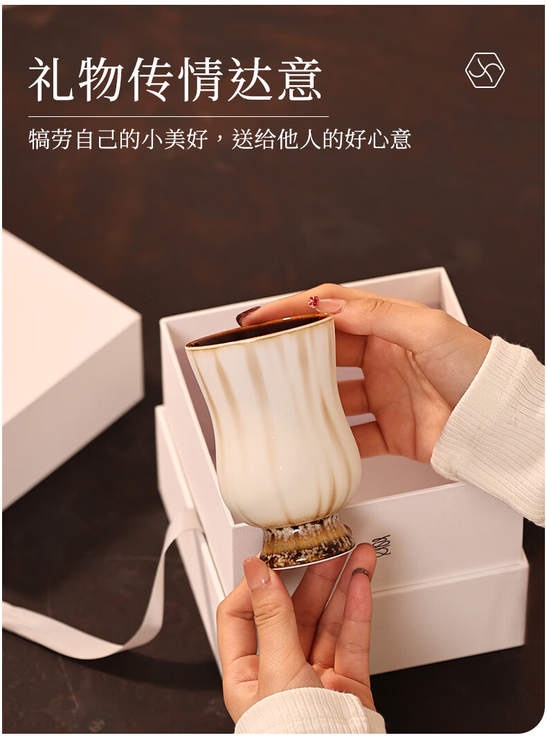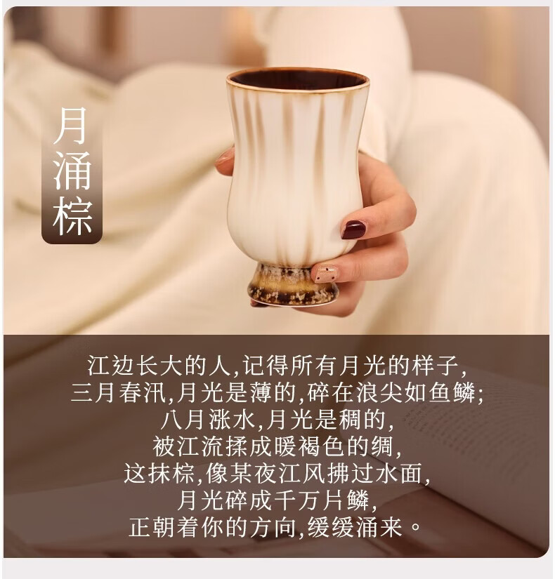 象上陶瓷马克杯景德镇高温釉彩手作手握杯生日礼物伴手礼礼盒装情侣杯 月涌棕手握杯 1 200ml