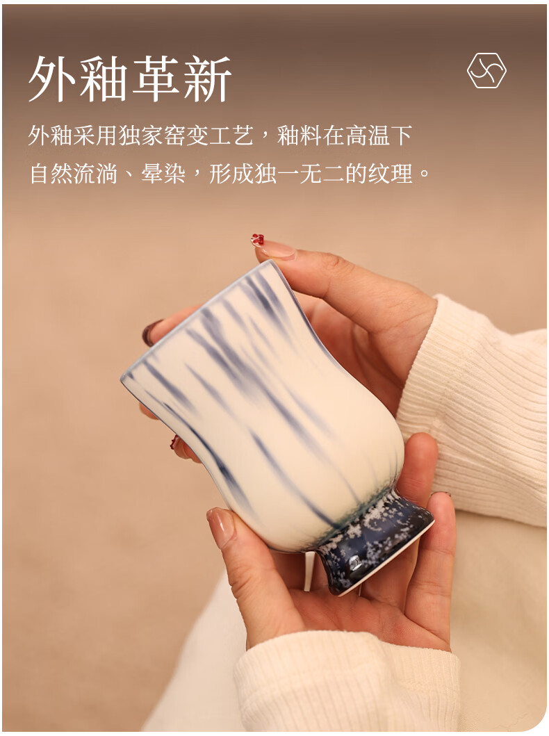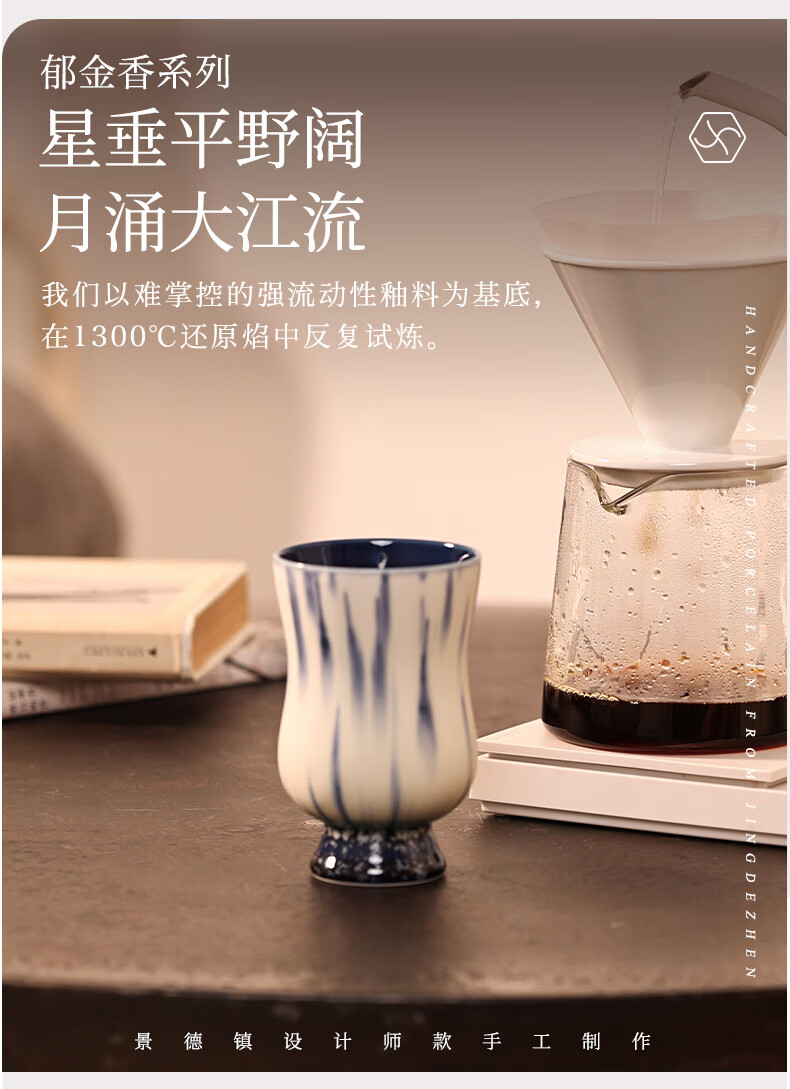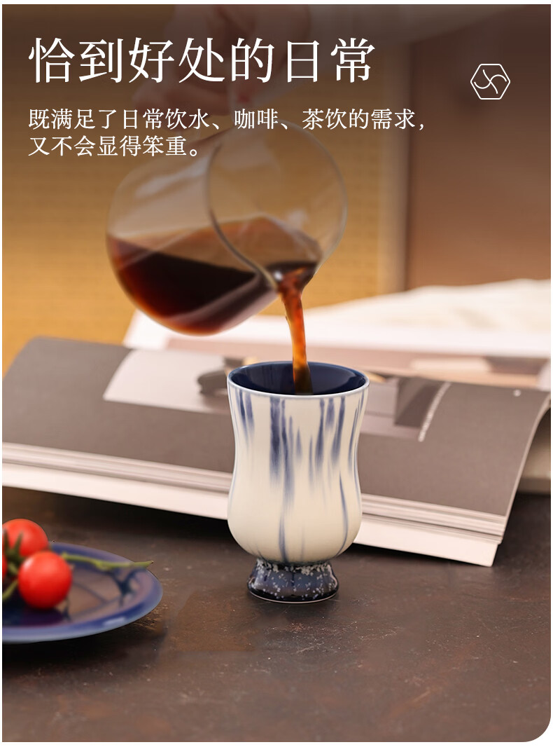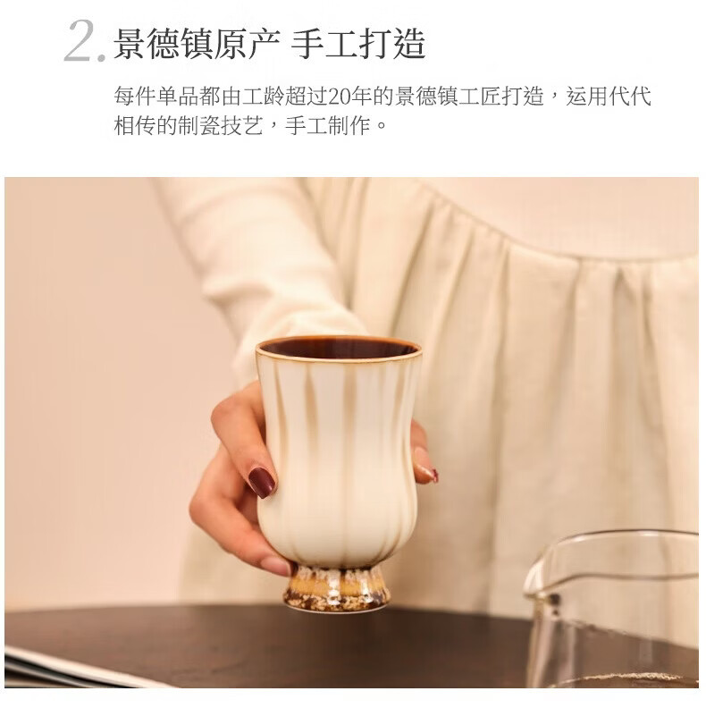 象上陶瓷马克杯景德镇高温釉彩手作手握杯生日礼物伴手礼礼盒装情侣杯 月涌棕手握杯 1 200ml