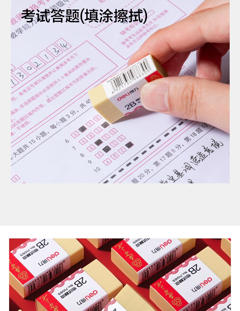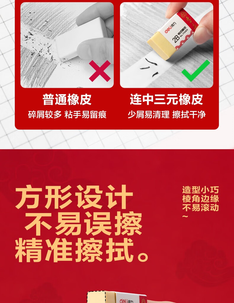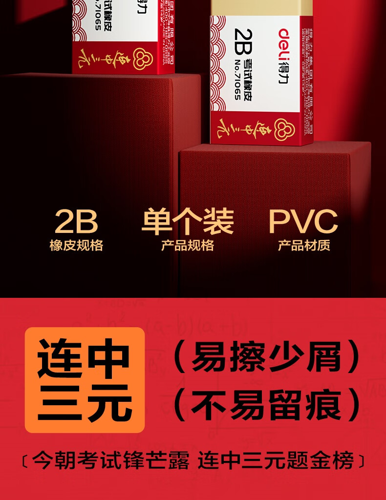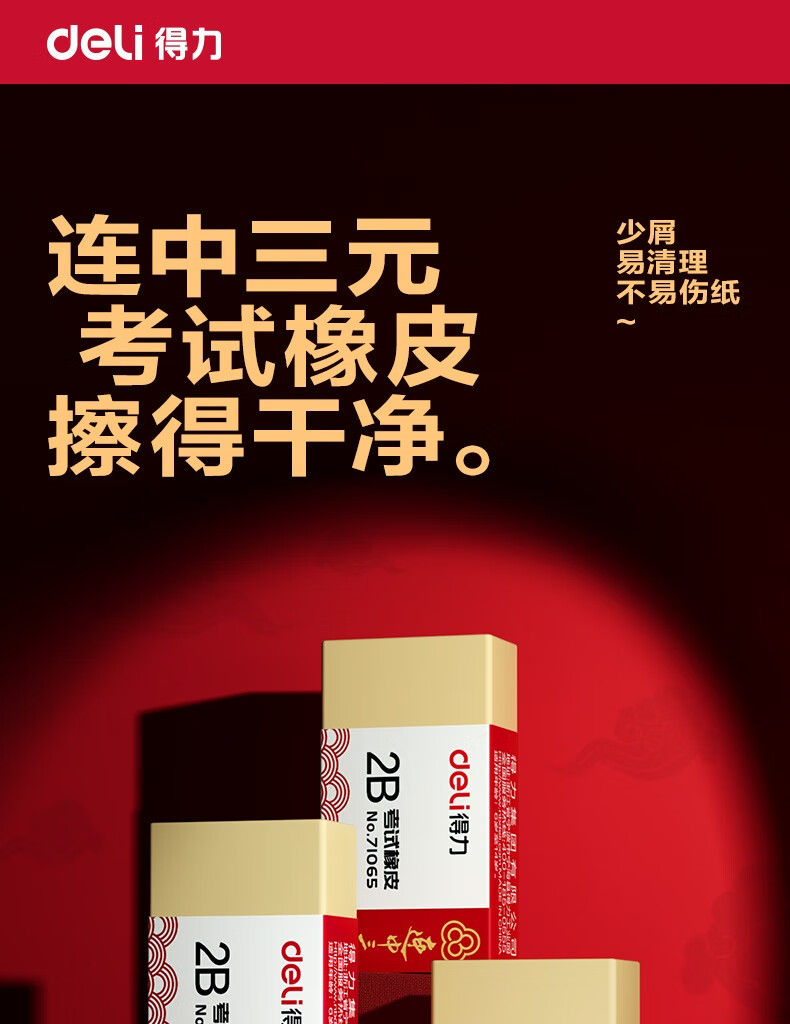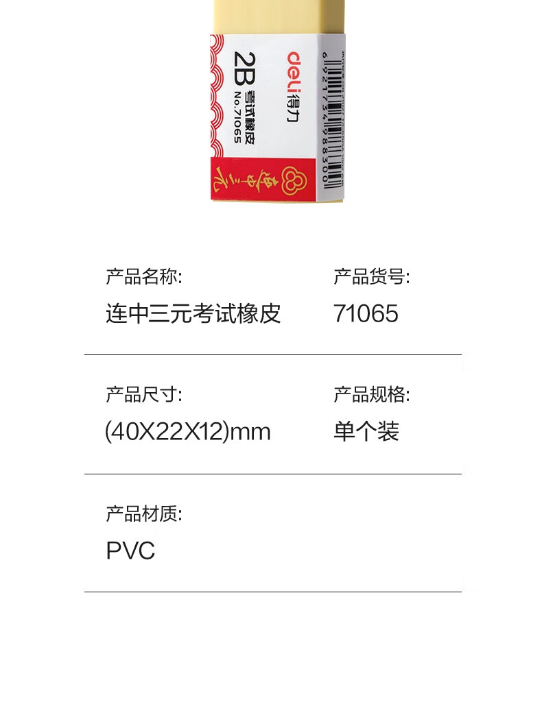 得力(deli)【金榜题名】连中三元系列学生中考高考考试橡皮擦 黄色 单个装 71065