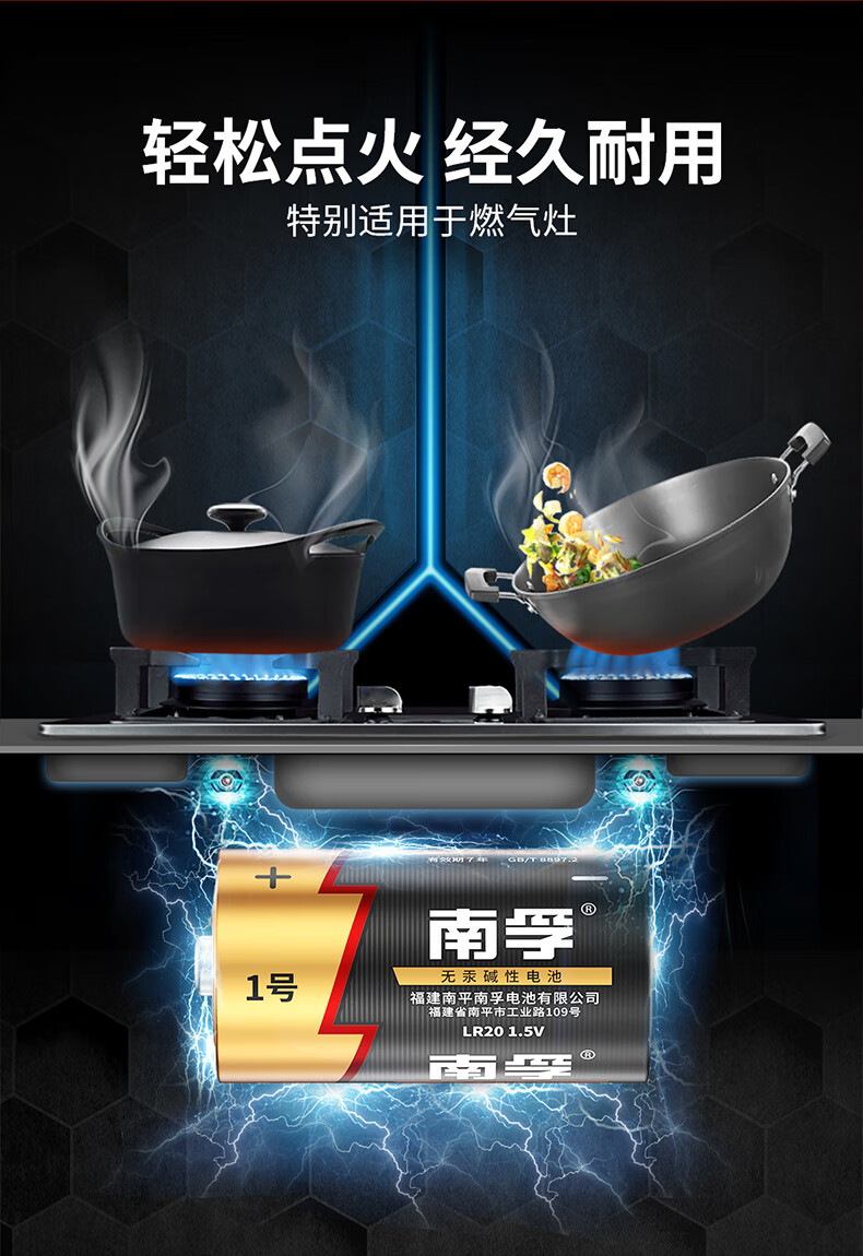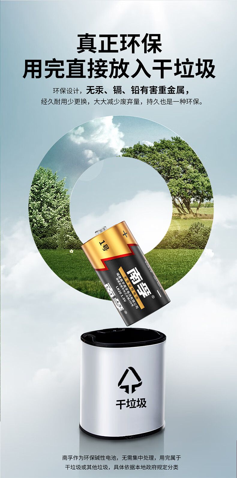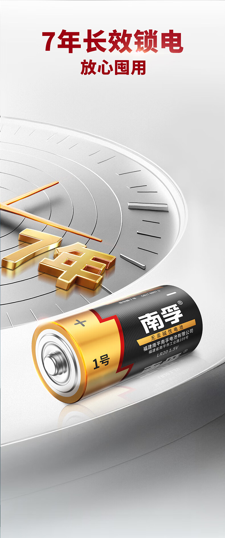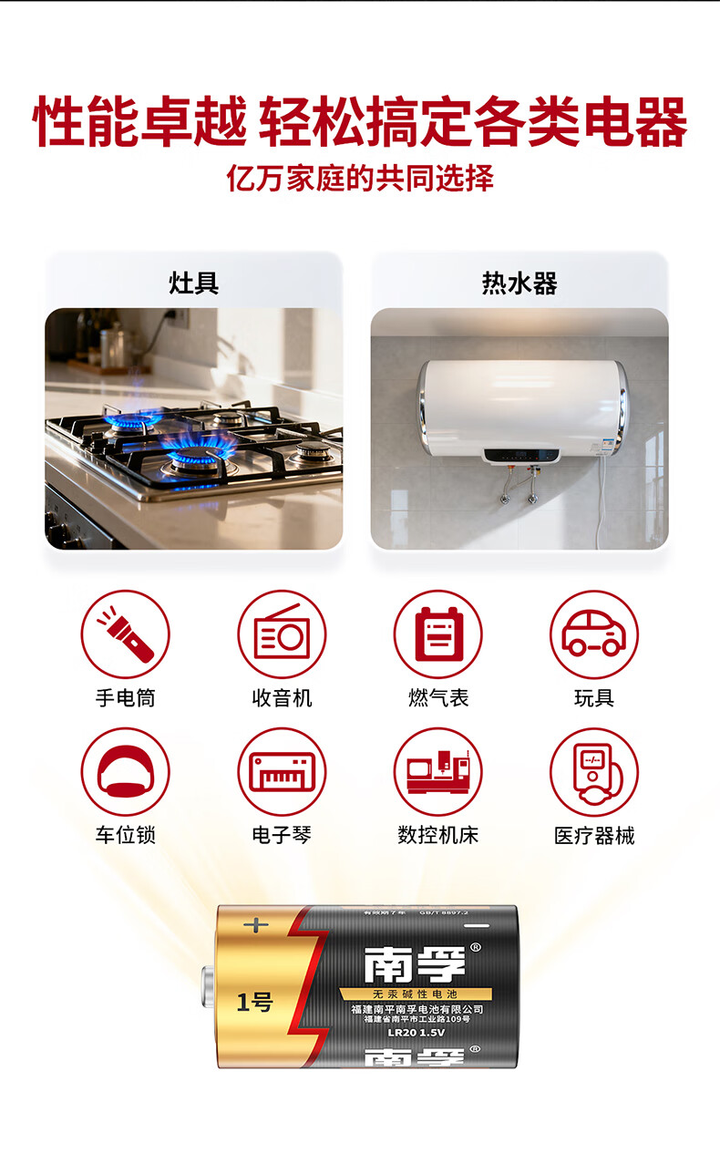 南孚1号碱性电池2粒 大号电池 适用于热水器/煤气燃气灶/手电筒/电子琴/挂钟等 LR20-2B