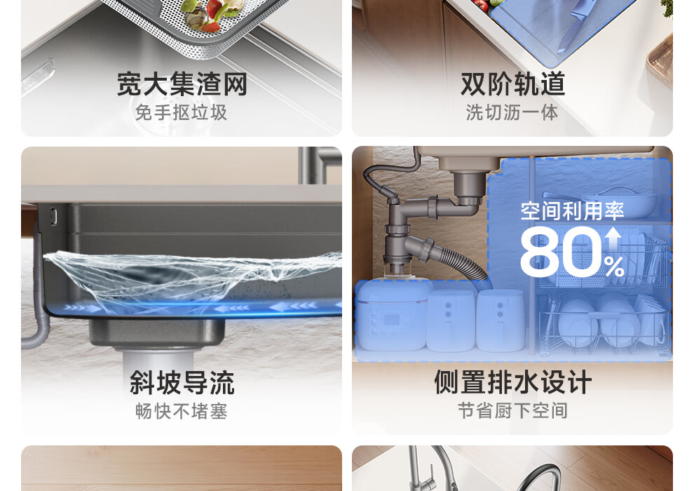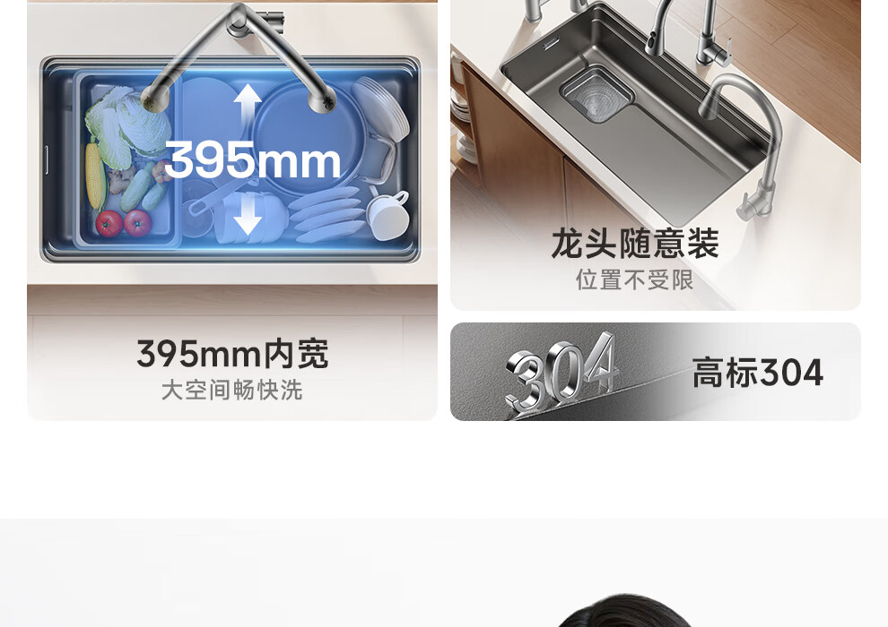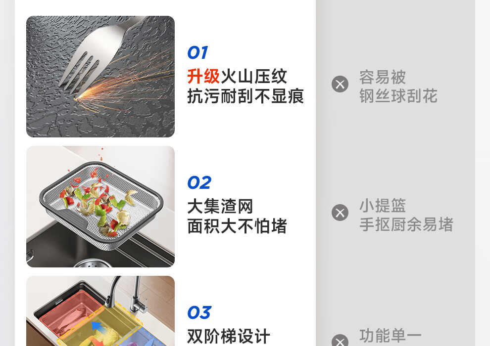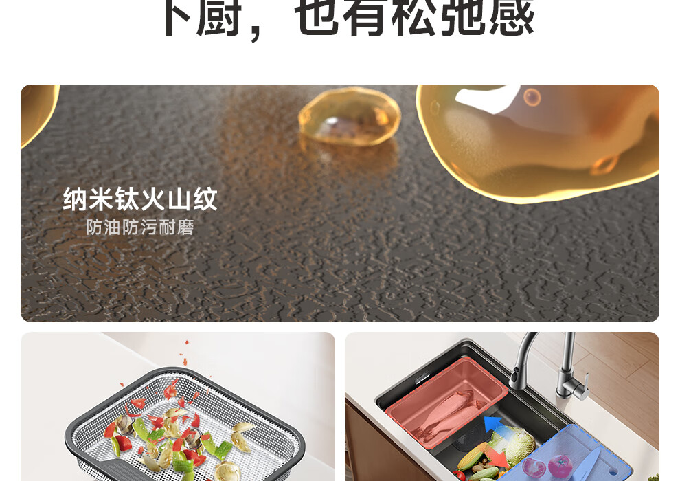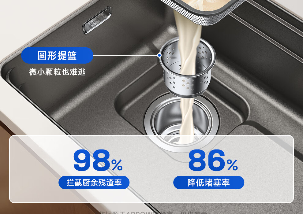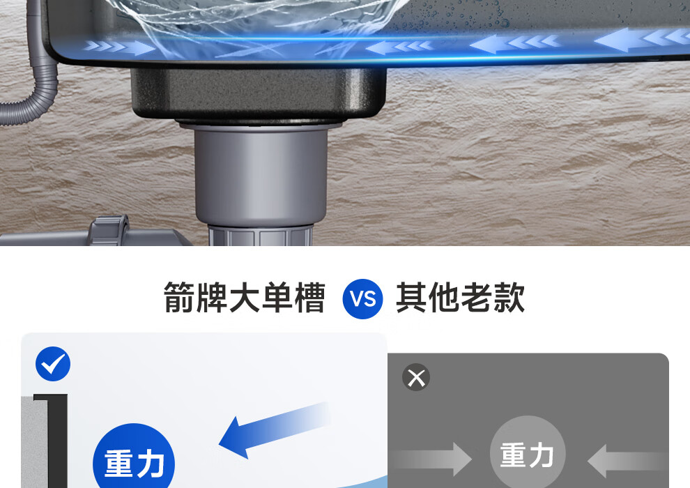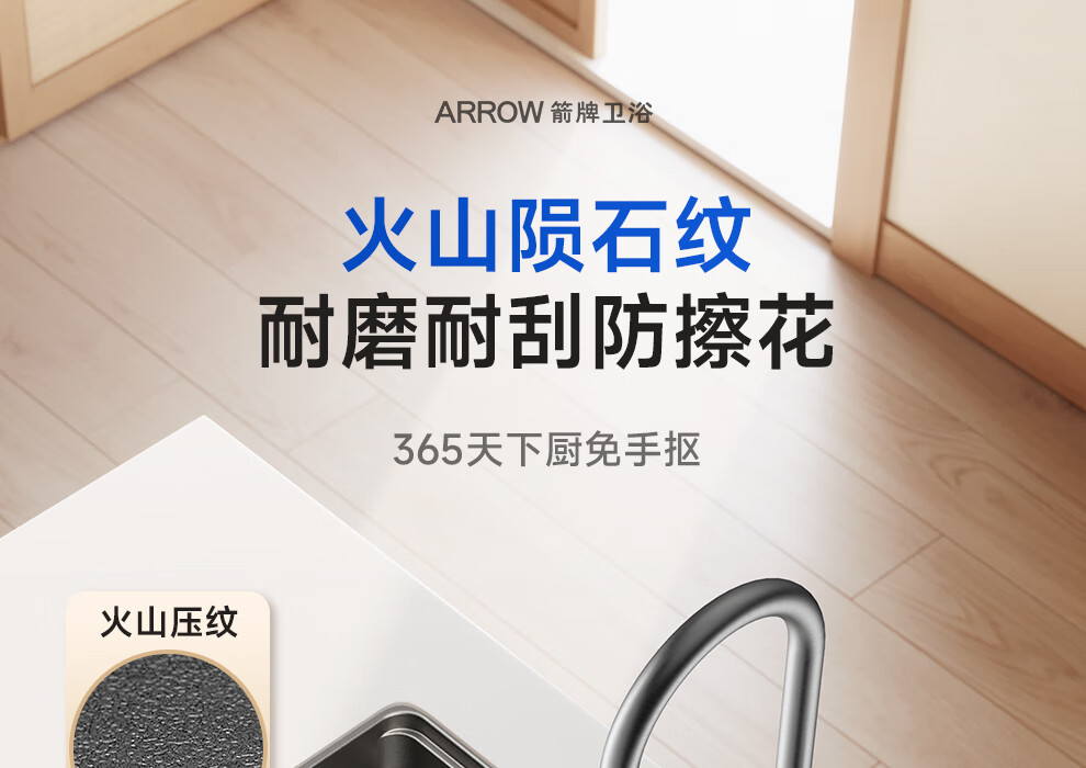 箭牌(ARROW)【焕新补贴】水槽厨房水槽304不锈钢纳米洗菜盆大单槽水槽多功 【双重过滤压纹】60*43不含龙头