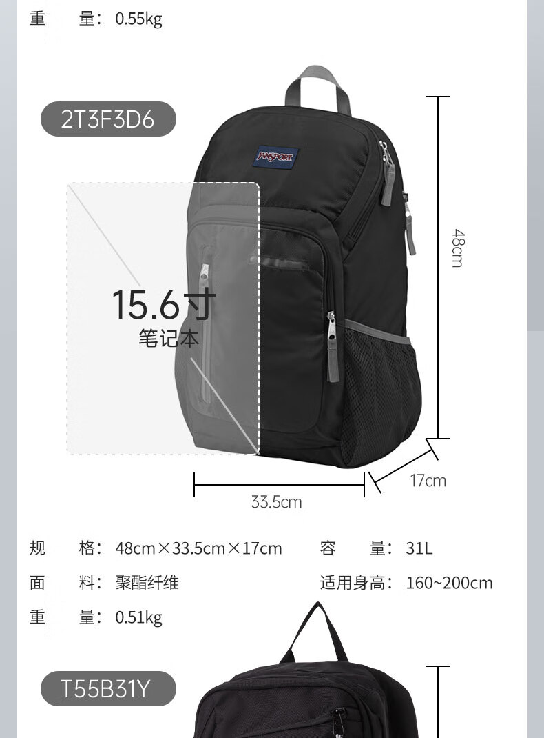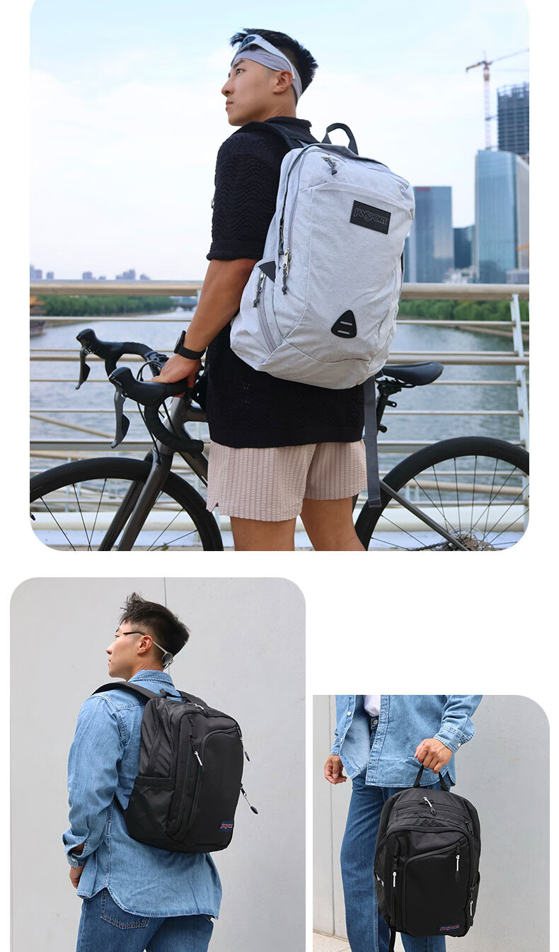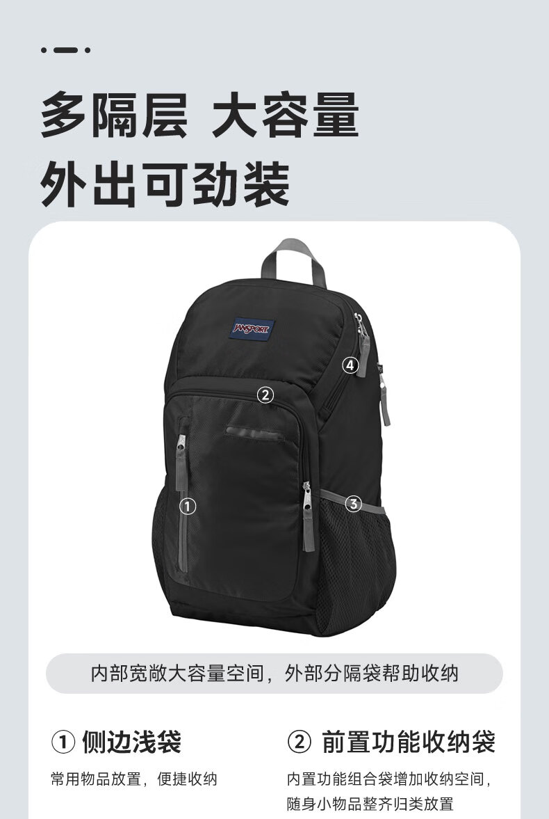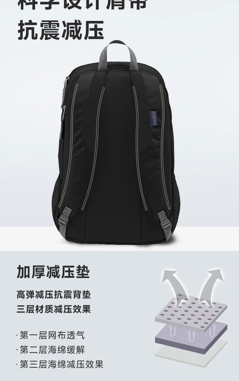 JANSPORT杰斯伯新款商务大容量双肩背包男士旅行轻便电脑包高中生大学生 2T3F3D6商务黑-电脑隔层+水杯侧袋