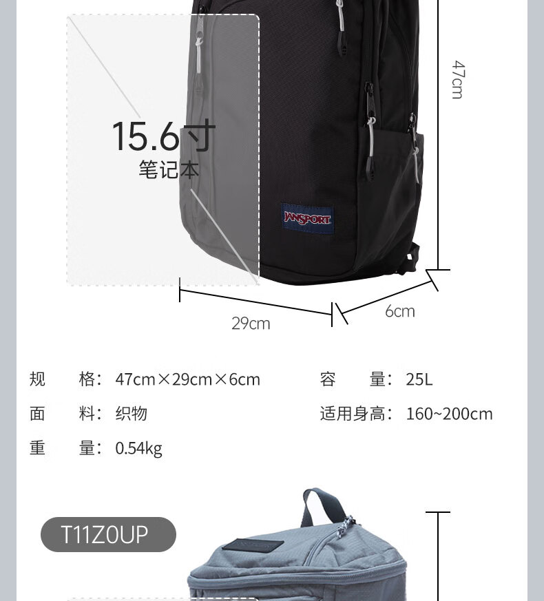 JANSPORT杰斯伯双肩包男女户外旅行运动登山背【下单前请认真看瑕疵说明】 T11Z0UP 浅灰(微瑕)