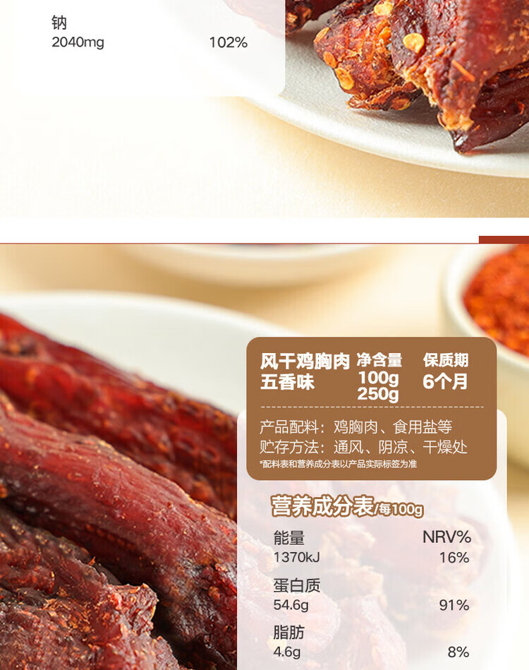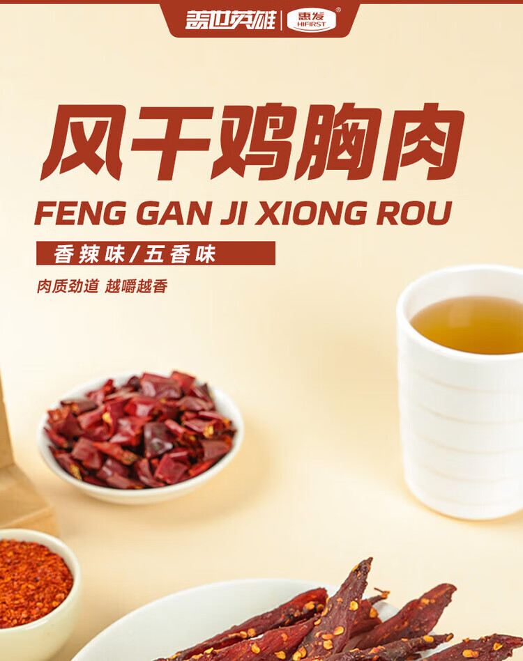 惠发风干鸡胸肉鸡肉干零食高蛋白即食健身鸡胸肉干 风干鸡胸肉干250g(五香味)